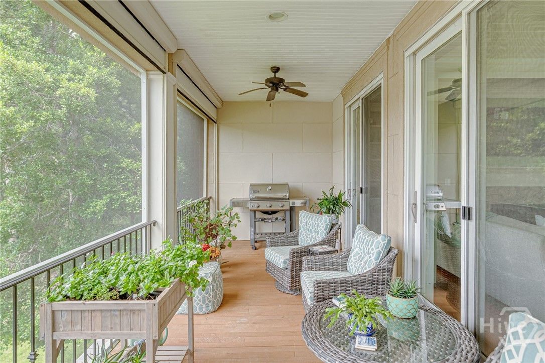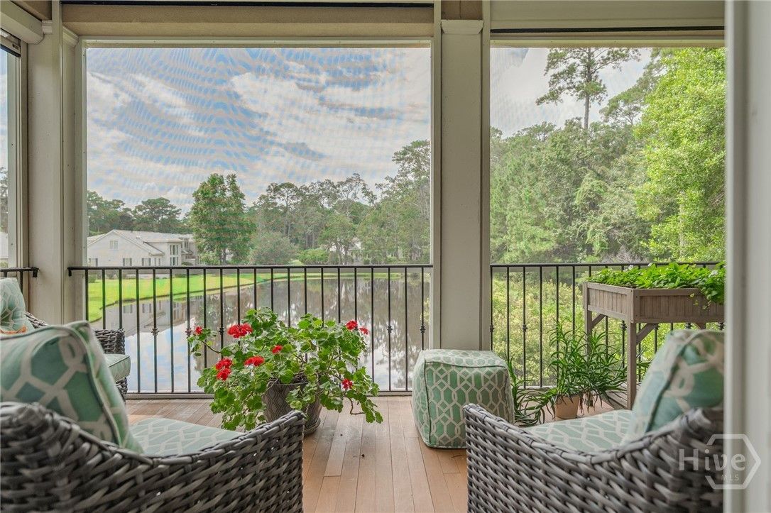 This stunning 3 BR 3.5 Bath townhome combines luxury living with serene lagoon views. Designed with an open airy floor plan it features vaulted ceilings, hardwood floors throughout, a gourmet kitchen, and spacious living areas that flow seamlessly to a screened porch and covered porches on main level. Large master BR and 2 guest BR each with their own private baths for ultimate comfort and privacy. An elevator provides easy access to all levels. Two car garage with separate golf cart space and extra storage space. Enjoy low maintenance living with more time to enjoy all that The Landings has to offer.