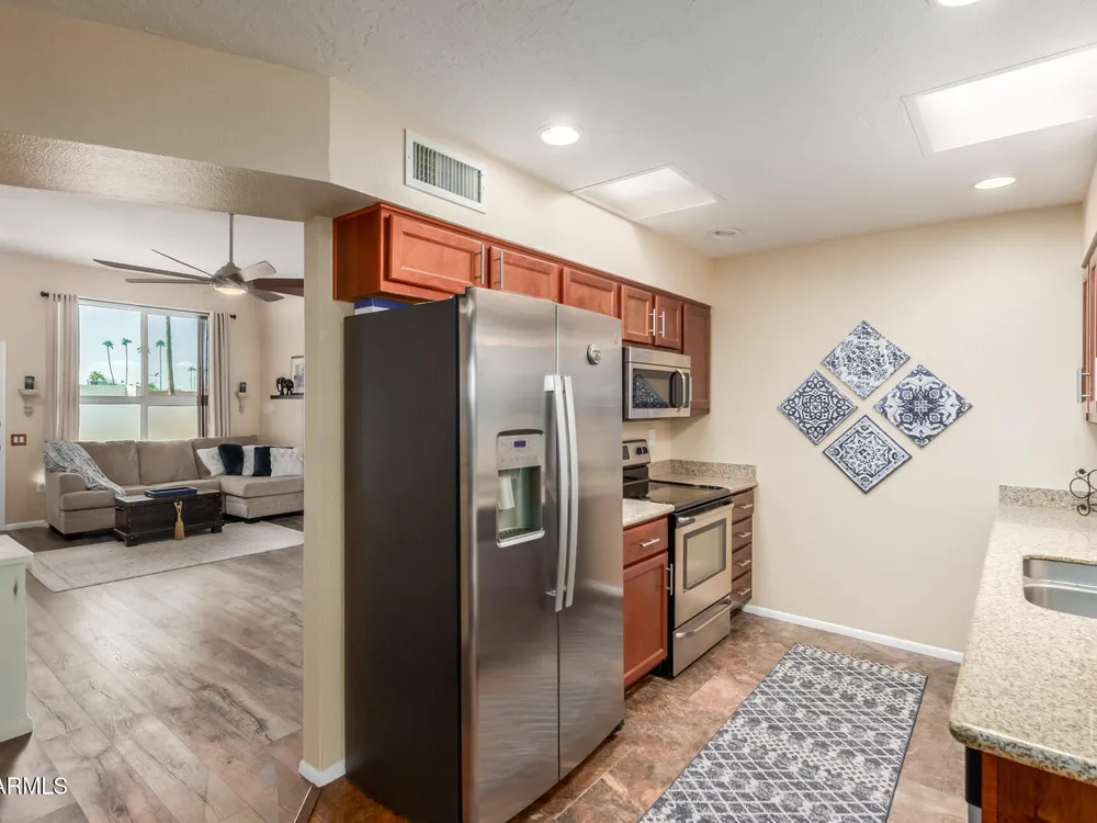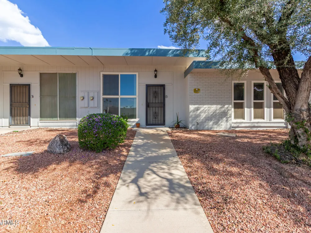 Start making memories in this charming 2-bedroom condominium nestled in the lively 55+ Sun City community! Inside, you'll be greeted by warm wood-look floors, a soothing neutral palette, and an open layout perfect for entertaining or relaxing in style. The kitchen is a true delight with granite counters, wood cabinetry, recessed lighting, and stainless steel appliances ideal for whipping up your favorite dishes. The main bedroom offers direct courtyard access, giving you a peaceful spot to start or end your day. Outside, enjoy your morning coffee or entertaining friends in this magical covered courtyard. Community perks like a sparkling pool and social activities that keep every day exciting is just 2 blocks away. This home is worth taking a look at!