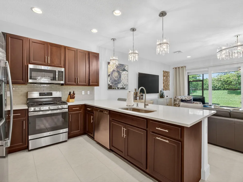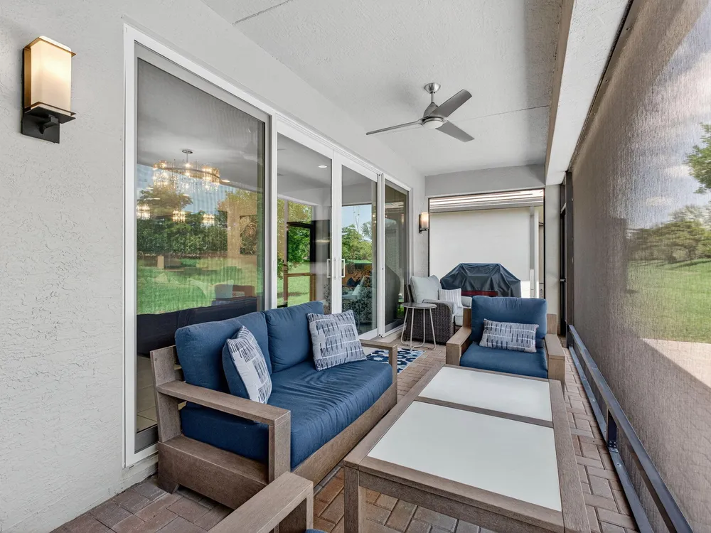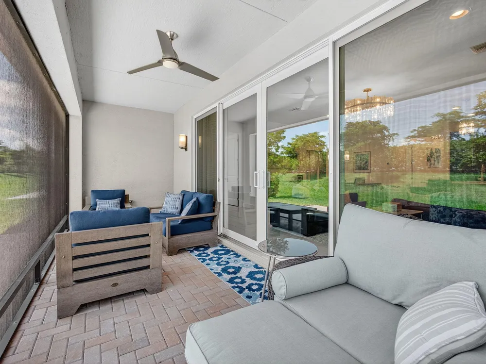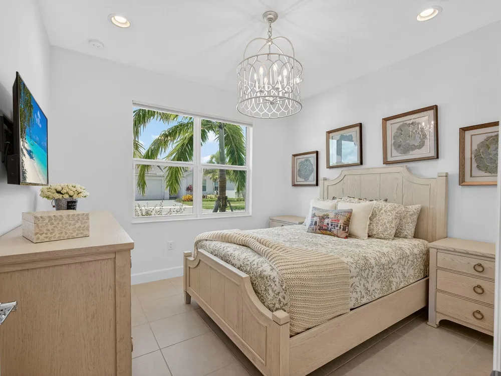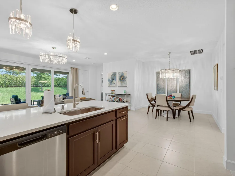 Why wait to build when this beautifully upgraded Sandpiper model is ready and waiting for you--complete with tranquil garden views and the perfect blend of style and comfort.Step inside and immediately feel at home in the bright, open layout where every detail has been thoughtfully designed. Gorgeous upgraded tile flows seamlessly throughout the space, complemented by soft lighting from recessed ceiling fixtures and designer light accents. The heart of the home--an inviting great room--is dressed with elegant custom drapes and Hunter Douglas shades, offering both warmth and privacy.The kitchen is as functional as it is beautiful, with upgraded cabinetry and plenty of space for gatherings. Just off the main living area, the enclosed patio invites you to relax, featuring extended paver