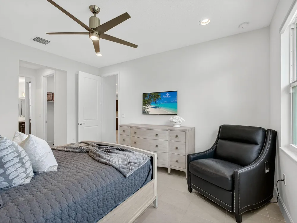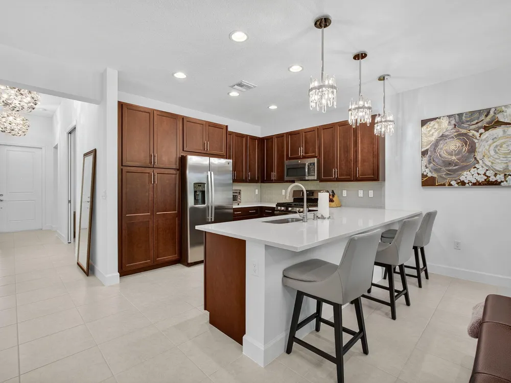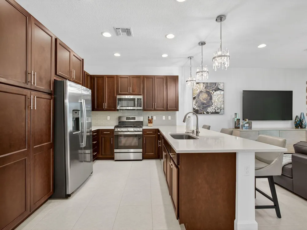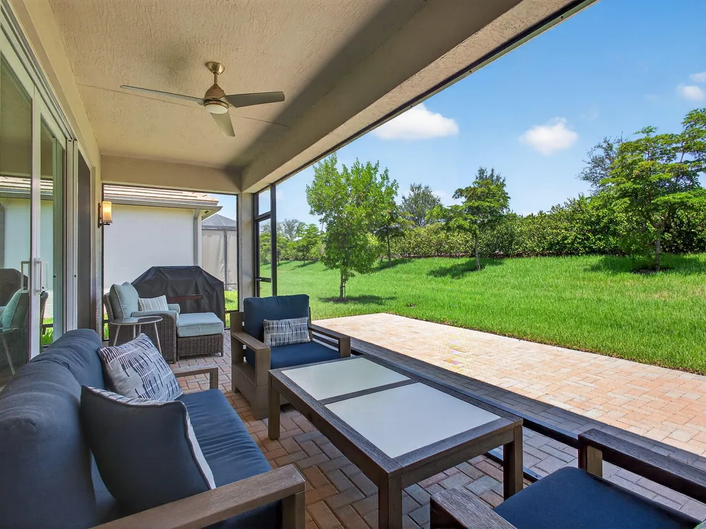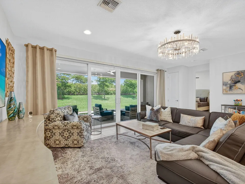 Why wait to build when this beautifully upgraded Sandpiper model is ready and waiting for you--complete with tranquil garden views and the perfect blend of style and comfort.Step inside and immediately feel at home in the bright, open layout where every detail has been thoughtfully designed. Gorgeous upgraded tile flows seamlessly throughout the space, complemented by soft lighting from recessed ceiling fixtures and designer light accents. The heart of the home--an inviting great room--is dressed with elegant custom drapes and Hunter Douglas shades, offering both warmth and privacy.The kitchen is as functional as it is beautiful, with upgraded cabinetry and plenty of space for gatherings. Just off the main living area, the enclosed patio invites you to relax, featuring extended paver