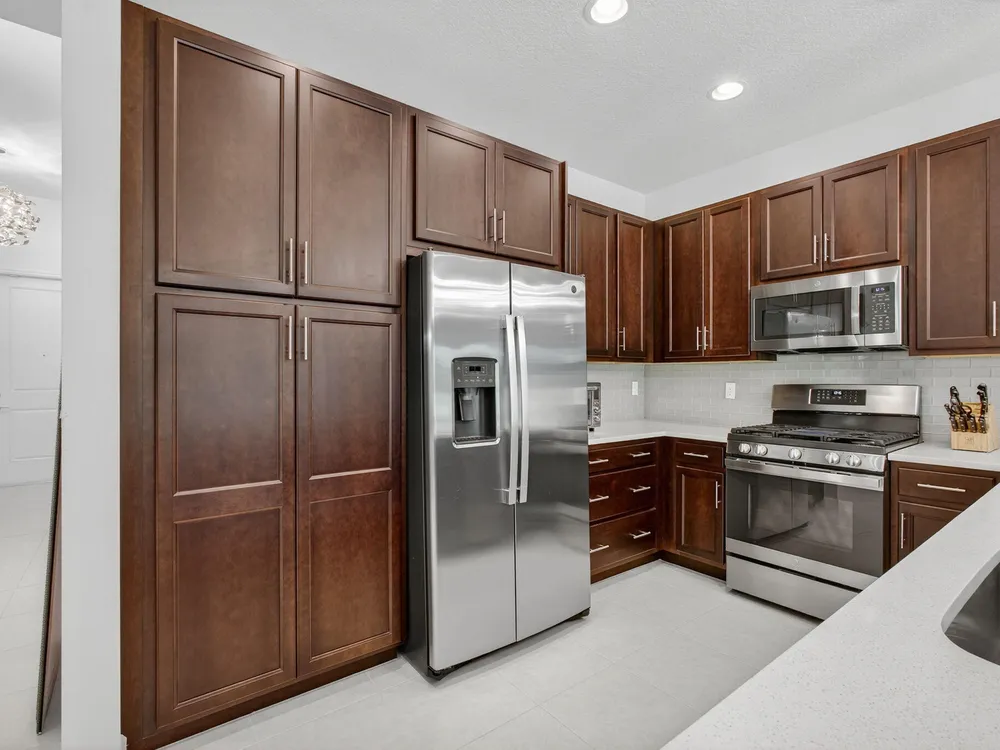 - Electric Garage Door, Dishwasher, Ice Maker, Microwave, Refrigerator, Washer