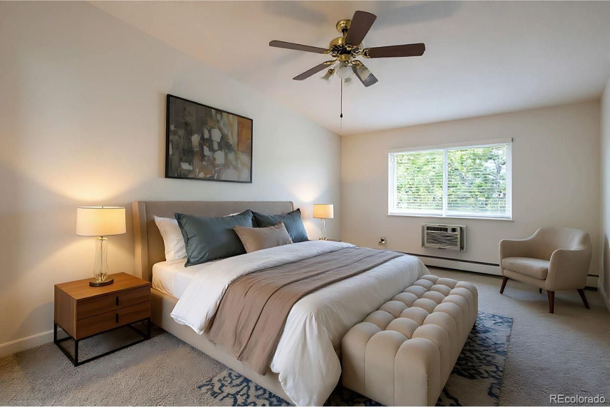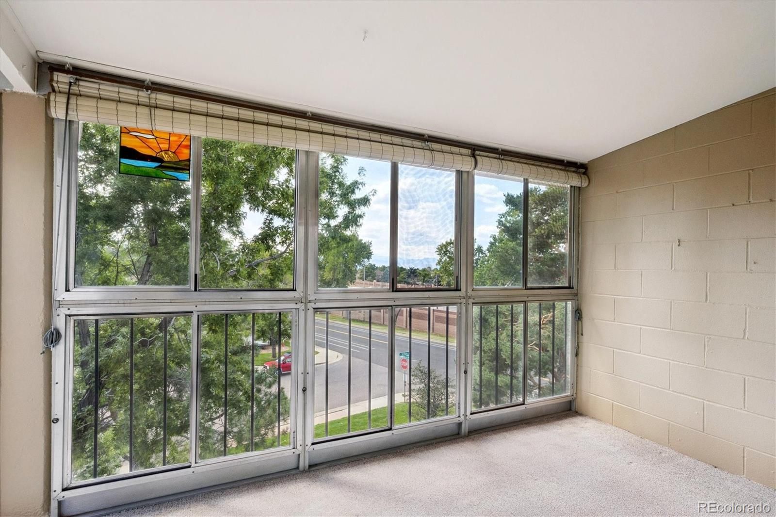 Welcome to this updated penthouse in Heather Gardens! This building is short walking distance to the clubhouse and all the amenities/restaurant. Featuring a number of updates, this 1200 sf condo has 2 bedrooms, 2 bathrooms, and includes a covered parking space. All new paint & carpet thru-out! The kitchen includes updated wood stained cabinetry, laminate countertops, and all black appliances included. Bathrooms with oak cabinets, and updated fixtures. Spacious Primary Bedroom w/en-suite 3/4 bath and oversized walk-in closet. 2nd bedroom opens to living room- can be bedroom, office, or flex space. Bonus multi-purpose room in unit for lots of storage or flex space. Additional bonus storage room in building- on same floor as condo. Glass/screen enclosed lanai- with views of mature trees. Spacious and open- this one is a must see! **Heather Gardens is one of Colorado’s largest Age 55+ communities. Did you know? Monthly HOA Dues include heat, water, sewer, trash, round-the-clock patrolling community responders, full time onsite association management, grounds/building maintenance, and activities department. Enjoy clubhouse amenities such as fitness center, indoor/outdoor pools, hot tub, sauna, craft rooms, 9 hole golf course and onsite restaurant open to the public. Stay engaged with a wide array of activities, clubs, and events scheduled every month. Close to restaurants, stores, shopping…easy access to Hwy 225, Cherry Creek State Park, DIA, and 9 mile light rail/RTD bus station. Come see for yourself what Heather Gardens has to offer.**