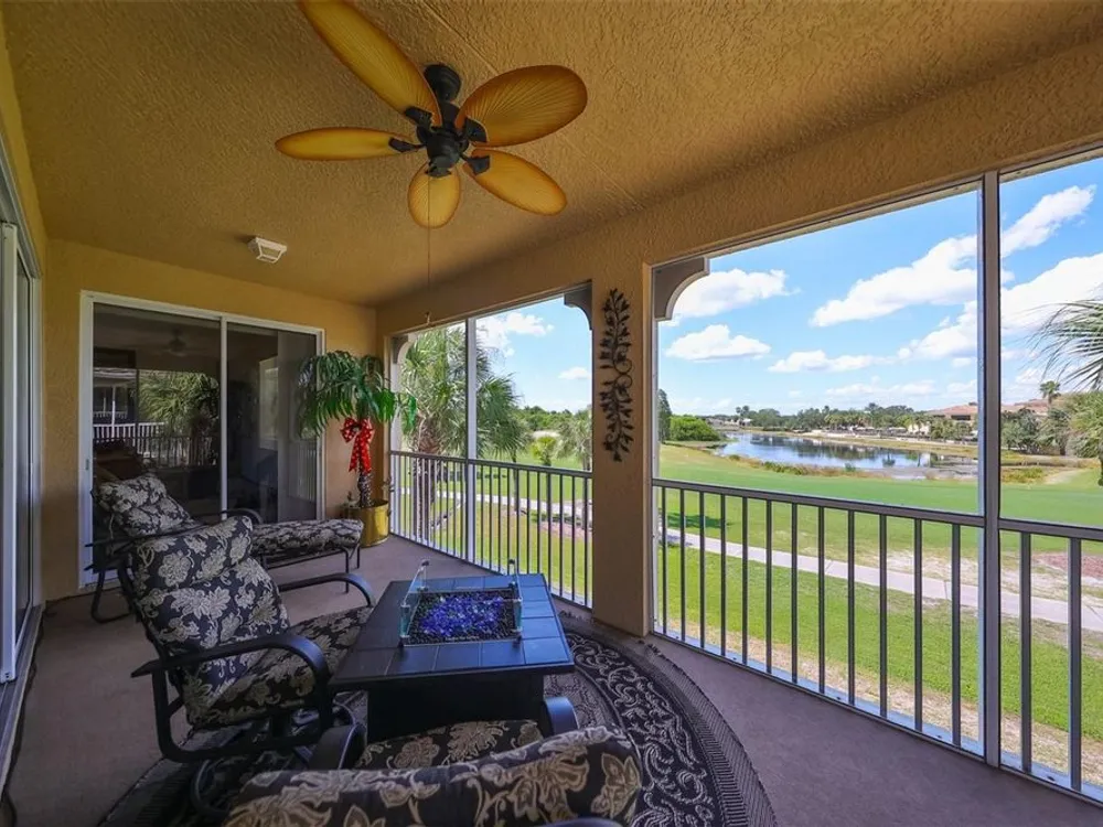 *CLICK ON INTERACTIVE 3d TOUR* MOTIVATED SELLER - TRIFECTA VIEW! WATERFRONT/GOLF COURSE/CLUBHOUSE VIEW, UPDATED within the last 18 months (Over $100K), TOP FLOOR , MAINTENANCE FREE, condo nestled in highly desirable Toscana community of Renaissance! A piece of paradise offering one of the best WATER/GOLF COURSE VIEWS. OPEN FLOOR PLAN has almost 2500 sq.ft. of living space & is accessed via a WIDE CURVING ALL WOOD STAIRCASE or YOUR OWN PRIVATE ELEVATOR that is maintained by the association. WATER/GOLF COURSE/CLUBHOUSE view from the covered, screened & PRIVATE lanai are immediate once you enter the great room. Open floor plan makes it IDEAL for entertaining. High-end CUSTOM KITCHEN updates are just part of the many updates that have been incorporated in this unit. CUSTOM AMOROSO Cabinetry (Craft Maid), ALL WOOD, raised panel cabinetry, under mount lighting, panel end caps & PULL-OUT SHELVING. GRANITE countertops with a soft modern pattern & a backsplash made of STONE compliment the space. The island boasts of multiple WOOD PANELS and a LARGE SURFACE counter with seating for six, perfect for family gatherings. STAINLESS STEEL APPLIANCES incl. GAS RANGE are all part of the beautiful upgrades. The great room has a spectacular water/golf course/clubhouse view, which accommodates both an intimate dining area & breakfast area for those informal meals. Primary bedroom has large windows and sliding doors onto the lanai with magnificent views of the water/golf course and clubhouse & tropical landscaping! UPDATED EN-SUITE bathroom has a WALK-IN shower with seamless glass, linear drain. The vanity has dual Kohler undermount sinks, granite counters & storage incl shared & individual drawers. Newer light fixtures and hardware complete the design while adding functionality. The WALK-IN CLOSET is spacious and lots of shelving. The split plan offers ULITMATE PRIVACY with larger, secondary bedrooms that boast natural light, new flooring & generous closet space. UPDATED second bathroom will impress with MODERN wood cabinetry, GRANITE countertop & Kohler undermount sink. The OFFICE/DEN has NEW flooring along with large windows so that NATURAL SUNSHINE can filter into the room. Laundry room offers shelving and cabinetry. Even the garage has been updated with storage cabinetry. Additional features/updates include tray ceilings, 8’ doors & arched entries, custom light fixtures throughout and natural gas! Renaissance Country Club has an expansive golf shop, restaurant, pool, fitness including an indoor walk/jogging track & a full-service day spa/wellness center. You have access to Sun City Center amenities that has over 100 clubs & organizations to choose from. There are activities to suit virtually every interest! Amenities include community pools (indoor & outdoor), fitness, shuffleboard, softball, lawn bowling, pickleball, lapidary, art & more! Golf carts are a primary source of transportation including grocery shopping, salons, banks, a hospital/doctors, shopping & restaurants! Located close to beaches, 35 minutes to Tampa International Airport & close to Sarasota shops. NOTE: All measurements considered accurate but must be verified by buyer. Roof, Exterior Building, Exterior Water & Landscaping all maintained by the Condo Association. A/C & Gas Furnace 2023; Appliances 2023. This condo has been PET FREE AND SMOKE FREE. VOTED #1 Retirement Community in the USA by Realtor.com & Travel & Leisure.____________