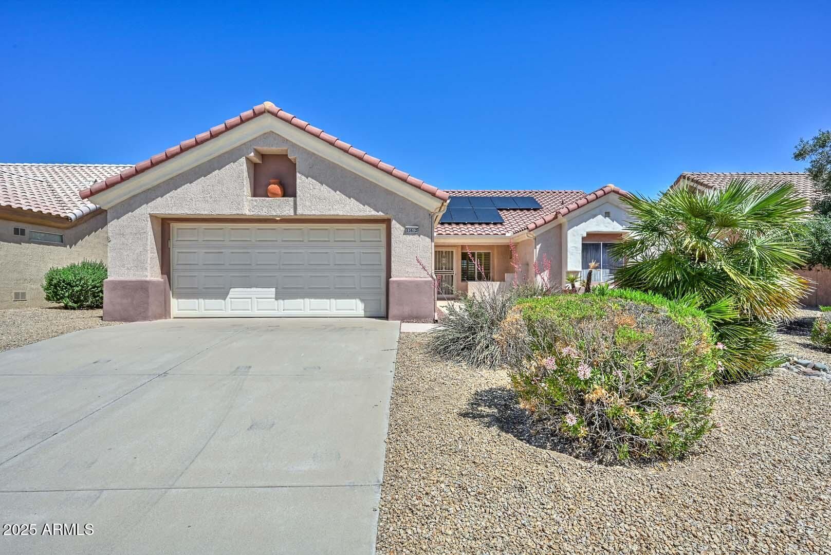 Welcome home to the beautiful & popular Sun City West community! This 2 bedroom, 2 bath, 1539 SF home is move-in ready! Spacious open floorplan with formal living & dining room overlooking the back patio. Eat-in kitchen with white appliances, breakfast bar, large pantry & lots of cabinets! Large bedrooms including primary suite with his & her closets, dual vanity sinks and safety bars added in both bathrooms. Oversized lot with 2 car garage & built-in cabinets. SOLAR PANELS for added savings! Covered patio in back overlooks the golf course! Lots of fantastic amenities including sparkling pool, workout facility, tennis courts & so much more! You won't want to miss seeing this lovely home today! 25-year solar lease at $66/month!