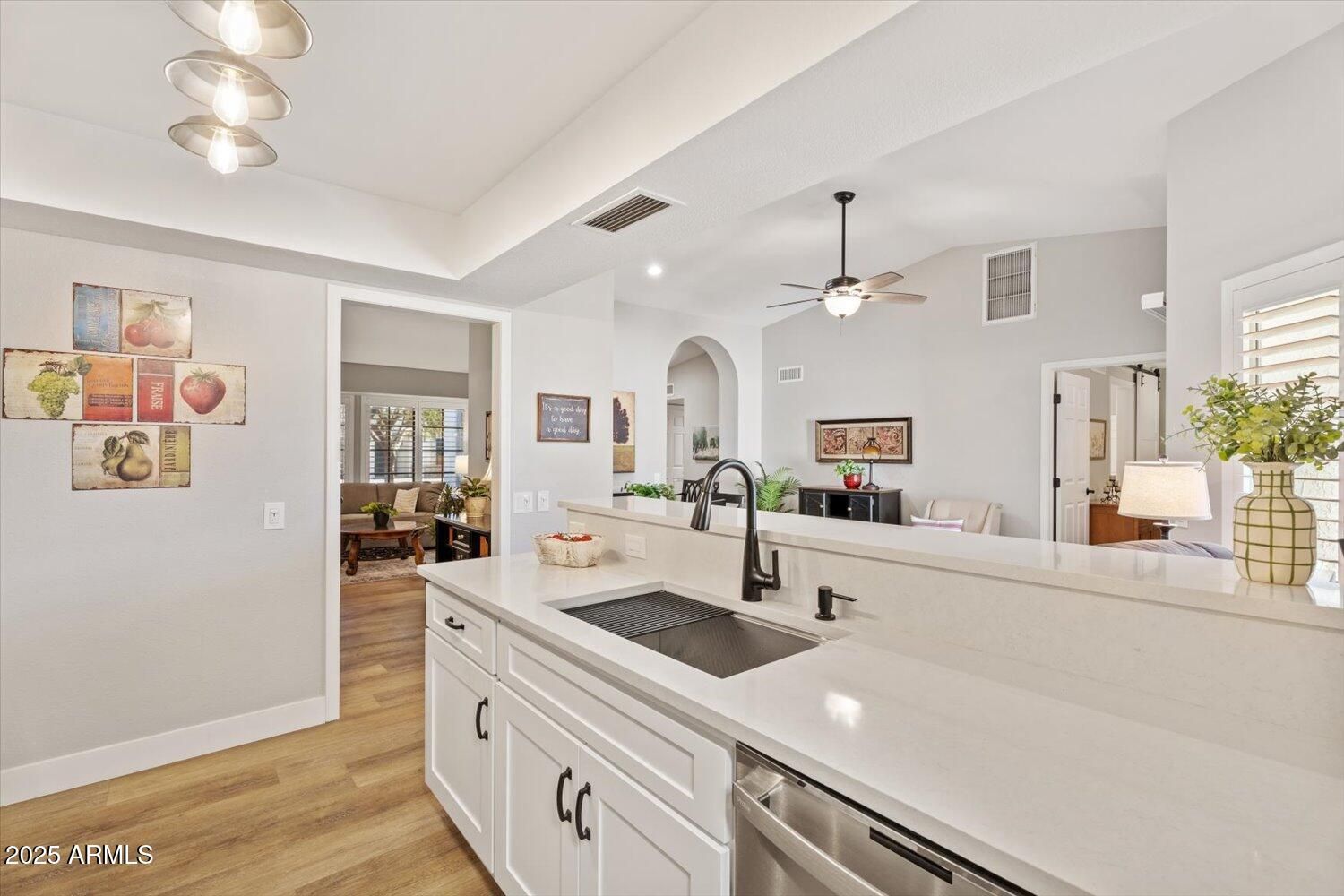 Enjoy easy Arizona living in this beautifully updated home located in the heart of Sun City West, one of the Valley's most sought after active adult communities. This Pueblo model offers the perfect blend of comfort, low upkeep, and privacy, making it an ideal choice for those looking to downsize, simplify, or own a second home in a warm weather destination. Over the past two and a half years, the home has been extensively renovated with a new HVAC system, new roof, new garage door, all new flooring, updated plumbing and light fixtures, new window coverings, and a completely refreshed kitchen featuring new countertops and new appliances, creating a move in ready home designed for long term ease and confidence. Inside, vaulted ceilings add to the open feel while the functional... layout offers both comfort and flow for everyday living and entertaining. The primary suite includes dual sinks, a walk in closet, and direct access to the covered patio, providing a peaceful place to enjoy morning coffee or evening sunsets. The private backyard is fully enclosed by a block wall and includes a gate wide enough for golf cart access and parking, offering convenience along with relaxation. As an attached home, this property provides energy efficiency and reduced exterior maintenance while still maintaining privacy and quiet living. The HOA covers exterior maintenance as well as roof repair and replacement, allowing owners to spend more time enjoying life and less time dealing with home upkeep. Residents have access to endless amenities including golf, recreation centers, fitness facilities, walking paths, and social clubs that make Sun City West a vibrant place to live or escape to each winter. Whether you are looking for a full time residence or a low hassle second home, this property delivers comfort, upgrades, and lifestyle in one exceptional package.