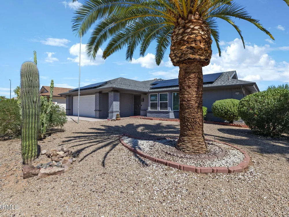 Welcome to this charming 2 Bedroom 2 Bathroom home in the desirable community of Sun City West! This thoughtfully designed residence features a split floor plan that maximizes privacy and comfort. The main living area boasts high ceilings, complimented by a neutral color palette that creates a warm atmosphere. Beautiful tile & vinyl wood flooring flows throughout the living areas, while the guest room features new carpeting along with a brand-new murphy bed. Live energy efficiently with new owned solar panels installed in 2022, new windows in 2023-2024 a new AC unit in 2023. The Patio roof was replaced in 2025, the exterior repainted in 2022, and a new garage door/ opener in 2024. Wonderfully maintained, don't miss out on this amazing opportunity!