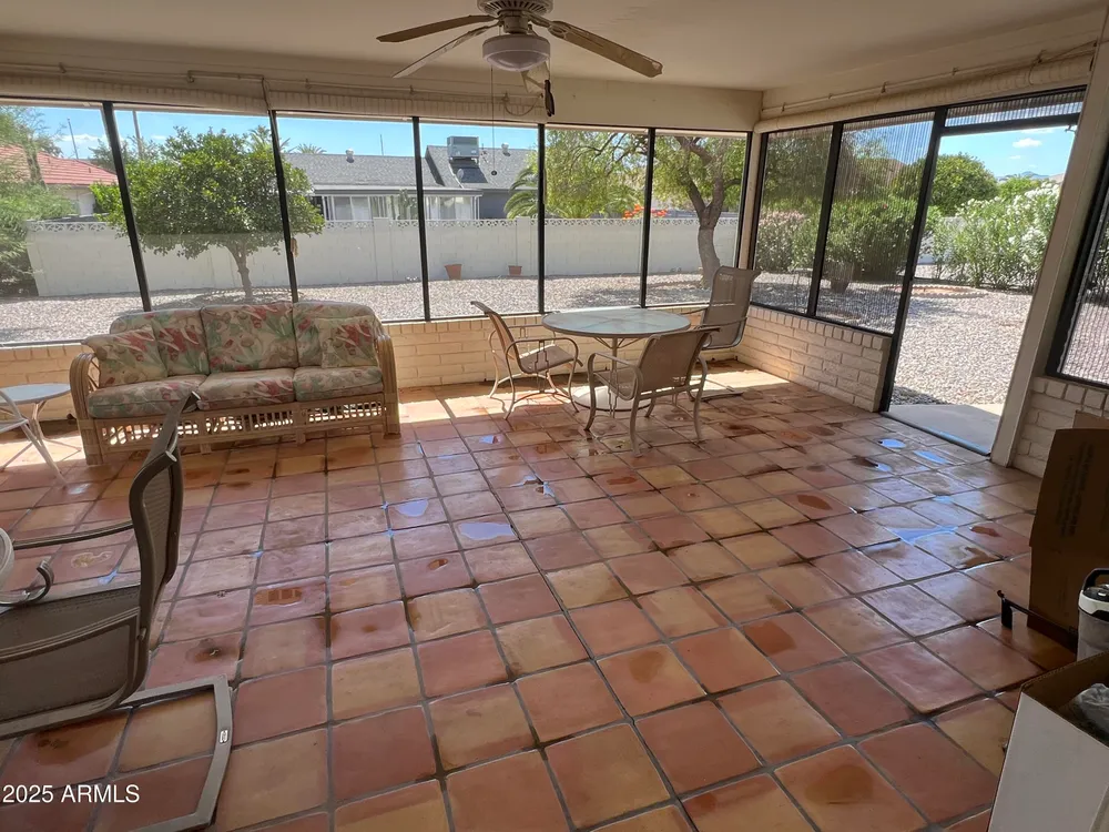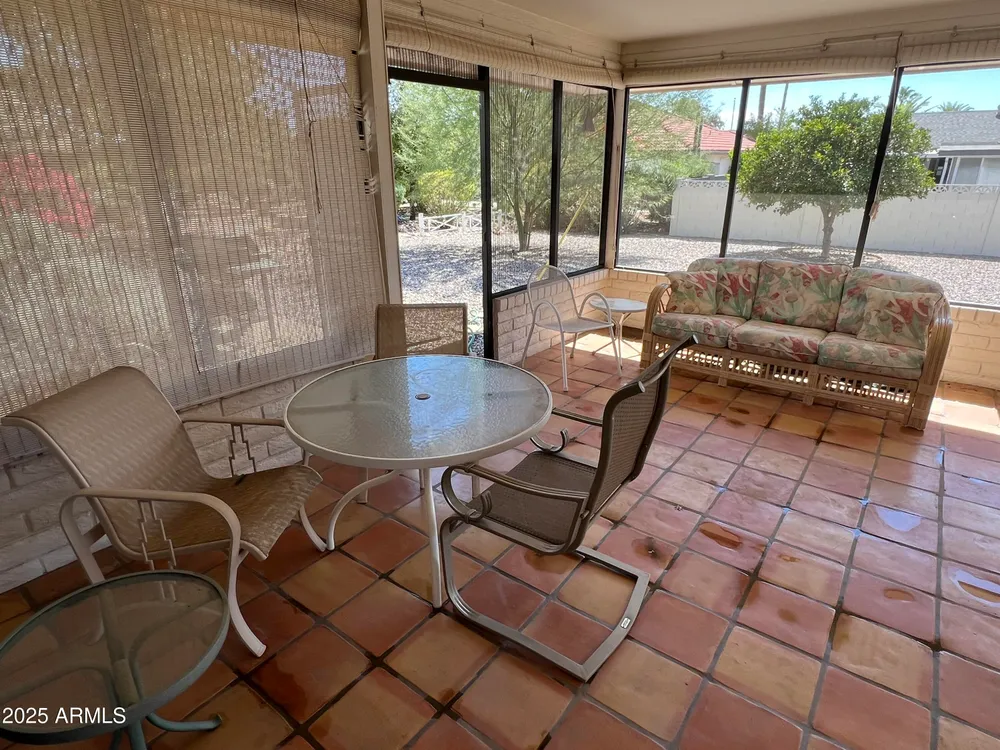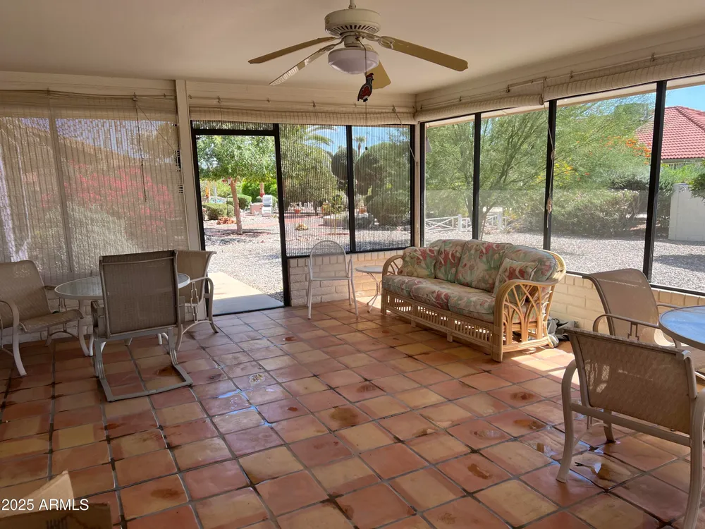 This well cared for Capistrano model is located in Sun City West with 2 BD, 2 BA, both featuring step-in showers! The primary bedroom is spacious, with a large walk-in closet, dual sinks and private toilet/ shower room. Inside, the living/dining room offers versatility. The kitchen flows well into the dining area, showcasing newer SS appliances, added cabinetry, and the indoor laundry/utility room can double as an office or be used for additional storage. Step out onto the tiled, screened-in back patio that creates a relaxing and open atmosphere. All windows on the back of the home were updated recently, helping keep the home cool. Be located close to shopping, medical facilities, Grandview Golf Course & the RH Johnson Rec. Center. This could be the one!
