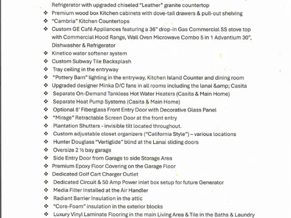 This Home will absolutely take your breath away… TERRA VISTA Care-Free Pool Home - 4 Bedrooms - 3 Baths - 2.5 Garage built in 2022 with many of today’s most desired features. Upon entering a Light & Bright feeling will embrace you & the design features will delight you! The private Guest Casita can also serve as an “In Home Office” She/He Shed or Pool Cabana. The spectacular Cali Bamboo Luxury Vinyl Plank Flooring will catch your eye! The spacious Great Room, Dining area Gourmet Kitchen, that’s a cook’s dream, has Premium "Café" Series Appliances, "Cambria" Counters, spacious Center Island, 42” White Cabinetry w/Crown Molding & a “California Style” Pantry. “Pottery Barn” designer Light Fixtures along with Premium “Minka DC” Ceiling Fans are located throughout the home. This home does not disappoint. From a spacious Lanai & inviting Heated Salt-Water Pool complete with with a "Baja-Shelf" with Umbrella along with spacious Summer Kitchen w/Gas Grill, Storage Drawer & Refrigerator provide a fantastic area to entertain family & friends… Or a place for your own enjoyment. Next you enter your impressive Master Suite w/ “California Closets”, a Spa-like Bath w/Walk-in Shower featuring a Rainfall Shower Head & 2 Body Jets. On the opposite side of the home are 2 generously sized Guest Rooms, Guest Bath & Laundry Room. A spacious 2.5 Car Garage provides extra space for your “toys”, Golf Cart or Storage. The Casita (4th BR) is connected by a side walkway to the front of the home allowing private access by guests. This amazing Home is NEW in every aspect of the word and has amazing features… If you are thinking about building your dream home… WHY WAIT FOR IT? This Home is all done for YOU... Start Living the Terra Vista Lifestyle now. THIS IS VALUE YOU CAN’T AFFORD TO MISS!