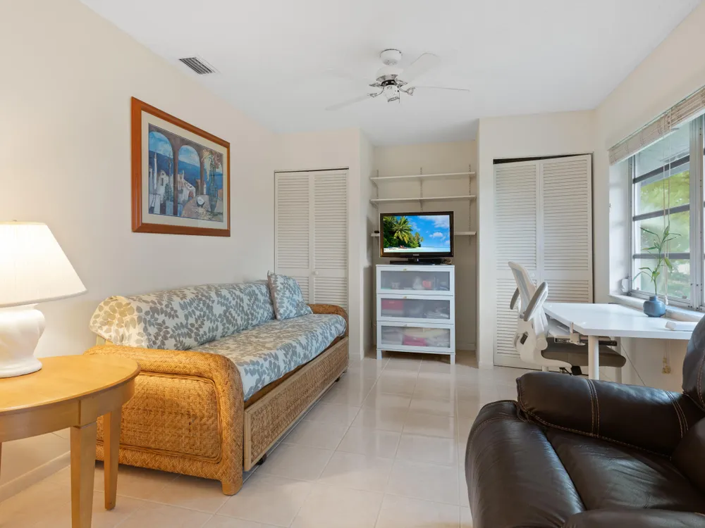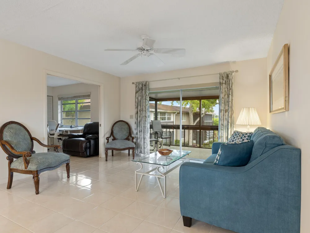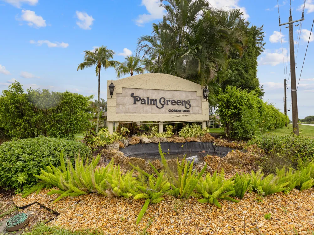 Welcome to The Palms Villas in Palm Greens in Delray Beach. This charming & well kept 55+ condo is a 2-bedroom, 2-bath unit on a bright and airy corner. Natural light fills the space, and the generously sized primary bedroom has a large ensuite closet. The second bedroom can be converted to an office or den. New washer and dryer in unit. Step outside to a screened patio with serene garden views--perfect for relaxing. Conveniently located near downtown Delray, top shopping spots, dining, and beautiful beaches, this home offers the best of South Florida living. Community amenities include a sparkling pool and clubhouse, tennis, pickleball, Bocce and more! It's move in ready or you can make it our own. NEW clubhouse ready ~early 2026, & short distance. READY FOR OCCUPANCY MAY 1 2026.