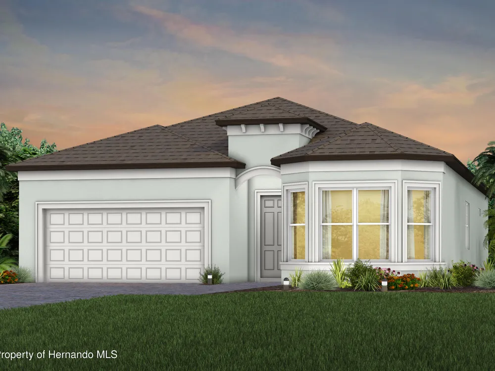 Enjoy all the benefits of a new construction home and experience a new level of retirement living at our newest Del Webb community, Del Webb River Reserve. This brand new active adult community represents everything that your next chapter in life should be about: Finding a place to belong and living life the way you want. Envision a thoughtfully crafted, resort-style residence nestled in nature with expansive amenities and vibrant gathering areas that will foster lifelong connections. This gated, active adult community is located 30 minutes north of Downtown Tampa. The elegant Palmary makes entertaining easy, featuring a connected kitchen, café, spacious gathering room, and versatile enclosed flex room. The spacious kitchen has tons of counterspace and a walk-in pantry with shelving. This home has stainless steel single bowl sink with upgraded faucet, stylish cabinets, 3cm quartz countertops with 3''x12'' tiled backsplash and Whirlpool stainless steel appliances including a dishwasher, refrigerator, built-in oven and microwave, and stovetop with range hood. The bathrooms have matching upgraded cabinets and quartz countertops and a walk-in shower with heavy glass door and dual sinks in the Owner's bath. There is 9''x36'' tile flooring in the main living areas flex room, baths and laundry room and stain resistant carpet in the bedrooms. Additional upgrades and features include a covered lanai with screen enclosure, floor outlet and LED down lighting in the gathering room, tray ceiling at the gathering room, utility sink at the laundry room with Whirlpool washer and dryer, faux wood blinds throughout home and a Smart Home technology package with a video doorbell. Enjoy peace of mind with Pulte's transferable, 10-year Limited Structural Warranty that covers materials and workmanship in the 1st year, workability of plumbing, electrical, HVAC, and other mechanical systems through the 2nd year, various types of water infiltration and internal leaks through the 5th year, and the structural integrity of the home through the 10th year. Plus, we're currently offering limited-time incentives and below-market rates!