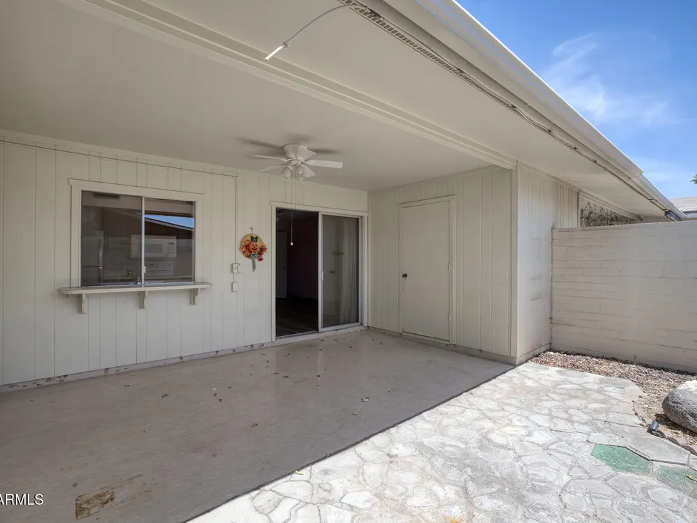Welcome to your ideal active adult retreat in the vibrant community of Sun City, Arizona. This charming 2-bedroom 1-bathroom townhome with high ceilings offers a perfect blend of comfort and convenience. Large walk-in closets, newer washer and dryer, along with a newer fridge & stove, makes this an efficient living space. Step outside to your private covered patio that includes an extra storage space and double doors in the car port allowing for golf cart parking. As a residence, you'll have access to an array of recreation centers, sparkling pools, and golf course offering endless opportunities for leisure and social activity. Don't miss your chance for this great opportunity!