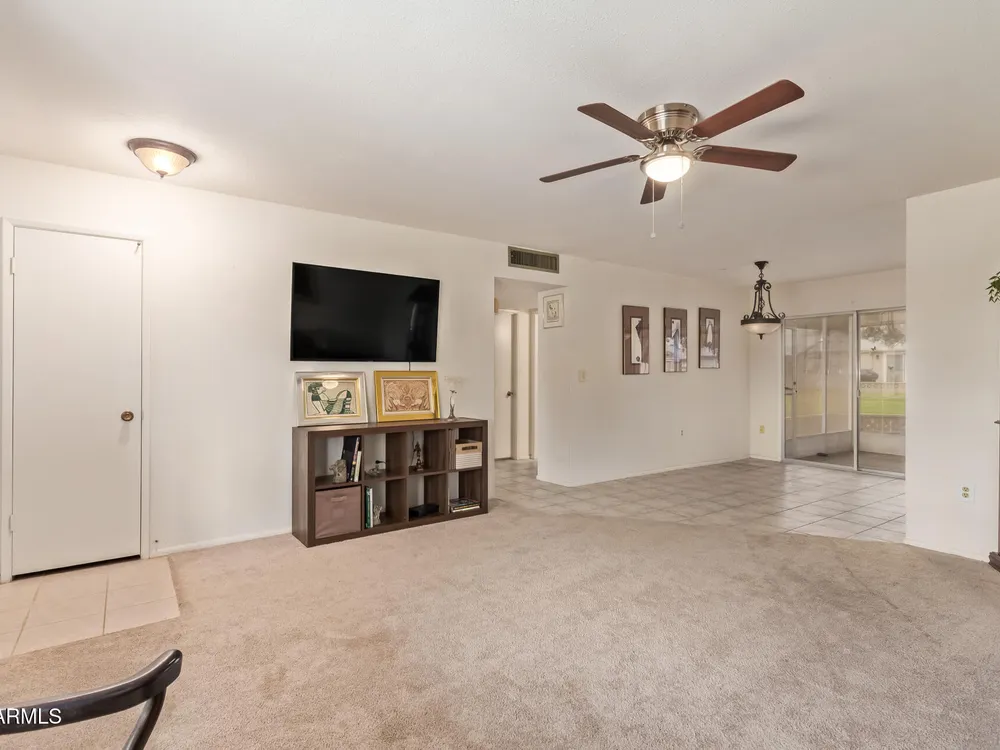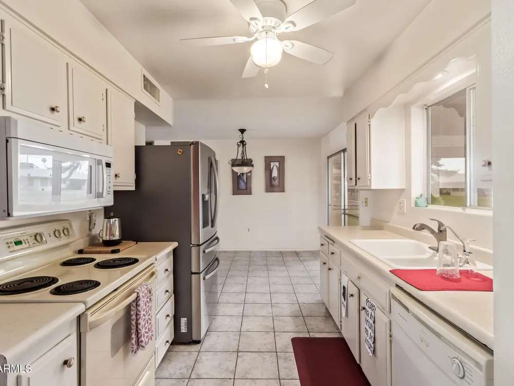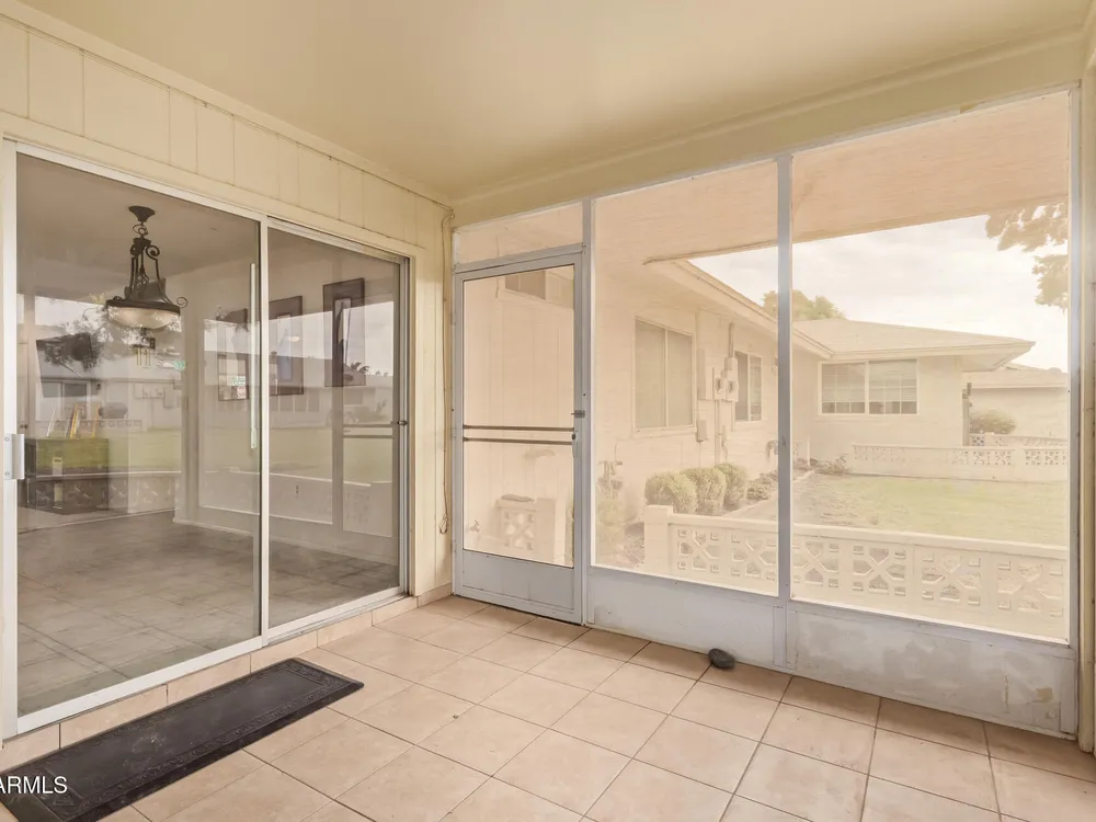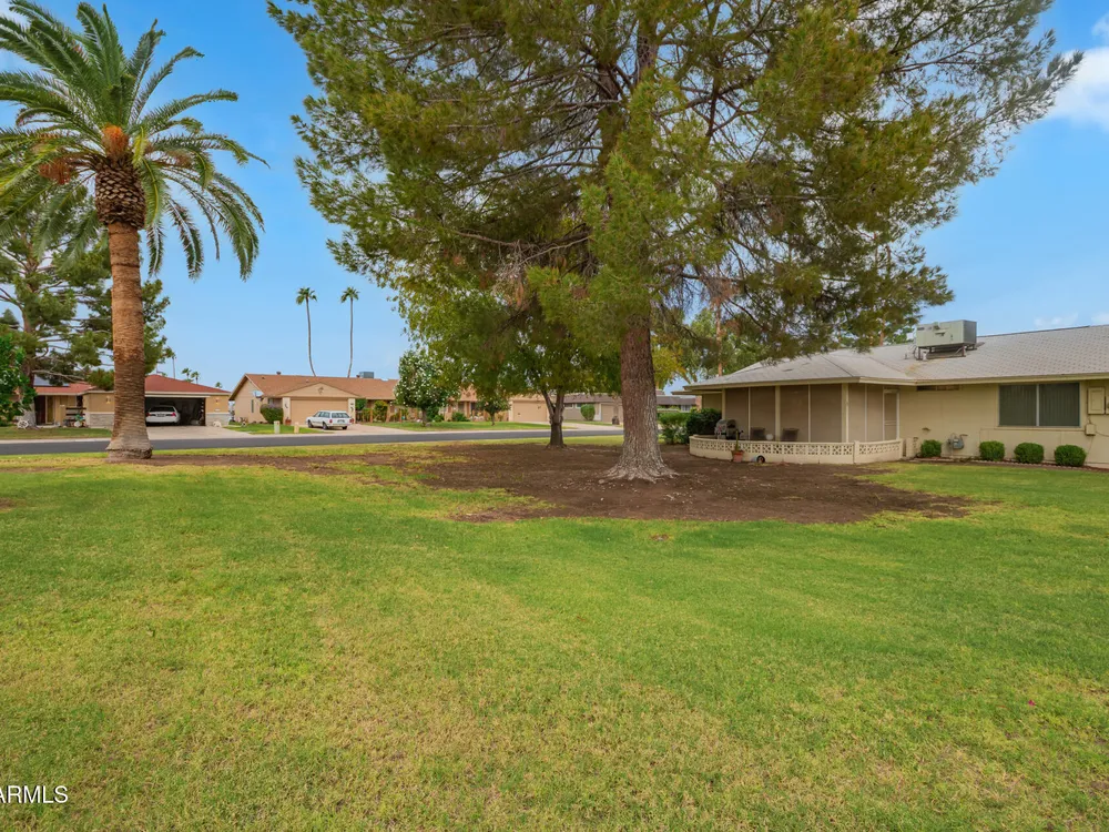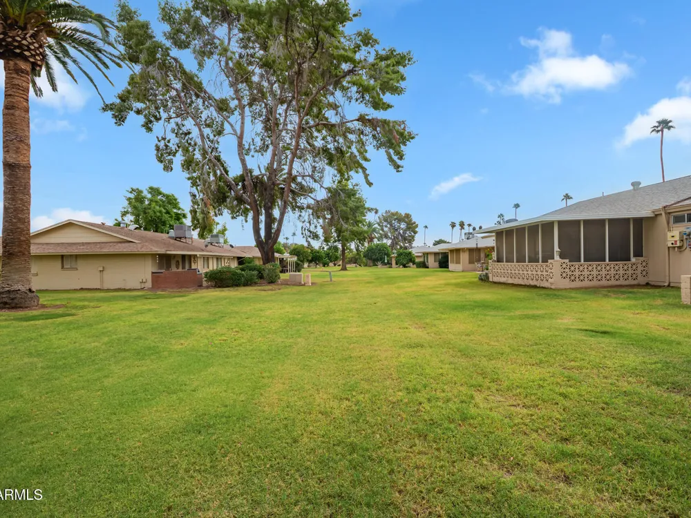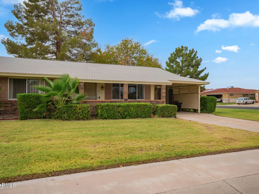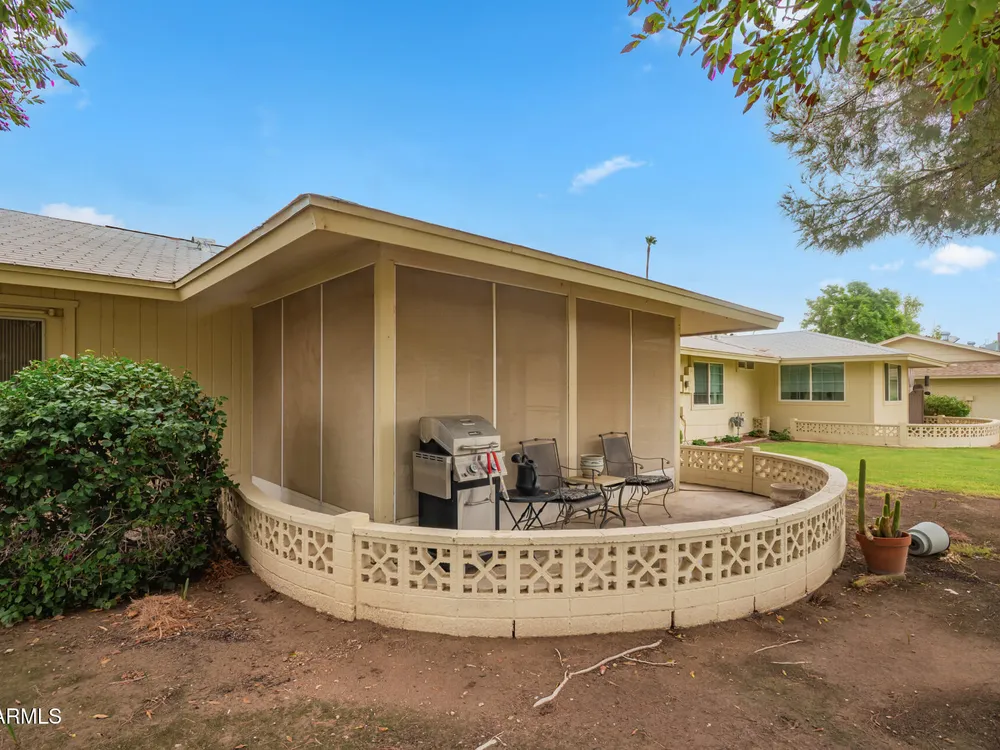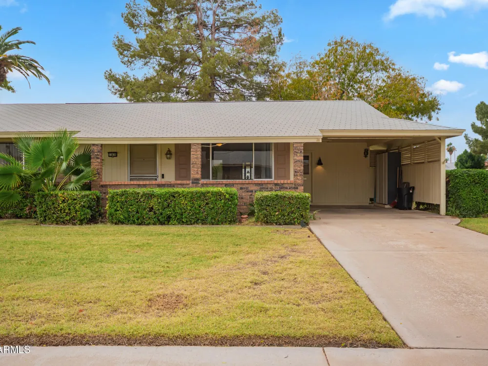Fall in love with this delightful corner lot 2-bedroom home nestled in the vibrant 55+ community of Sun City with 8+ recreation centers! Inside, you'll find a cozy living room perfect for relaxing, with a mix of carpet and tile floors adding warmth and charm. Whip up your favorite dishes in the well-equipped kitchen featuring ample counter space, built-in cabinetry, and all the essentials. Both bedrooms promise peaceful nights and restful mornings. Sip your favorite drink on the screened-in patio overlooking the greenbelt or host a sizzling backyard barbecue with friends. With access to a sparkling pool, soothing spa, scenic golf course, and serene lake views, this home is your ticket to easy living and endless fun!