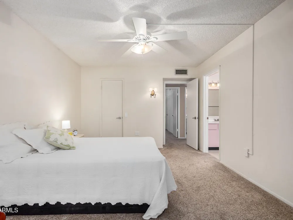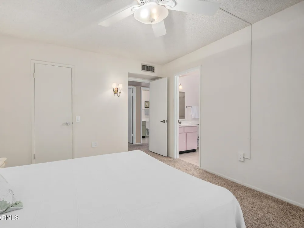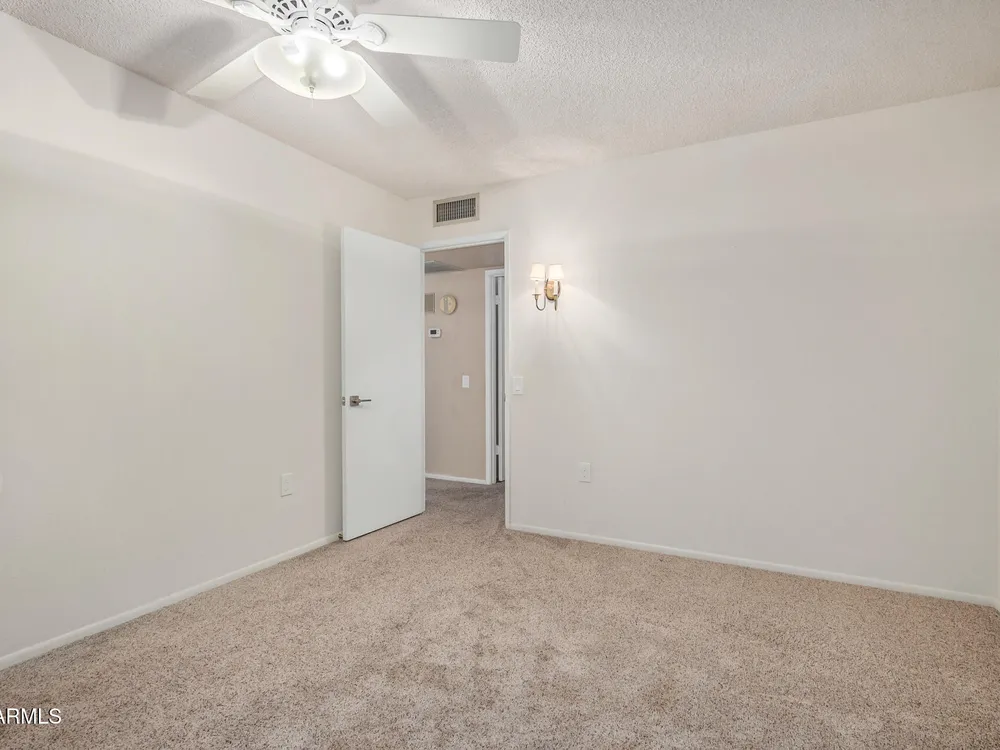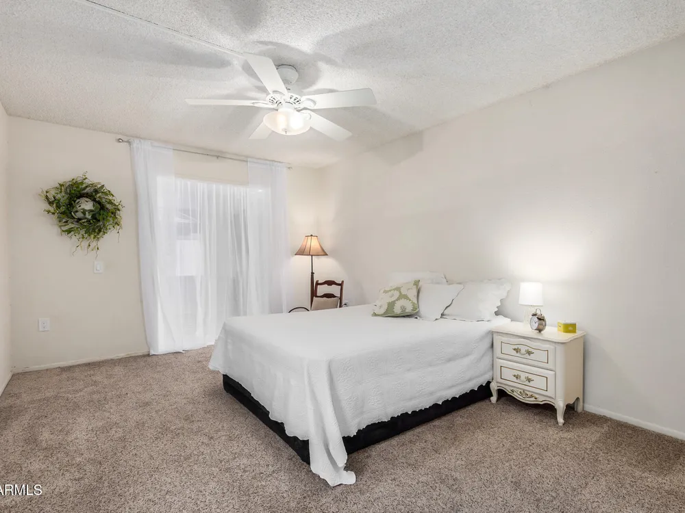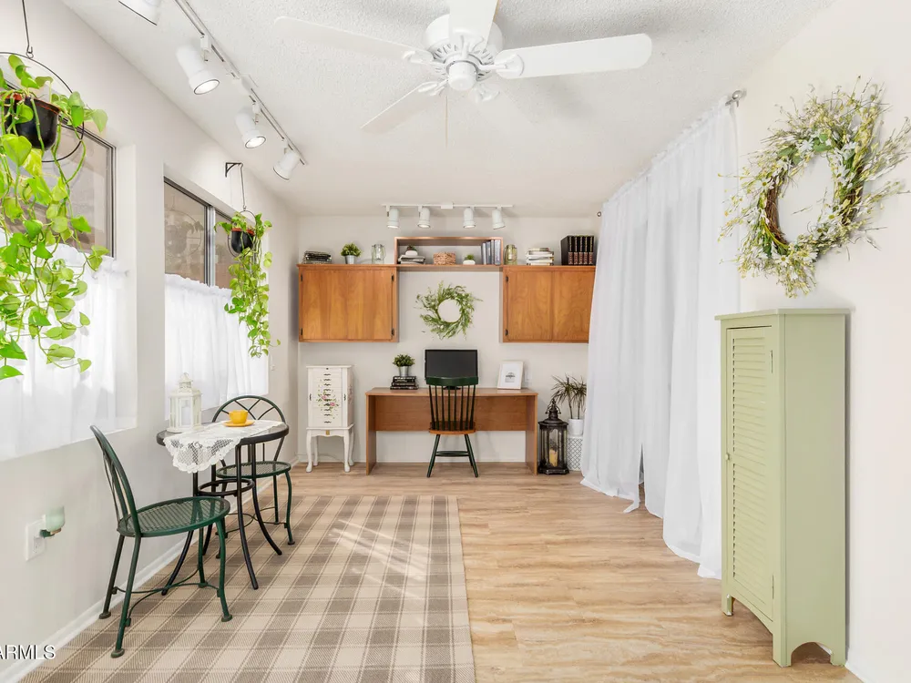 This beautifully maintained condominium boasts a fantastic layout that maximizes space and comfort. This property features a stunning courtyard sanctuary, perfect for enjoying your morning coffee or unwinding after a long day. The home offers two spacious walk-in closets, providing ample storage and organization. One of the standout features of this condominium is the unique, versatile space off the bedroom and dining room area. This area can be transformed into a hobby room, library, or any creative space you desire, a wonderful retreat for relaxation and inspiration. Experience the perfect blend of comfort & convenience. Close to shopping, banks, medical center, golf course and the Loop 101, with 7 recreation centers just for you, with one just 2 blocks away.