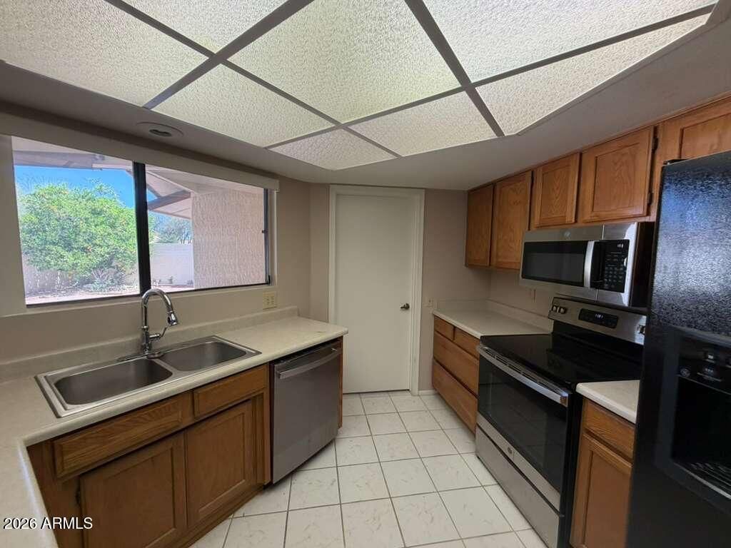- Refrigerator, Built-in Microwave, Dishwasher, Disposal, Electric Range, Electric Oven