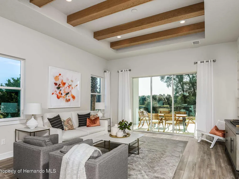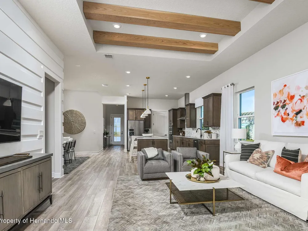 Enjoy all the benefits of a new construction home and experience a new level of retirement living at our newest Del Webb community, Del Webb River Reserve, with a free Golf Cart included. This brand-new active adult community represents everything that your next chapter in life should be about: Finding a place to belong and living life the way you want. Envision a thoughtfully crafted, resort-style residence nestled in nature with expansive amenities and vibrant gathering areas that will foster lifelong connections. This gated, active adult community is located 30 minutes north of Downtown Tampa. This stunning Mainstay floor plan is the home you've been looking for. Enjoy an open-concept home design with all the upgrades you'll love. The gourmet kitchen features an oversized walk-in pantry, stylish cabinets and 3cm quartz countertops, and KitchenAid stainless steel appliances including a microwave, range, dishwasher and refrigerator. The luxury Owner's suite features a spacious walk-in closet and the Owner's bath has dual sinks, walk-in shower with niche, a linen closet, and a private commode. There's also a versatile enclosed flex room, a secondary bedroom and full bath, a convenient laundry room with built-in cabinets and Whirlpool washer and dryer, a storage room, and a covered lanai. There is luxury vinyl plank flooring in the main living areas and flex room 12''x24'' tile in the baths and laundry room and stain resistant carpet in the bedrooms. Additional features and upgrades include LED downlights in the gathering room, pocket sliding glass door at gathering room, tray ceiling at gathering room, 2'' faux wood blinds throughout home and a Smart Home technology package with a video doorbell. Enjoy peace of mind with Pulte's transferable, 10-year Limited Structural Warranty that covers materials and workmanship in the 1st year, workability of plumbing, electrical, HVAC, and other mechanical systems through the 2nd year, various types of water infiltration and internal leaks through the 5th year, and the structural integrity of the home through the 10th year. Plus, we're currently offering limited-time incentives and below-market rates!