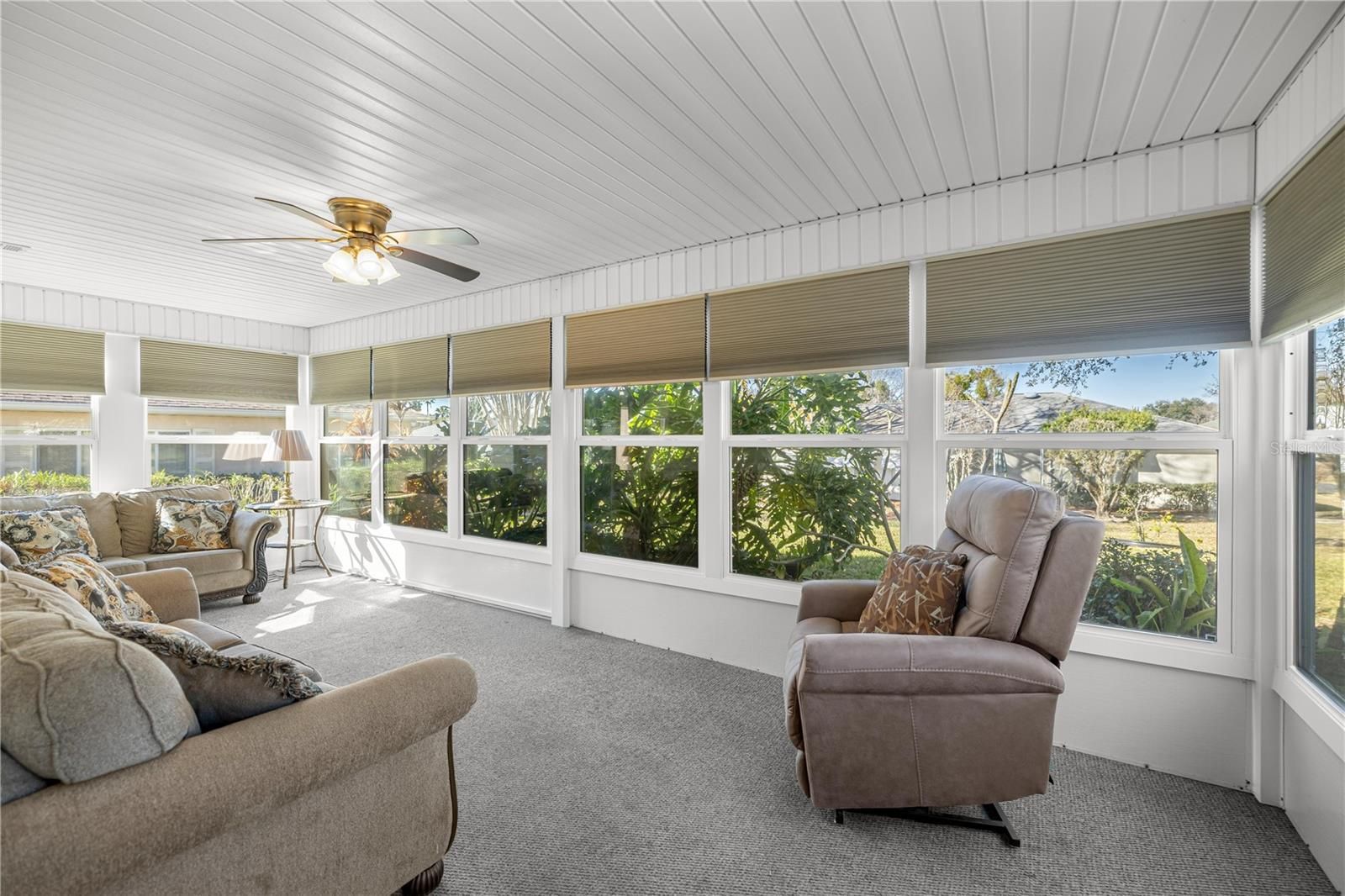 Move-in ready and priced to sell under $250K! This well-maintained 2-bedroom, 2-bath home with a 2-car garage is located in the highly sought-after 55+ active adult community of Spruce Creek Golf & Country Club. The split-bedroom floor plan offers excellent natural light and offers a formal living room, an eat-in kitchen with plenty of cabinet and counter space, inside laundry room, and a spacious Florida room accessible from both the primary suite and the dining area. The generous primary suite features dual closets, while the ensuite bath offers double sinks and a large shower. A new roof (2023) provides peace of mind for years to come. Enjoy the beautifully landscaped lot which provides added privacy in the rear. Spruce Creek Golf & Country Club is a stunning, golf-cart-friendly community offering an impressive list of amenities including four 9-hole golf courses, tennis, pickleball, shuffleboard, billiards, computer room, indoor and outdoor pools, hot tubs, dog park, and a scenic nature trail. With 70+ clubs and activities, there truly is something for everyone. Enjoy the convenience of nearby shopping and medical facilities, all while being just a quick 13-minute drive to The Villages. Schedule your tour today. This IS the one!