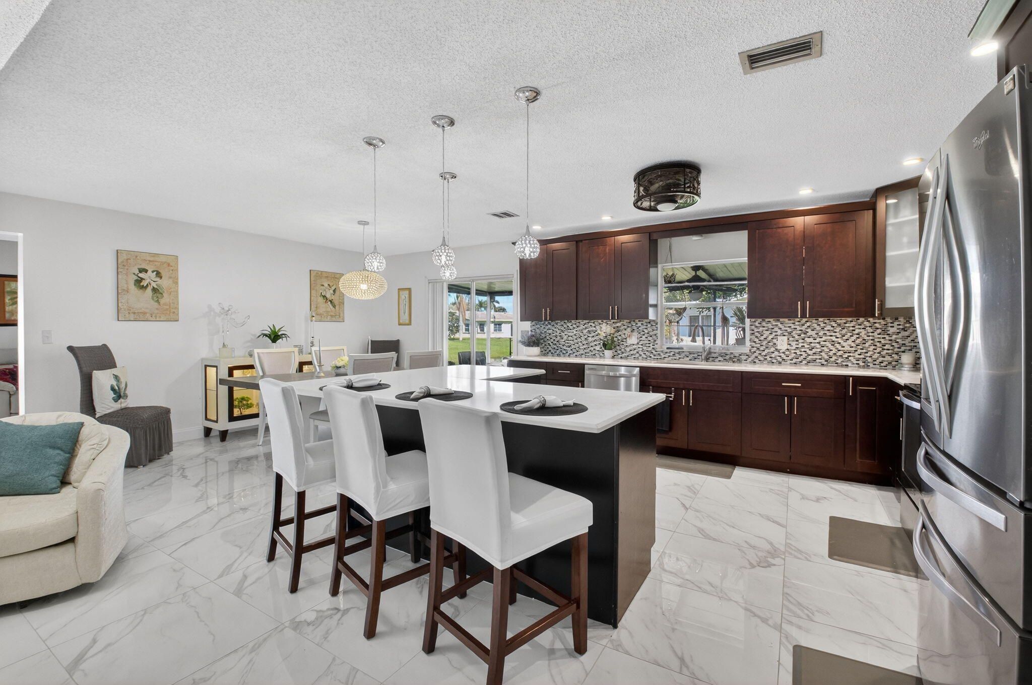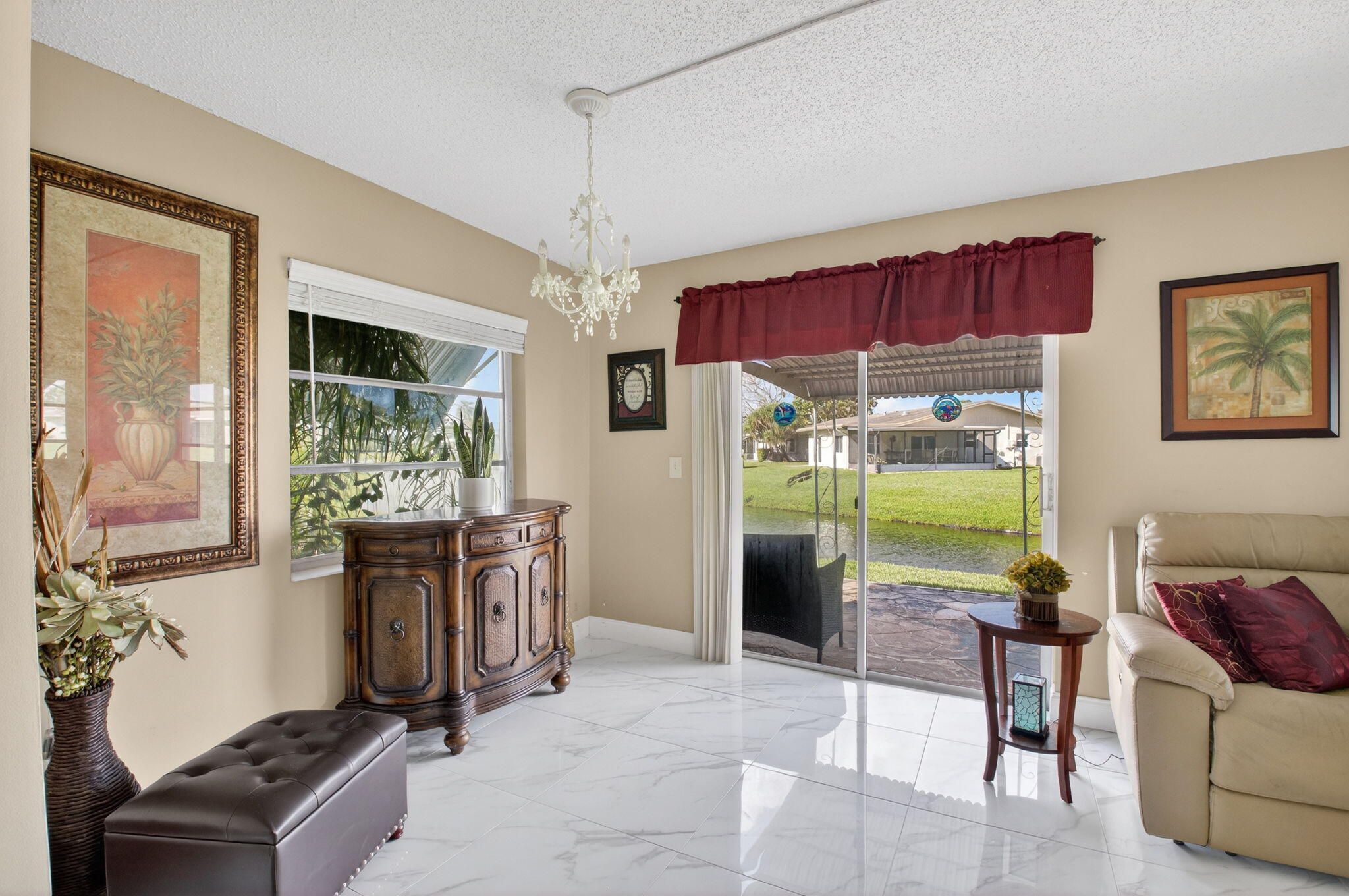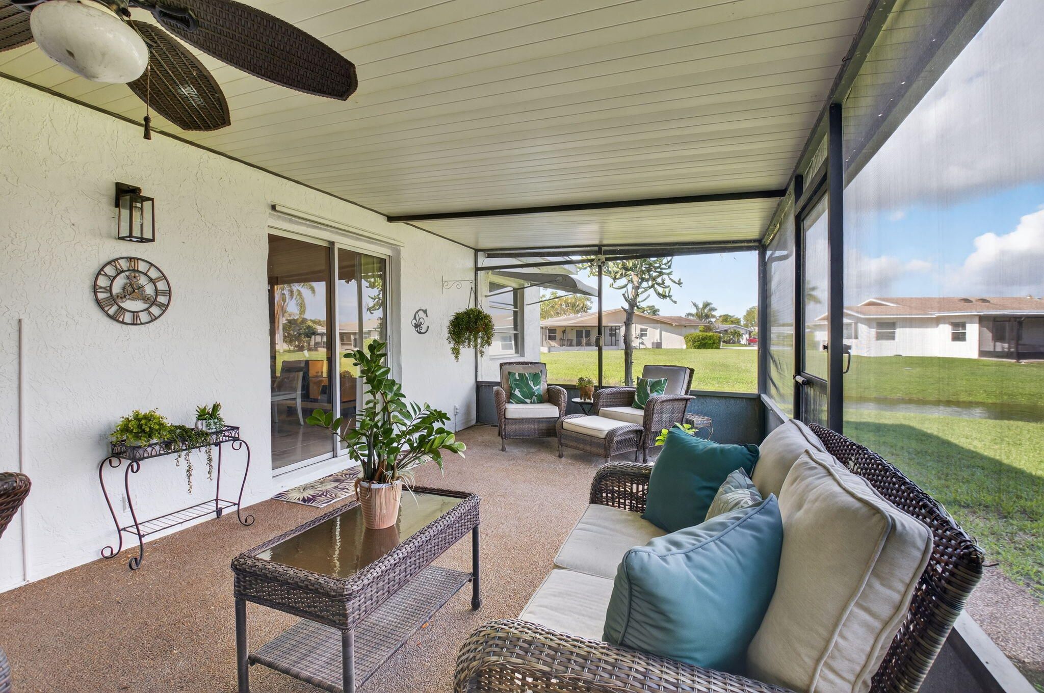 Beautifully updated, move-in ready home in the desirable Delray Villas Community.Featuring a bright open floor plan with large-format porcelain tile flooring and abundant natural light. The renovated kitchen offers rich wood cabinetry, stainless steel appliances, quartz and marble countertops, and a spacious island perfect for entertaining. Enjoy a generous Florida room and expansive screened patio overlooking tranquil water views, creating the ideal setting for indoor-outdoor living. The primary suite is spacious and inviting, while updated bathrooms include a walk-in shower with built-in seating. Residents enjoy resort-style amenities from the newly renovated clubhouse and surrounding recreational facilities, which include a waterfront pool and spa, expansive sundeck, library.... card and game rooms, and billiards. Active community with social events, beautifully maintained grounds, and scenic walking paths. Conveniently located near shopping, dining, and major roadways, offering comfort, convenience, and vibrant Florida living.