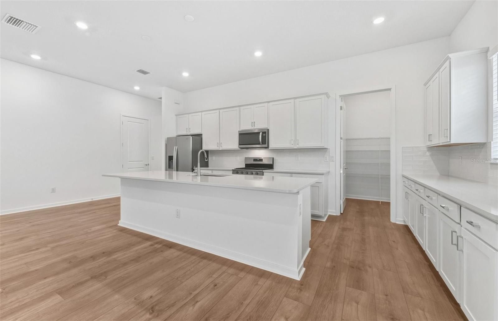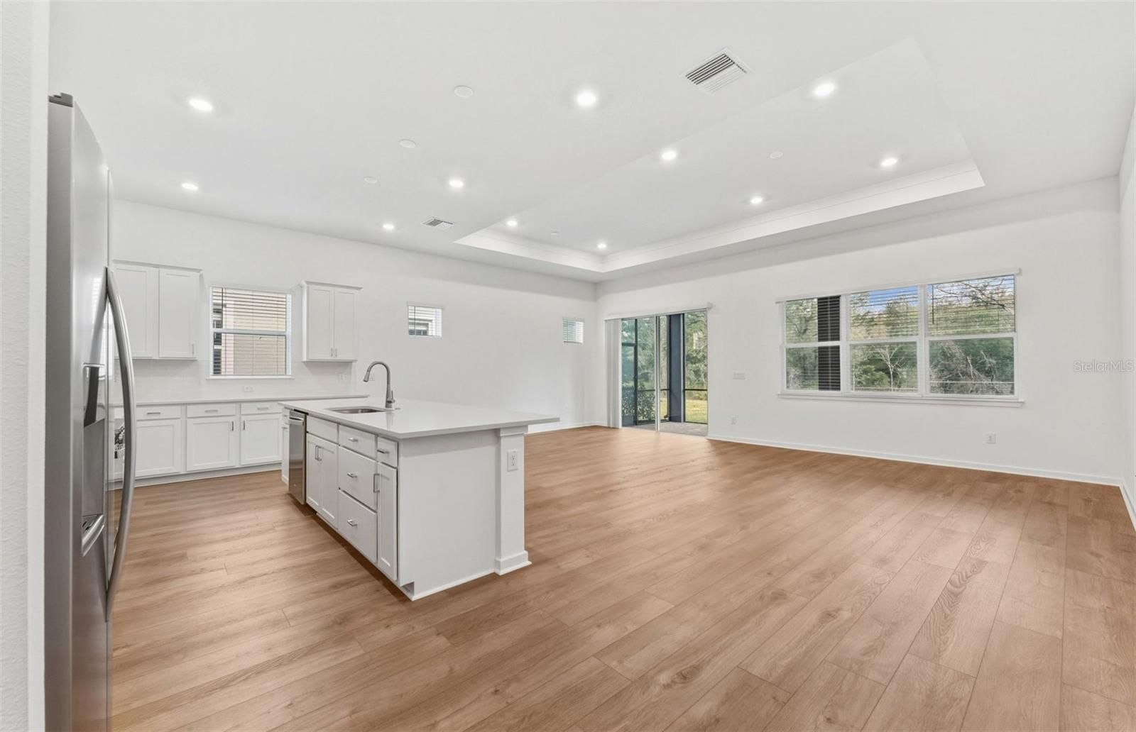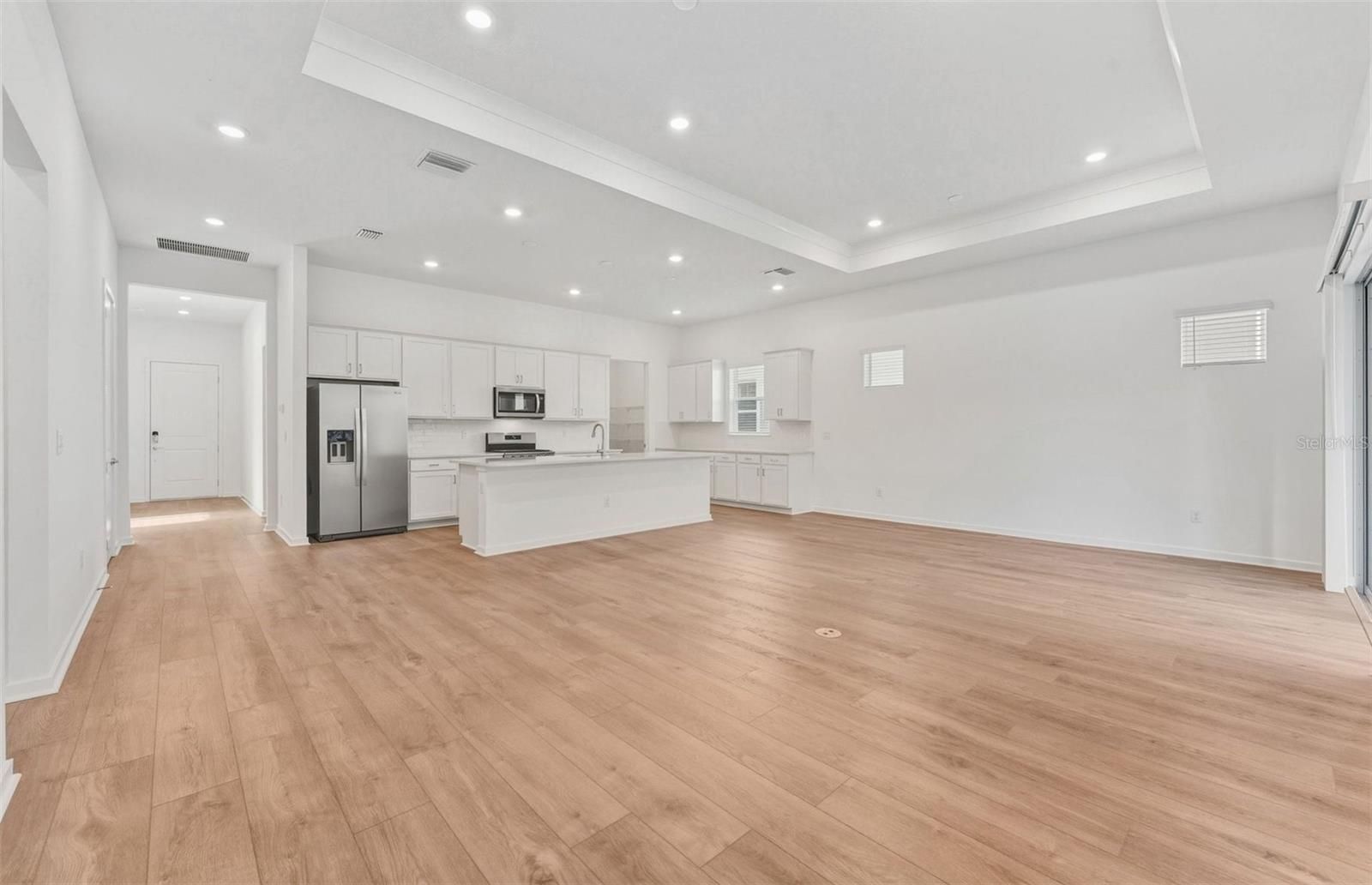 - Eat-in Kitchen, In-Wall Pest Control, Living/Dining Room, Open Floorplan, Main Level Primary, Smart Home, Solid Surface Counters, Thermostat, Tray Ceiling(s), Walk-In Closet(s)