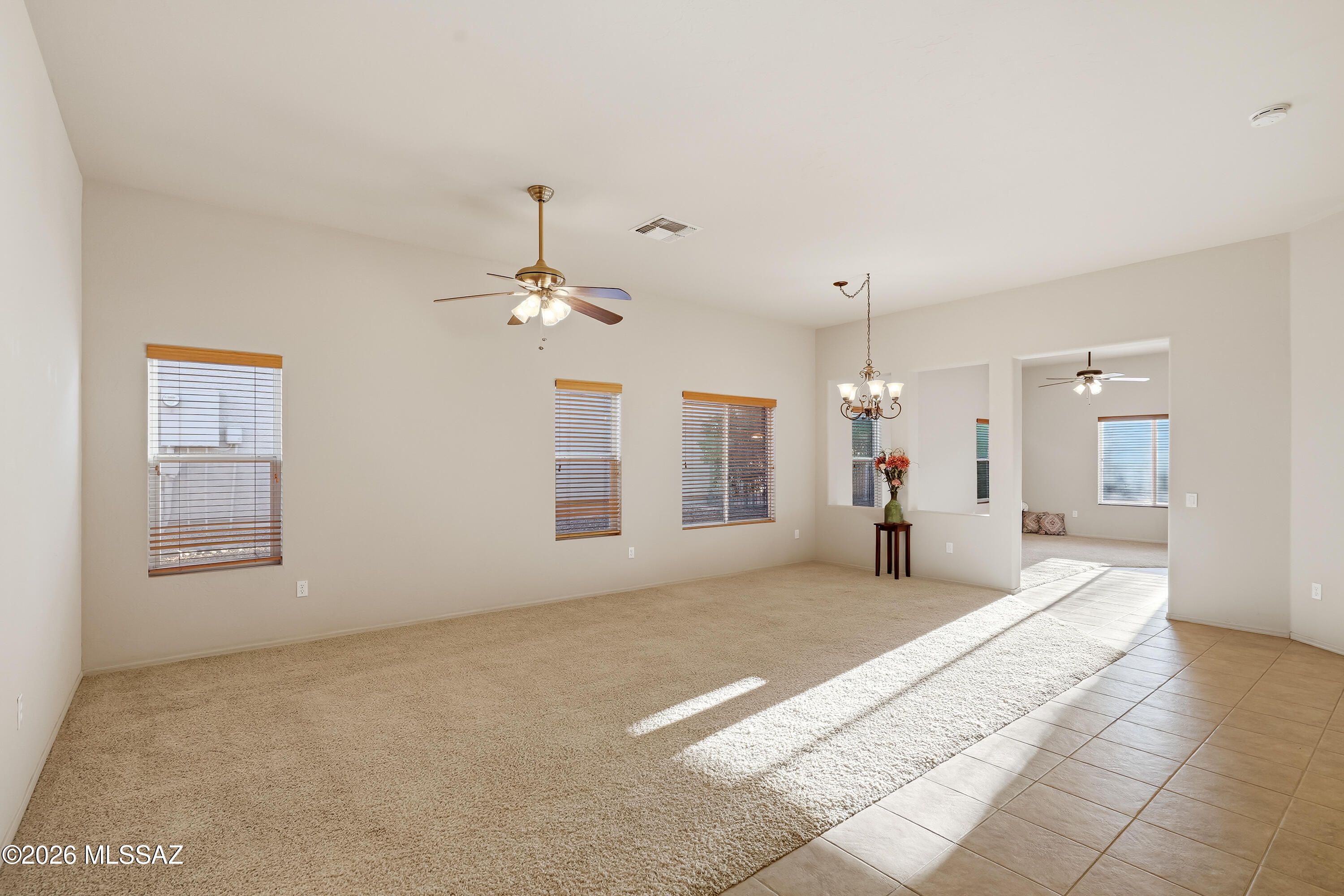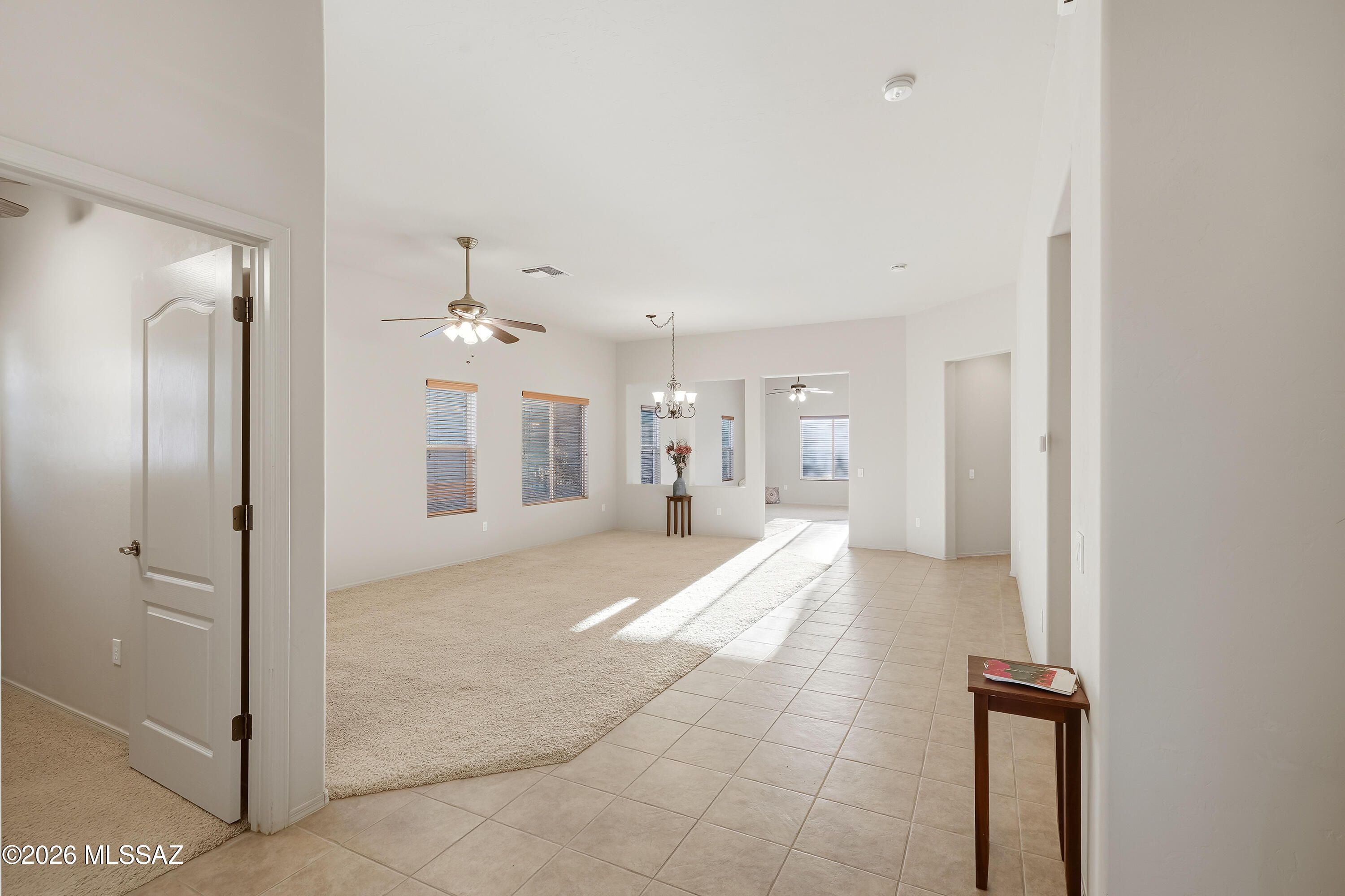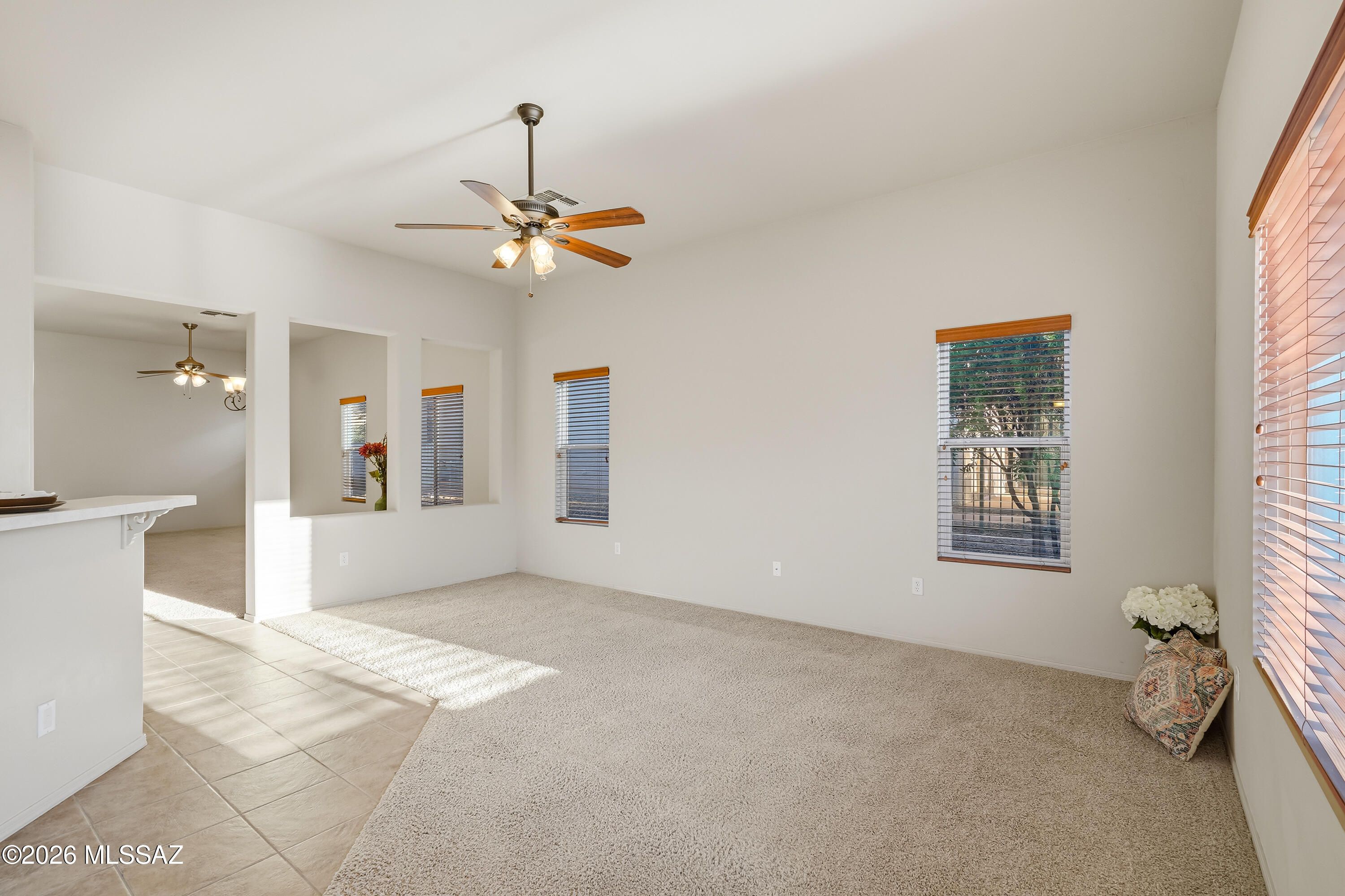 Highlands at Dove Mountain 55+ living! This desirable Extended Aurora 1,658 SF floor plan welcomes you with a charming entry and a thoughtfully designed layout. The eat-in kitchen features an center island with breakfast bar, ample cabinetry, and a bright breakfast nook with bay window, opening seamlessly to a spacious family room. An additional great room provides flexible living and dining space ideal for entertaining or relaxing.The neutral interior palette is complemented by tile flooring in all the right places. Two generously sized bedrooms include a well-appointed primary suite with a full bath and dual walk-in closets. This home features a bonus room, perfect for a home office or workout room.Come see all that The Highlands of Dove Mountain has to offer!