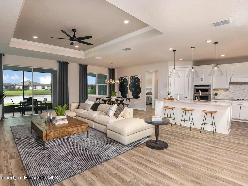 Enjoy all the benefits of a new construction home and experience a new level of retirement living at our newest Del Webb community, Del Webb River Reserve, with a free Golf Cart included. This brand-new active adult community represents everything that your next chapter in life should be about: Finding a place to belong and living life the way you want. Envision a thoughtfully crafted, resort-style residence nestled in nature with expansive amenities and vibrant gathering areas that will foster lifelong connections. This gated, active adult community is located 30 minutes north of Downtown Tampa. Featuring the popular Mystique floor plan with an open-concept home design, this home has all the upgraded finishes you've been looking for. The gourmet kitchen showcases a center island with single bowl stainless steel sink, 3cm quartz countertops with 3''x6'' tiled backsplash, white cabinets, a spacious pantry, and KitchenAid stainless steel appliances, including range, microwave, and dishwasher. The bathrooms have matching white cabinets and quartz countertops, dual sinks in the Owner's bath and walk-in shower. There is luxury vinyl plank flooring in the main living areas, 22''x22'' tile flooring in the bathrooms and laundry room and stain resistant carpet in the bedrooms. This home makes great use of space with an extended gathering room, an enclosed versatile flex room, a convenient laundry room with built-in cabinets, covered lanai, and a 2-car garage. Additional upgrades and features include floor outlet, glass insert at front door, LED down lights in the gathering room, upgraded lighting and hardware, and a Smart Home technology package with a video doorbell. Enjoy peace of mind with Pulte's transferable, 10-year Limited Structural Warranty that covers materials and workmanship in the 1st year, workability of plumbing, electrical, HVAC, and other mechanical systems through the 2nd year, various types of water infiltration and internal leaks through the 5th year, and the structural integrity of the home through the 10th year. Plus, we're currently offering limited-time incentives and below-market rates!