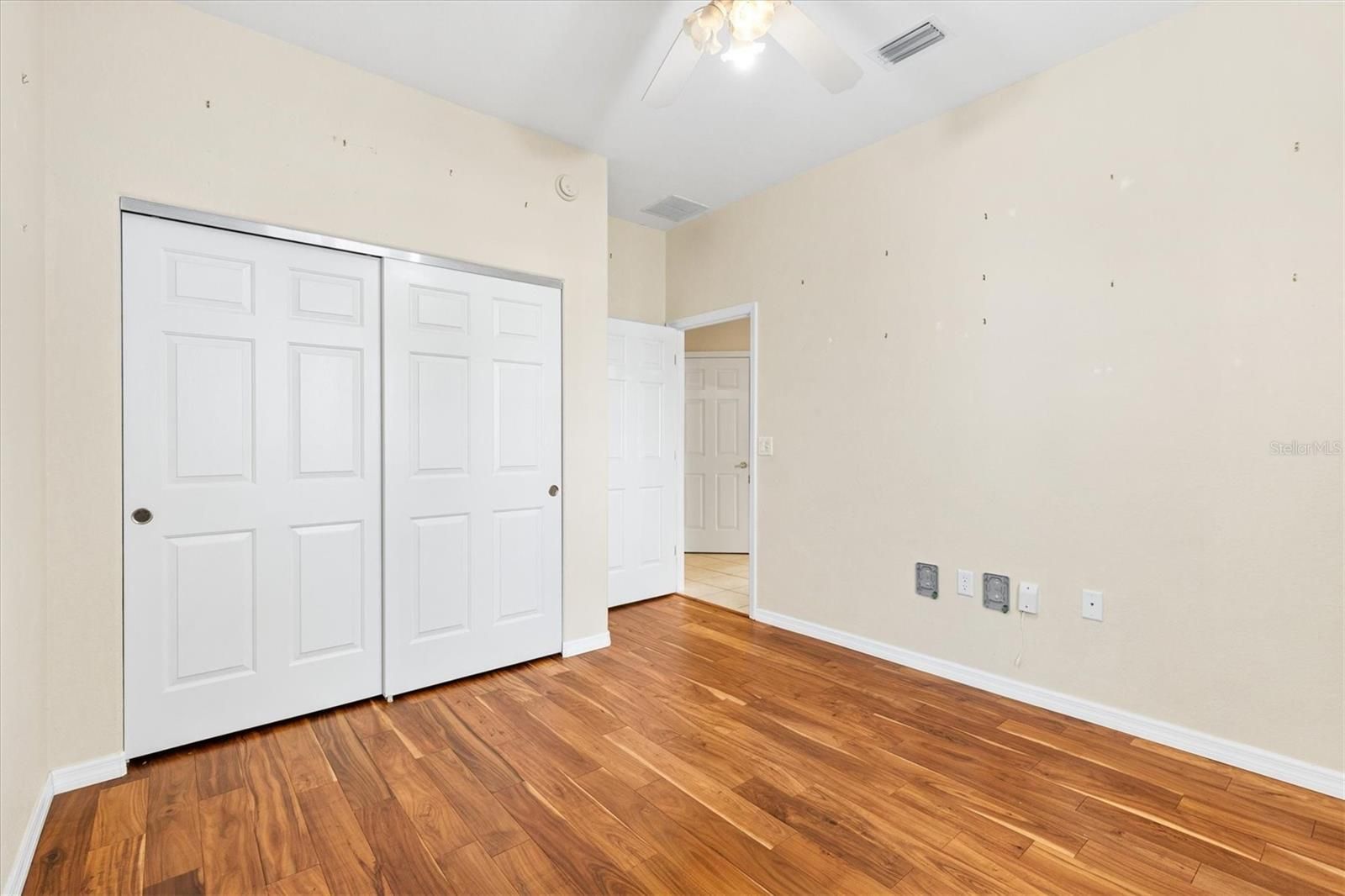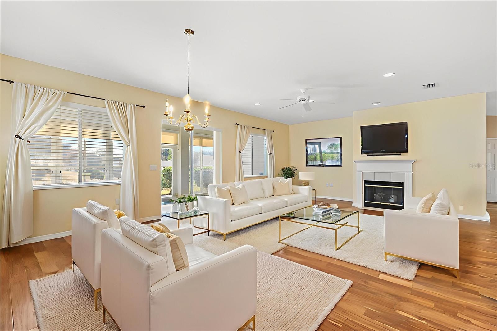 3-bedroom, 2-bath home in Del Webb spruce Creek Counrty Club’s ’s desirable Tamarron II. Enjoy peaceful living with no homes behind and easy-care, low-maintenance landscaping. Step inside to an inviting open floor plan highlighted by hardwood floors and ceiling fans with light kits throughout. The eat-in kitchen is both stylish and functional, featuring stainless steel appliances, stone countertops, a breakfast bar, and an island with extra storage. You’ll love the abundance of cabinetry, including floor-to-ceiling storage plus a pantry closet. The large master bedroom offers a serene retreat with a walk-in closet and a spacious ensuite bath complete with dual sinks, a water closet, and a walk-in shower. Two comfortable guest bedrooms share a well-appointed bath with a shower/tub combo. Enjoy indoor–outdoor living with sliding doors from the living room leading to the enclosed lanai, perfect for morning coffee or evening relaxation. Additional conveniences include an interior laundry room, Ring Doorbell, and a 2-car plus golf cart garage. Del Webb Spruce Creek Golf & Country Club Gated Community has over 70 clubs, (4) 9-hole Golf Courses, 3 pools, An Indoor Pool, Clubhouse, Fitness Center, Bocce Ball, Shuffleboard, Pickleball & Tennis Courts, Sand Volleyball, Water Volleyball, Lake Vista Gazebo, Pavilions, Walking Paths & much more! You will also find Restaurants, Dining Entertainment, Liberty Grille in the Del Webb Community. Only a short drive away from all the activity in The Villages. Easy access to restaurants, shopping and doctors. Schedule your appointment to see this home and start living your Retirement Dream!