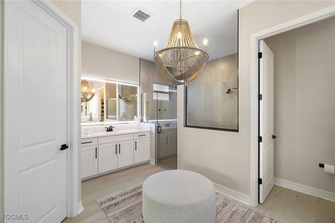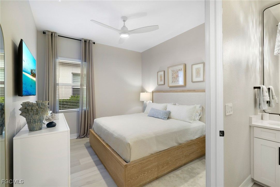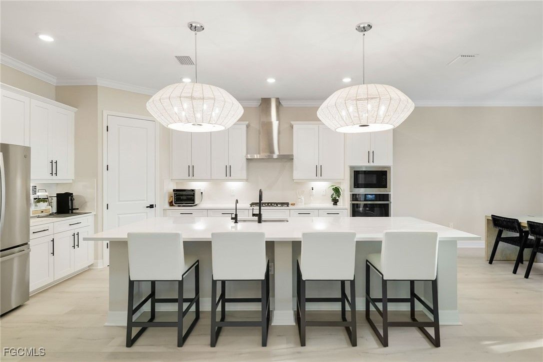 Immerse yourself in the captivating sunsets of Southwest Florida over your private pool and spa, private dock, and private 225-acre boatable lake here at 13670 Blue Bay Cir! Located in the five star resort community of WildBlue, this best-selling Summerville model has been maintained impeccably, upgraded throughout, and is being offered fully furnished and decorated. The massive great room offers a seamless blend between the oversized gourmet kitchen with a 12-foot island, casual dining area, and spacious living room, all bathed in natural light with sweeping western views over the lake. Your master suite provides double windows overlooking the lake, sliding glass doors to the covered lanai, power window treatments, his and hers walk-in closets, and a luxurious bathroom with split vanities, a walk-in shower, separate water closet, and a seating area. Notable features include luxury vinyl plank flooring throughout, Calcatta Gold quartz countertops, built-in kitchen with a natural gas cooktop, upgraded bathrooms with floor-to-ceiling tile and frameless glass shower enclosures, whole-home WiFi and automation, crown molding, designer light fixtures, and more. Outside, upgrades include a heated pool and spa, upgraded landscaping, extended travertine pool deck, a custom remote-controlled pergola with lighting, sun screens, fan, and retractable roof, an outdoor kitchen, and a custom dock with power, water, kayak storage, and a jet ski float. The three car garage is insulated, air conditioned, and includes an electric vehicle charger, built-in overhead storage, and a pull-down attic ladder. Enjoy peace of mind from storms with impact windows and doors, pad and hookups ready for a whole-home generator, and the lowest risk flood zone in Lee County. WildBlue's amenity peninsula provides panoramic views of WildBlue Lake and features a resort-style pool, separate lap pool, sandy lakeside beach, fitness center with studios, locker rooms with saunas, spa, a full-service restaurant and bar, poolside bar and grill, tennis and pickleball courts, a pro shop, basketball, boat ramps to over 800 acres of freshwater lakes, boat slip rentals, kayak storage, and more. Don't miss this unique opportunity in WildBlue, schedule your private showing today!
