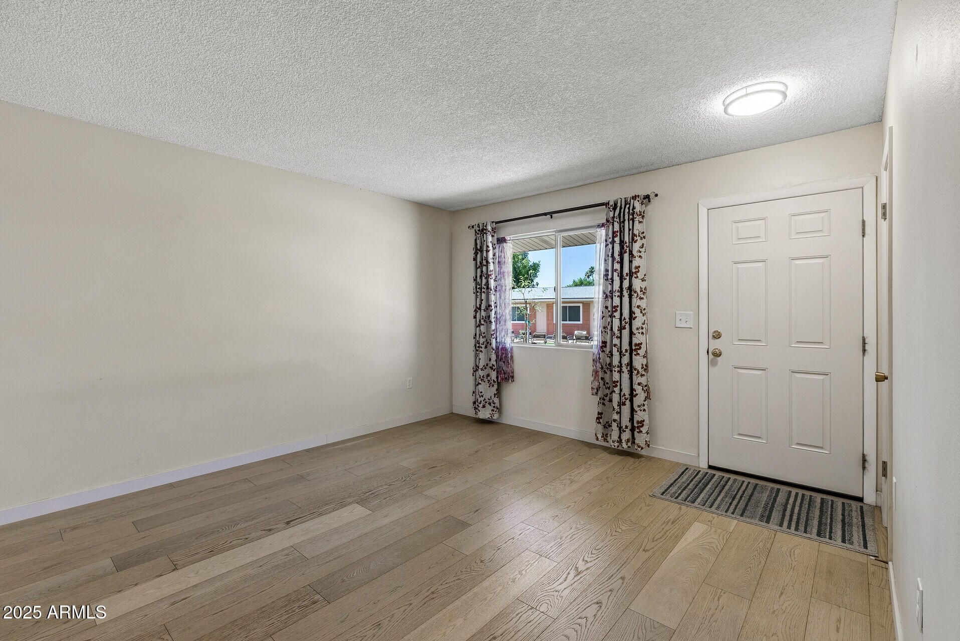 Updated and move-in ready! This 2 bed, 2 bath patio home in Sun City checks all the boxes—NEW A/C (2022), roof (2022), water heater (2023), and updated bathrooms (2023-2024). You'll love the white oak hardwood floors (no carpet!) and tile in all the right places—kitchen, bathrooms, and the sunny Arizona room. Windows replaced in 2017, new doors in 2020, and a newer stylish bottom-drawer refrigerator/freezer is the cherry on top. Located in the heart of Sun City—an active adult community with endless amenities, rec centers, golf, and more fun than your calendar can handle.