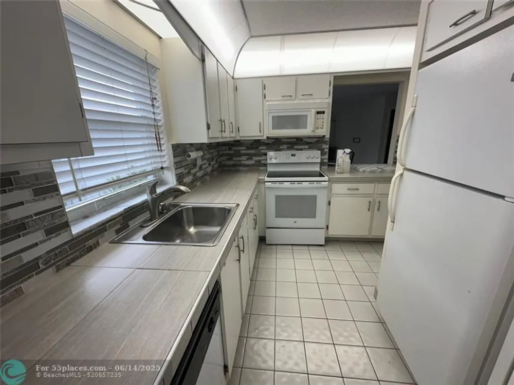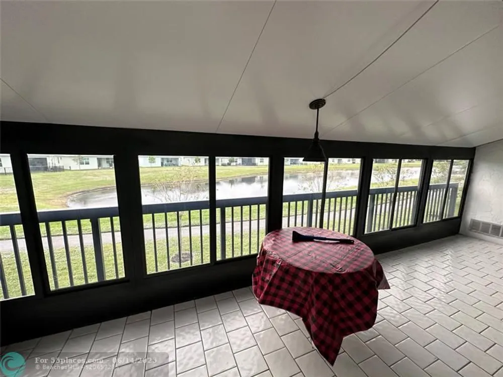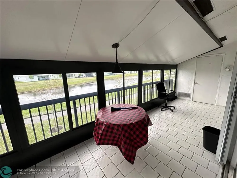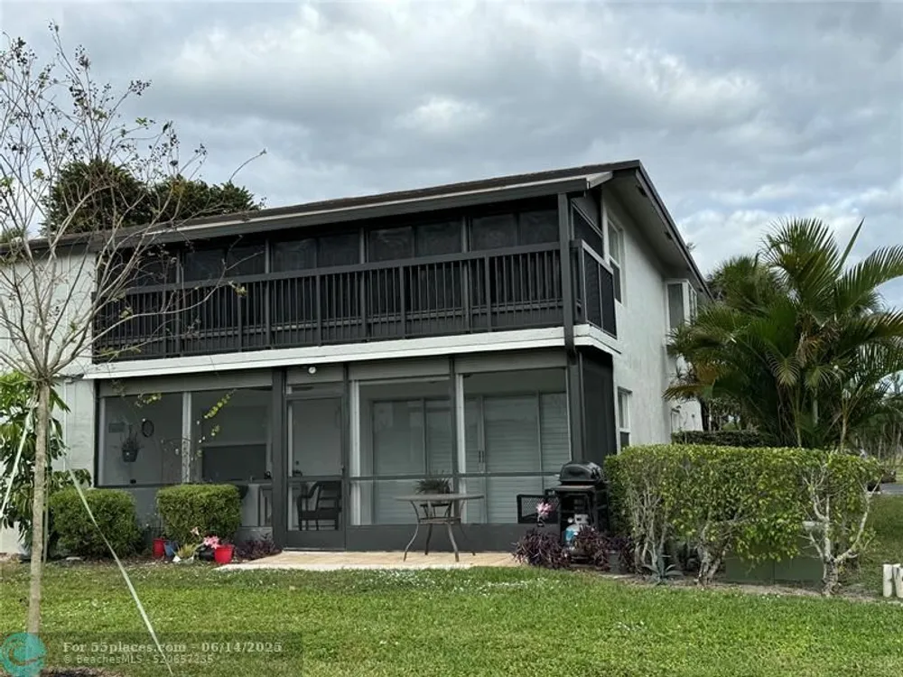 Embrace serene lake views and a relaxed lifestyle in beautiful Palm Greens stunning oversized 2-bedroom, 2-bathroom corner condo with high impact windows! The spacious Florida Room, fully enclosed and screened, invites you to unwind and soak in the tranquil surroundings. This home features a thoughtful split floor plan that maximizes privacy, with a generous master suite on one side and a cozy guest bedroom on the other--ideal for hosting family and friends. Enjoy the convenience of an in-unit washer and dryer & safety and peace of mind of the hurricane impact windows. Huge walk in closet. Clubhouse with lots of activities all year long. Tennis, Billiard room, card room fitness center.. Pickele ball, 2 pools, hot tub. Maintenance includes water and basic cable with HBO