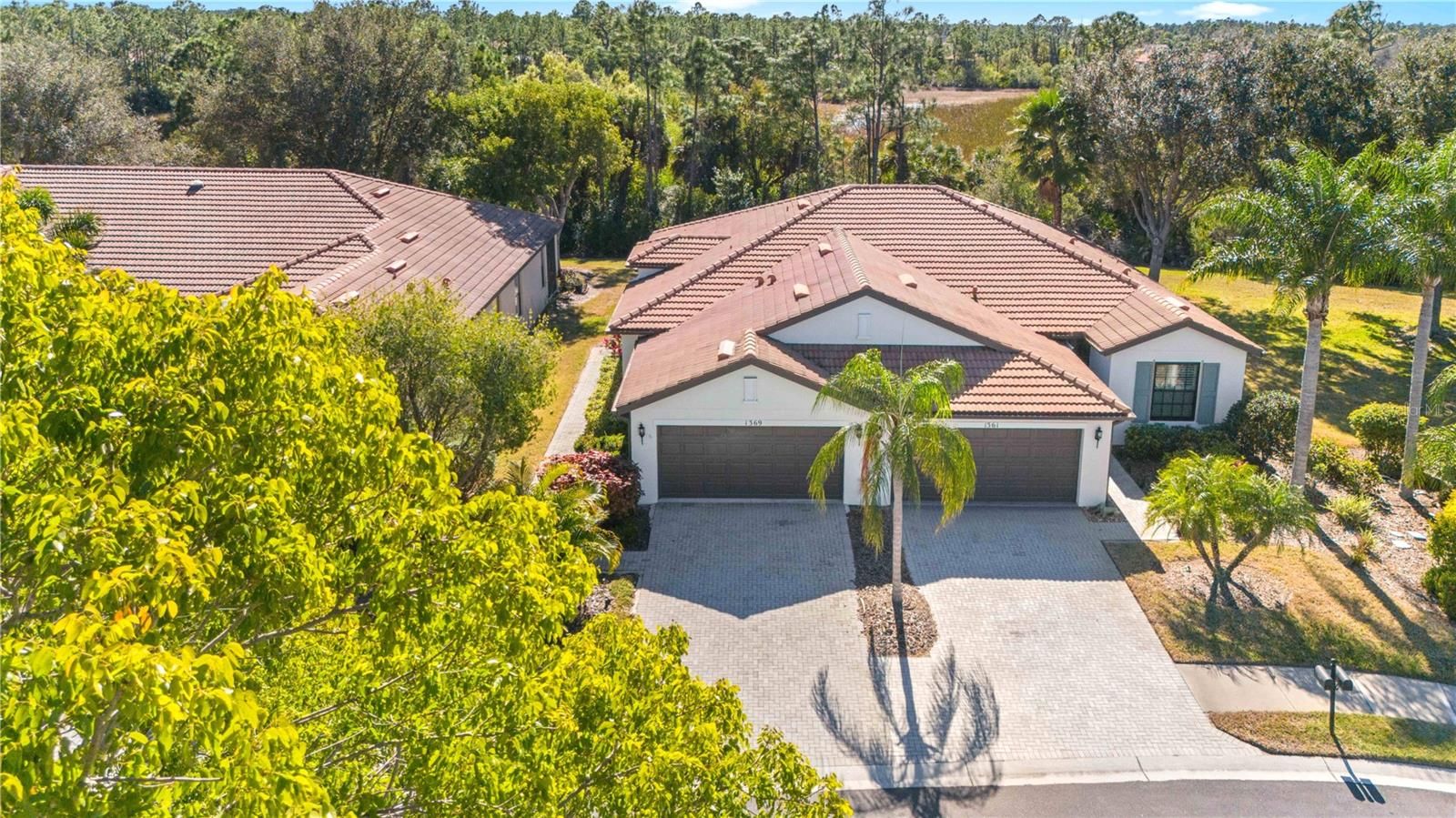 Experience elevated living in the sought-after 55+ Del Webb community of Cypress Falls at The Woodlands. This impeccably maintained 2-bedroom, 2-bath villa rests on a peaceful cul-de-sac & offers a bright, airy layout that blends comfort w/ understated elegance. Surrounded by a serene setting, the home immediately welcomes you w/ a sense of calm. Lush Florida landscaping—featuring manicured lawns, neatly shaped shrubs & swaying palm trees—enhancing the property’s curb appeal. A screened front entry introduces the warm, inviting feel inside, where a stunning etched leaded-glass door opens to a generous open-concept design highlighted by soaring ceilings & diagonal-set ceramic tile throughout the main living areas. The neutral colors create a calm & relaxed atmosphere that feels like a permanent vacation. W/ ample counter space, the kitchen offers an ideal environment for a creative chef to craft their culinary masterpieces. The sleek stainless-steel appliances complement the elegant 42" wood cabinets, which are finished w/ crown molding. The kitchen also features recessed lighting, under-cabinet illumination, stylish backsplash, closet-style pantry, Corian countertops & a functional breakfast bar that provides seamless connectivity between the kitchen, dining, and living areas, fostering an inviting environment for social or family gatherings. The dining room has a contemporary hanging chandelier, custom-painted accent wall & two expansive windows that provide an abundance of natural sunlight. With its generous area, the living room is perfect for gatherings of friends & family. The bedrooms are positioned on opposite sides of the home where both you & your guests can enjoy quiet, undisturbed spaces! In the master suite, you will find chair railings, large walk-in closet, recessed lighting, ceiling fan & 2 large windows offering serene views of the private preserve—a tranquil scene to greet you every morning. The en-suite bath features dual sinks, upgraded faucet package, granite countertops, wood cabinetry (which includes pullout drawers), private toilet area & a glass enclosure walk- in shower w/tiled walls, perfect for a spa-like experience! The guest bedroom is generously sized w/ a ceiling fan & a built-in closet. The nearby guest bath doesn’t disappoint w/ cultured marble countertops, wood cabinets & a shower/tub combo w/ upgraded tiled walls. Other upgrades include crown molding, upgraded lighting, speaker system, alarm system & a humidistat. Open the triple sliding glass doors & enjoy peace & privacy w/ no rear neighbors, allowing you to fully appreciate the “3 season” year-round back lanai w/ acrylic windows. All the other windows have been replaced w/ high impact dual pane tinted windows (per previous seller) & the lanai has accordion shutters. Lawn care & irrigation are included in your HOA, so your days of mowing, edging & weeding are over! Resort-Style Amenities & Active Lifestyle Cypress Falls at Del Webb offers a premier 55+ lifestyle, featuring: Clubhouse & Community Center, Two Heated Pools – A Lagoon-Style Pool & Resistance Pool, Pickleball & Tennis Courts, Bocce Ball, Horseshoes, Billiards, Library, Internet Café, Fitness & Wellness Programs: Yoga, Tai Chi, Water Aerobics, Dance, Social Clubs & Activities: Bridge, Poker, Euchre, Mahjong, Bingo, Arts & Crafts & Professional Entertainment. Here, your days can be as energetic or as relaxed as you desire—all w/in the secure & welcoming embrace of Cypress Falls at Del Webb