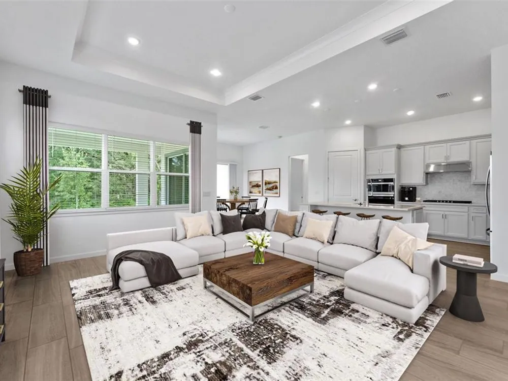 One or more photo(s) has been virtually staged. Move in Ready Available NOW!! Enjoy all the benefits of a new construction home and experience a new level of retirement living at our newest Del Webb community, Del Webb River Reserve, with a free Golf Cart included. This brand-new active adult community represents everything that your next chapter in life should be about: Finding a place to belong and living life the way you want. Envision a thoughtfully crafted, resort-style residence nestled in nature with expansive amenities and vibrant gathering areas that will foster lifelong connections. This gated, active adult community is located 30 minutes north of Downtown Tampa. Featuring the popular Mystique floor plan with an open-concept home design, this home has all the upgraded finishes you've been looking for. The gourmet kitchen showcases a center island, 3cm quartz countertops with tiled backsplash, stylish cabinets, a spacious pantry, and Whirlpool stainless steel appliances, including a built-in oven and microwave, stovetop with range hood, refrigerator, and dishwasher. The Owner’s bath features a walk-in shower, linen closet, private commode, and dual sinks. There is 9”x36” tile flooring in the main living areas, laundry room and baths, and stain-resistant carpet in the bedrooms. This home makes great use of space, with a versatile flex, a convenient laundry room with built in cabinets and Whirlpool washer and dryer, an extended covered lanai, and a 2-car garage. Additional upgrades and features include LED down lighting in the gathering room and lanai, sliding glass door at café, tray ceiling in the gathering room, 2” faux wood blinds throughout, and a Smart Home technology package with a video doorbell. Enjoy peace of mind with Pulte’s transferable, 10-year Limited Structural Warranty that covers materials and workmanship in the 1st year, workability of plumbing, electrical, HVAC, and other mechanical systems through the 2nd year, various types of water infiltration and internal leaks through the 5th year, and the structural integrity of the home through the 10th year. Plus, we’re currently offering limited-time incentives and below-market rates!