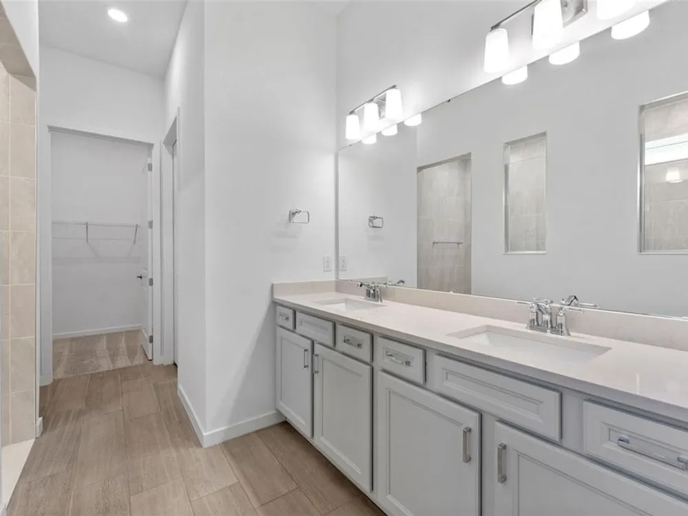 - Built-in Features, Eat-in Kitchen, In-Wall Pest Control, Open Floorplan, Main Level Primary, Smart Home, Solid Surface Counters, Solid-Wood Cabinets, Thermostat, Tray Ceiling(s), Walk-In Closet(s)