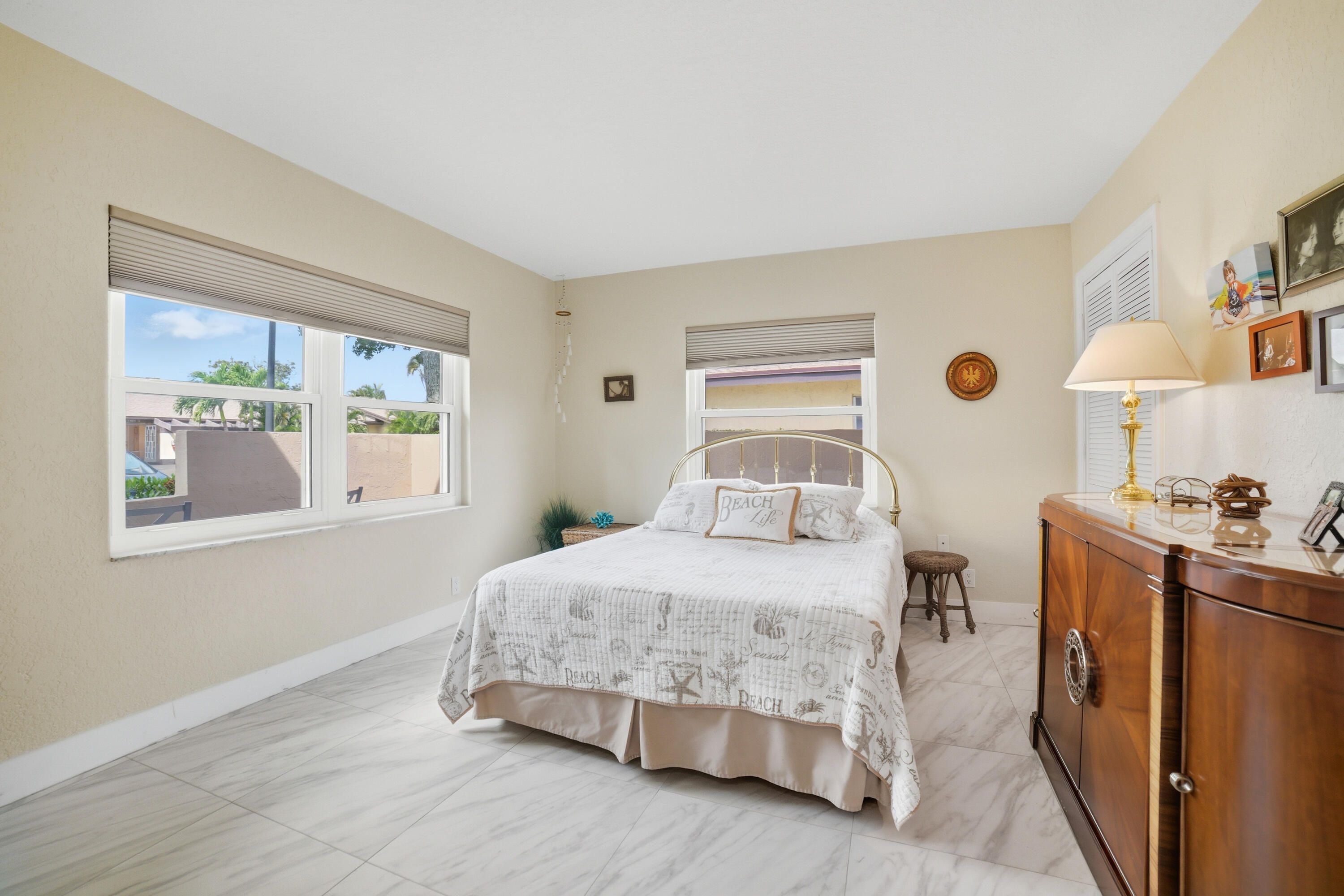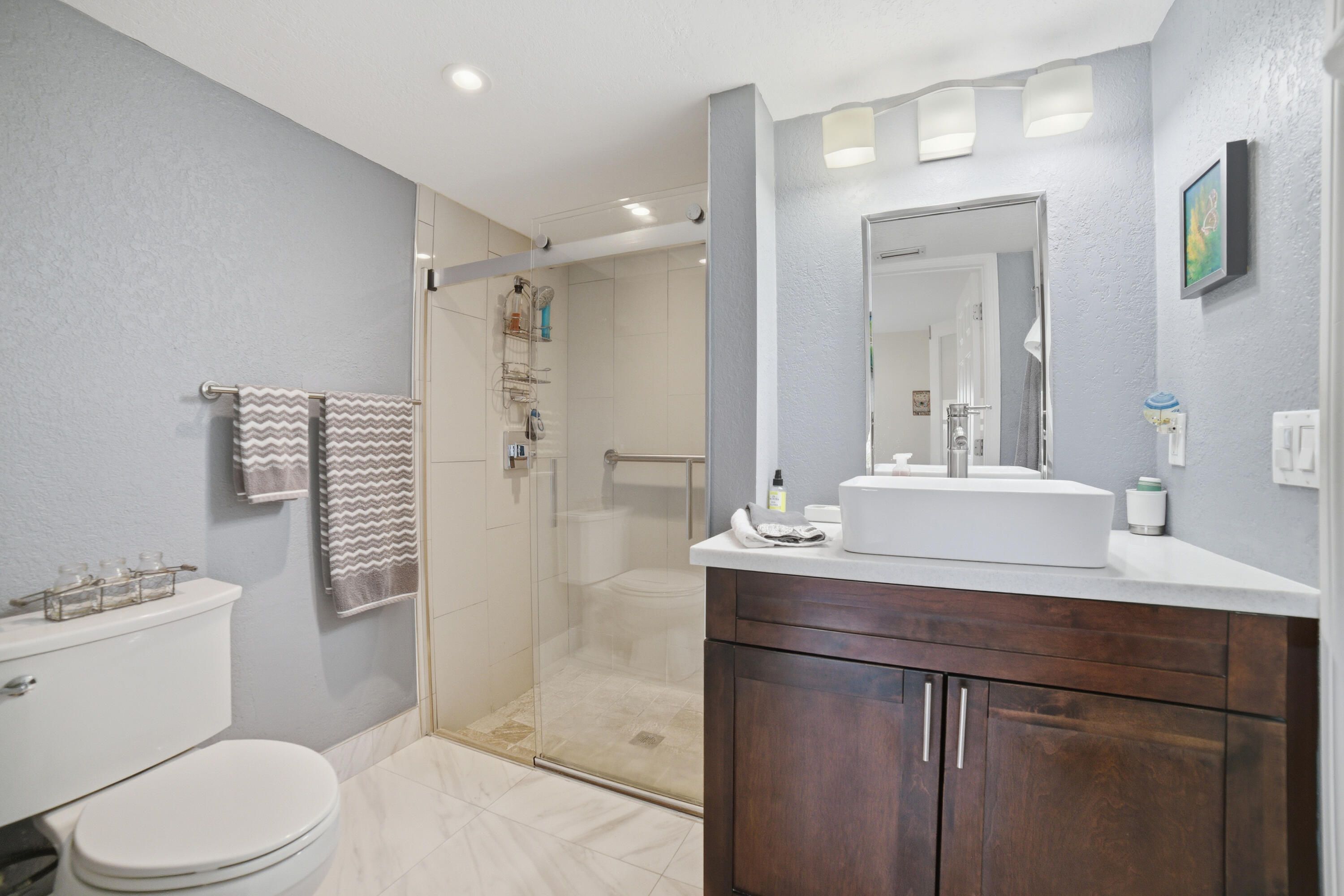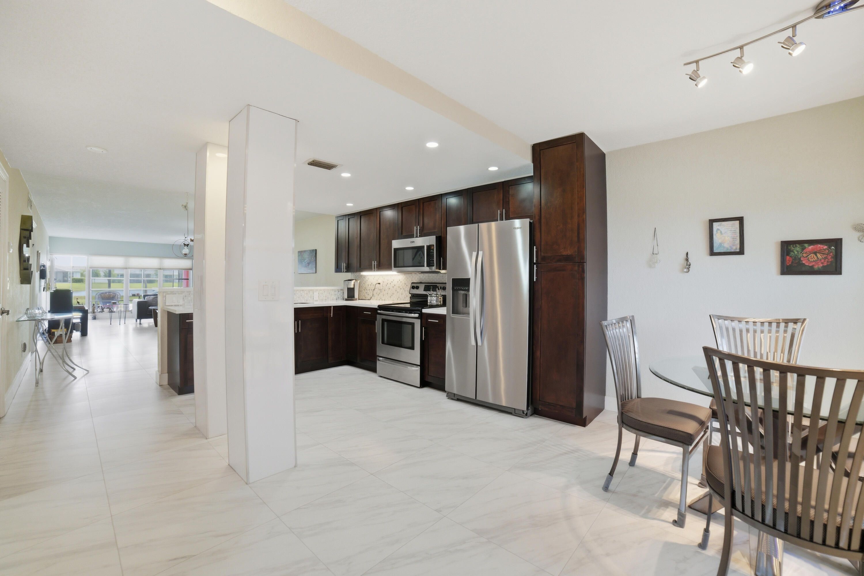 Renovated Corner First Floor condo in the 55+ community of Palm Greens in Delray Beach. Open Eat-in Kitchen has beautiful Countertops, Shaker Style Cabinets & Stainless Steel appliances. Spacious Primary Bedroom has an ensuite bath & walk-in closet. Features include 24'' x 24'' Ceramic Tiles throughout, Impact Windows, Hunter Douglas shades, Kohler Frameless Glass Shower Doors, open Front Patio & an Impact Glass enclosed Florida room overlooking the serene lake. Assigned Parking steps to the front door. The new state-of-the-art clubhouse coming soon has a Resort-Style Pool, Fitness Center, Tennis/Pickleball Courts, Theatre, Library, Billiards, Shuffleboard, Card/Game Rooms & many social activities. Short distance to Downtown Delray, shopping, dining, art galleries, & the beach.