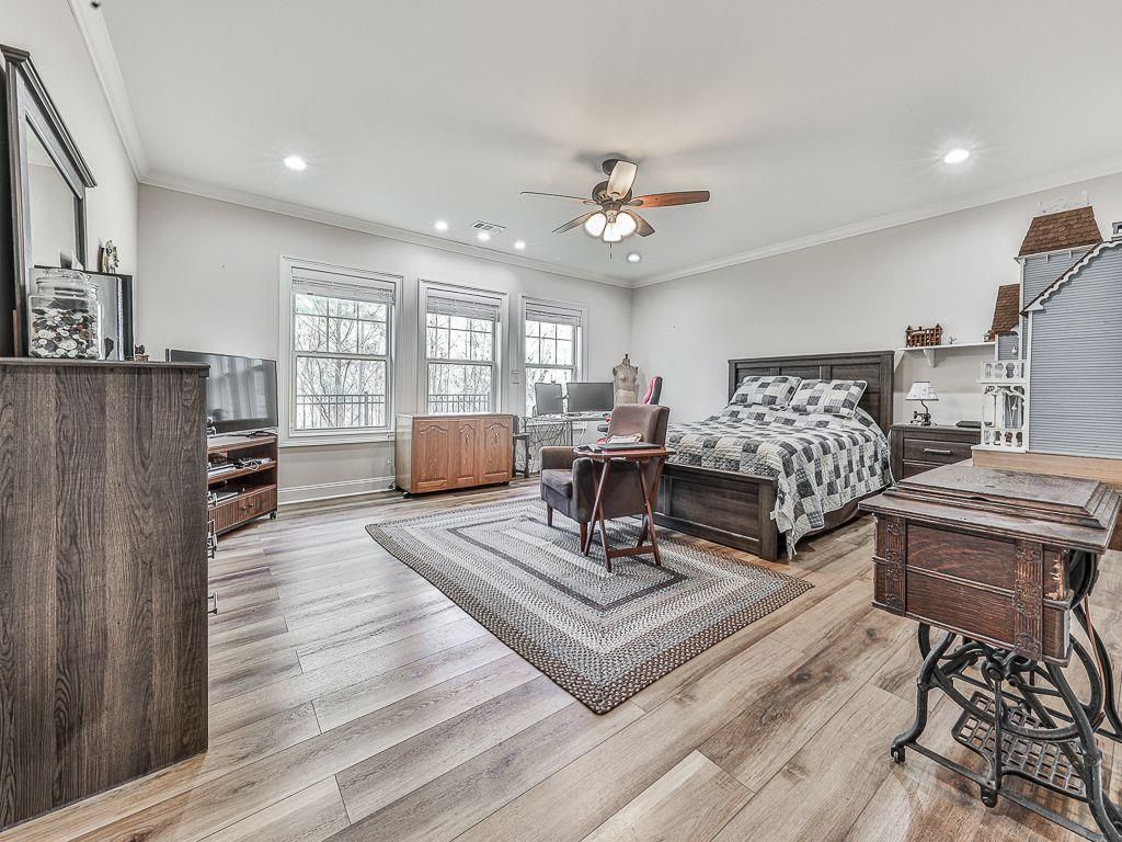 - Crown Molding, Pull Down Attic Stairs, Entrance Foyer, High Speed Internet, Recessed Lighting, Tray Ceiling(s), Walk-In Closet(s), Wet Bar, Insulated Windows, Basement, Home Office