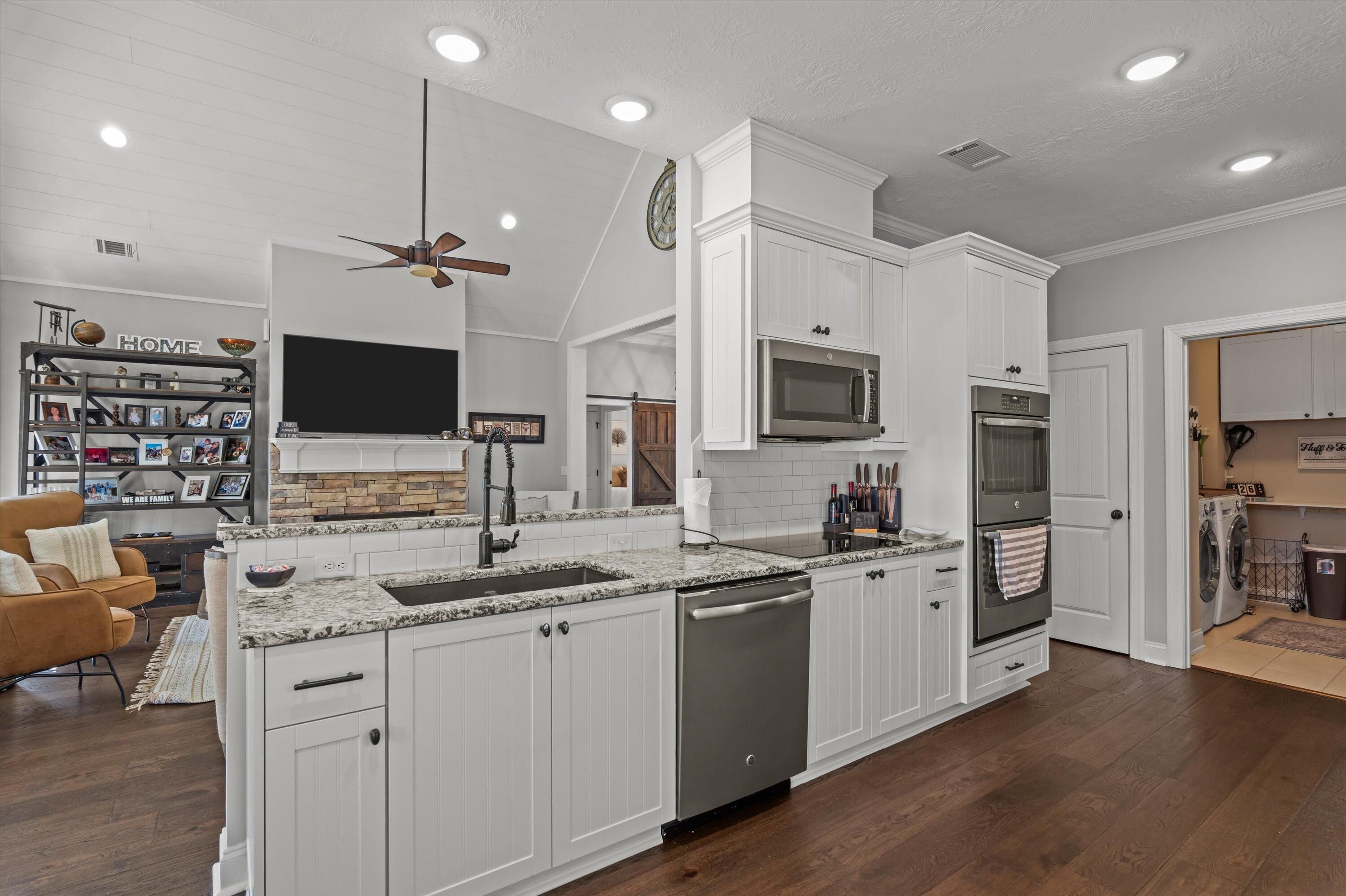 - Blinds, Built-in Features, Cable TV Hookup, Entrance Foyer, Kitchen Island, Pantry, Smoke Detector, Walk-In Closet(s), Washer Hookup, Electric Dryer Hookup, Main Level Primary