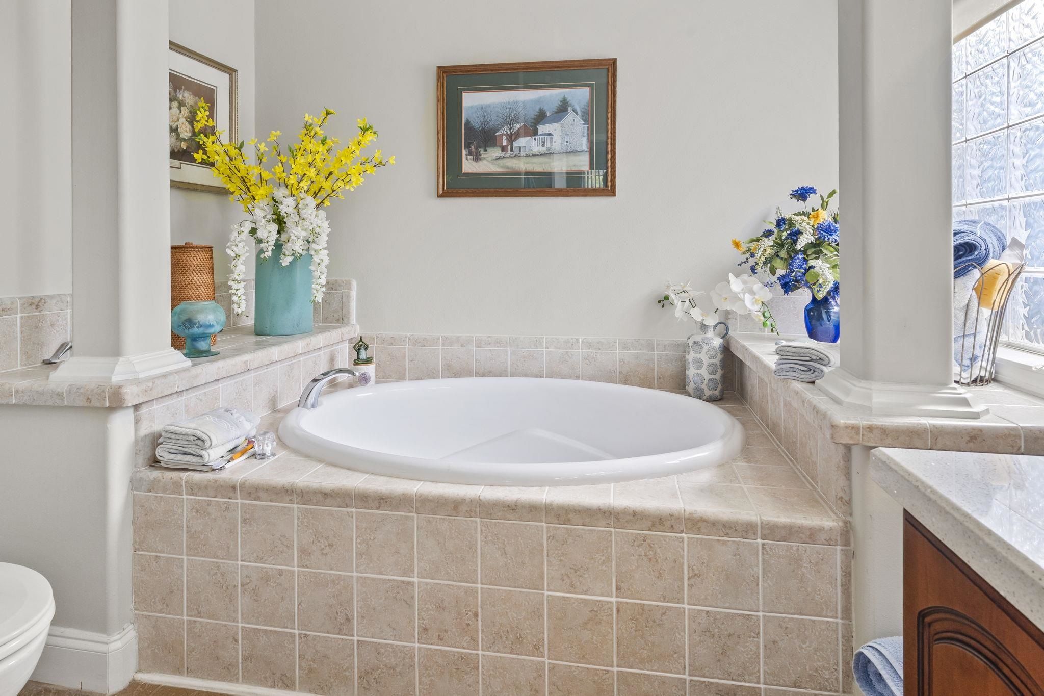 - Bathtub, Ceiling Fan(s), Dual Sinks, Fully Furnished, Main Level Primary, Separate Shower, Vanity, Breakfast Bar, Bedroom on Main Level, Kitchen Island, Stainless Steel Appliances