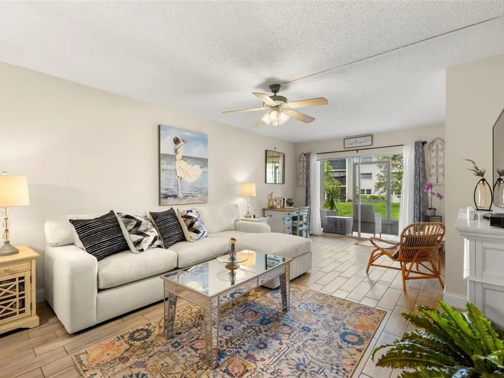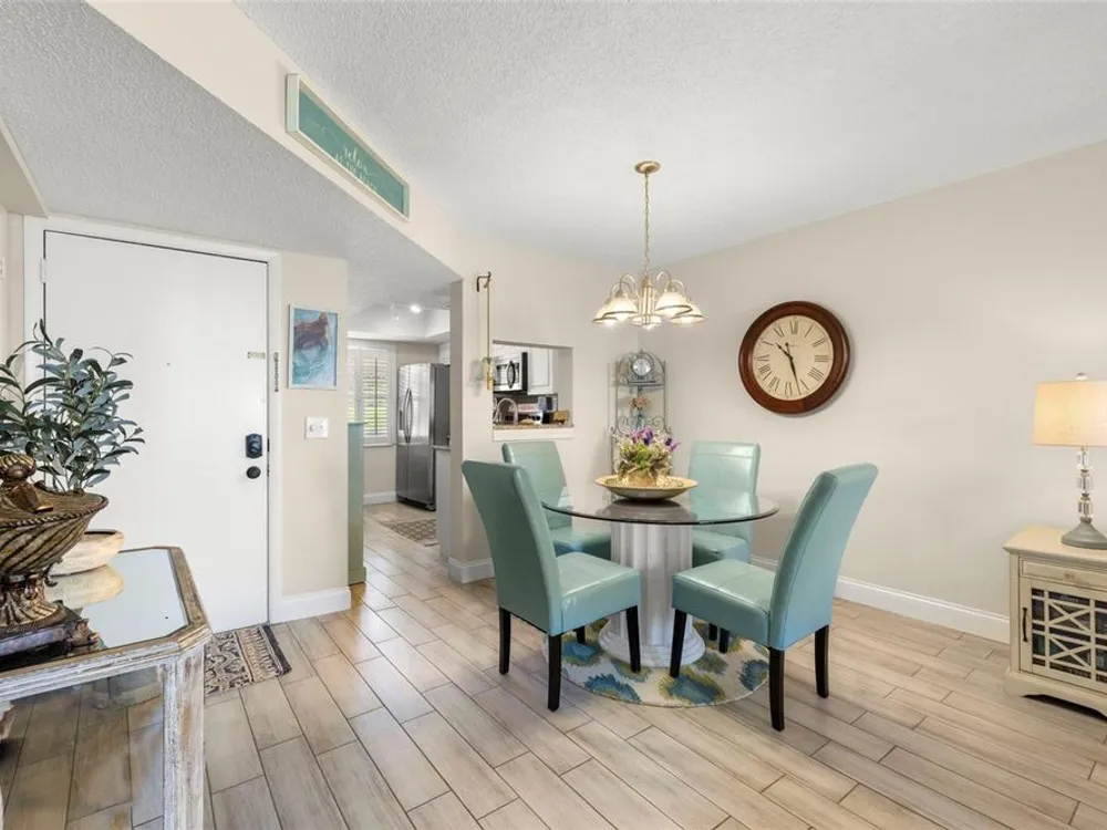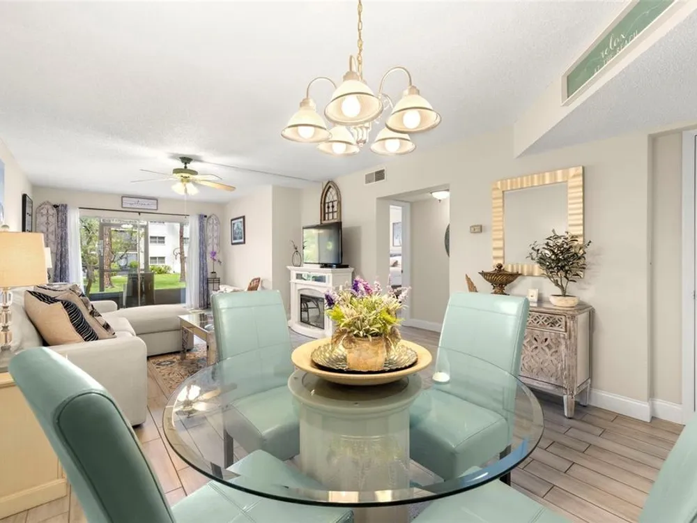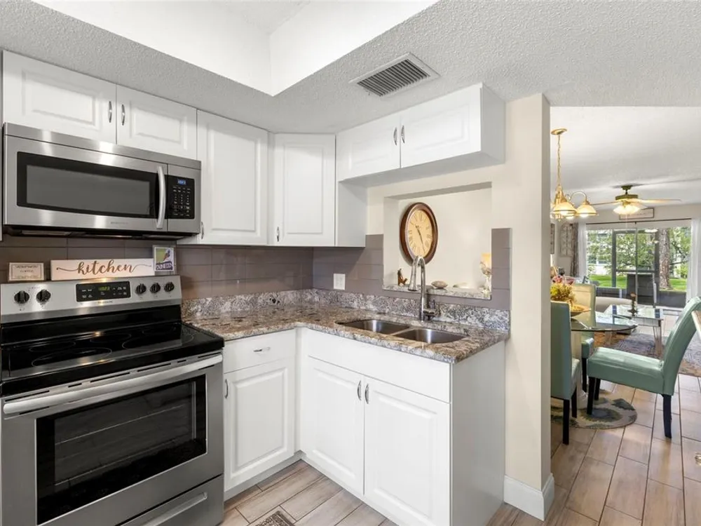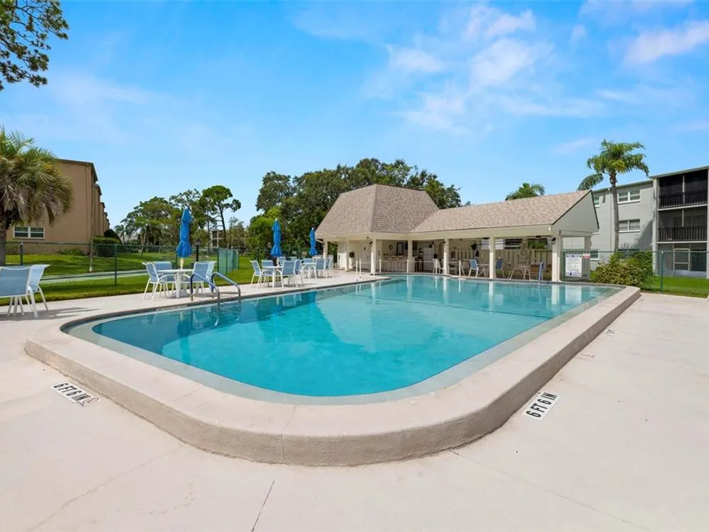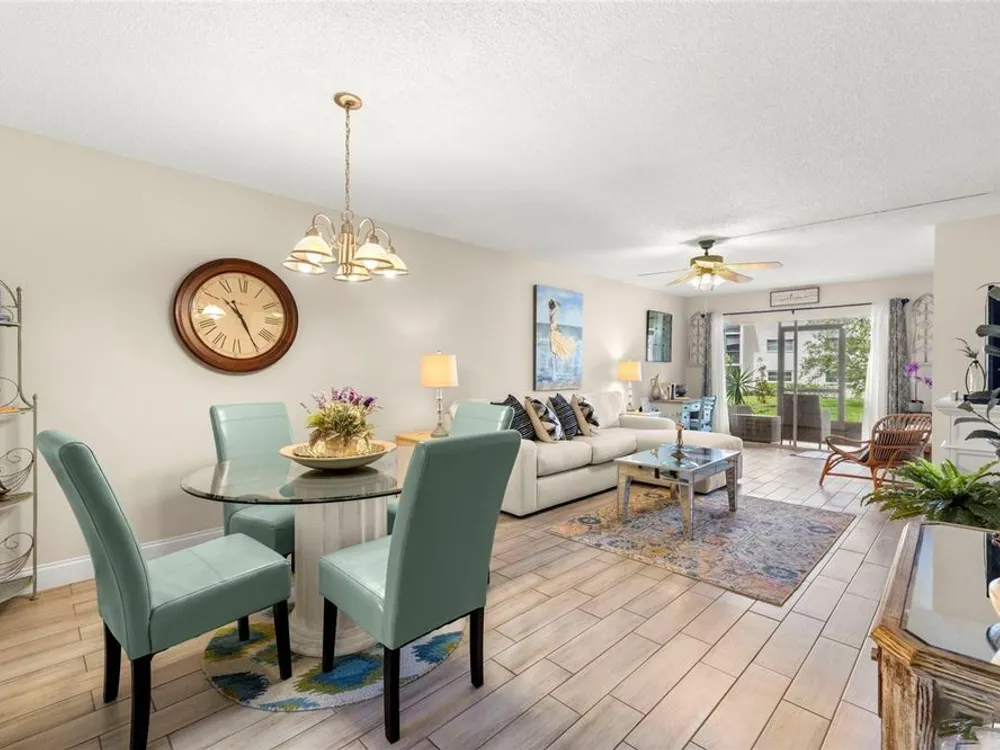 Welcome to easy living in the highly desirable 55+ community of Heather Ridge, located in the heart of Dunedin. This ground-floor condo offers a bright and welcoming retreat with stylish updates all tucked within a non-flood zone (X), meaning no flood insurance is required. As you arrive, enjoy the convenience of a covered parking space just steps from your front door. Inside, an open-concept design welcomes you with ceramic wood-look tile flooring that flows throughout the space. The light and airy kitchen features granite countertops, a double stainless steel undermount sink, and stainless steel appliances replaced in 2019. Plantation shutters add a charming touch, while the pass-through window connects the kitchen seamlessly to the dining and living areas. The spacious bedroom offers two large closets and easy access to an updated bathroom with a walk-in tiled shower and granite-topped vanity. Sliding doors from the living room lead out to a screened-in patio, perfect for enjoying your morning coffee or relaxing with a good book in the evening. Heather Ridge residents enjoy a vibrant, amenity-rich lifestyle with a heated pool, outdoor kitchen, shuffleboard courts, and a covered picnic area—all just a short stroll from your unit. Monthly HOA fees include cable, water, sewer, trash, building insurance, exterior maintenance, and lawn care. Roof replacements are built into the HOA budget for added peace of mind—both the flat roof (2014) and mansard roof (2021) are under 20-year warranties. And the location? Truly unbeatable. Just minutes from historic downtown Dunedin, you'll have access to charming boutiques, nostalgic ice cream shops, award-winning breweries, local restaurants, and a year-round calendar of art festivals, concerts, and parades. Hop on the Pinellas Trail or catch sunset views at Honeymoon and Caladesi Islands. You’re also conveniently close to Clearwater Beach, shopping malls, movie theaters, and both Tampa and St. Pete–Clearwater airports. This move-in-ready condo is more than just a place to live, it’s a lifestyle filled with charm and a connection to everything that makes Dunedin one of Florida’s most treasured coastal towns