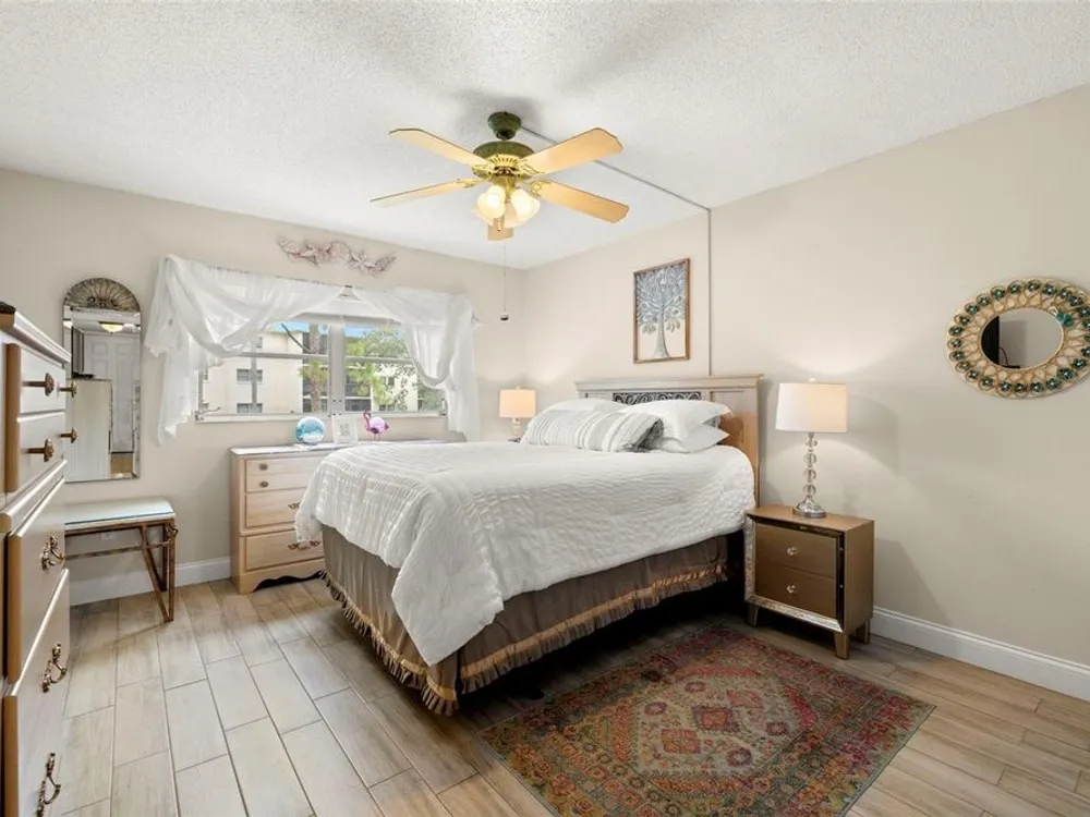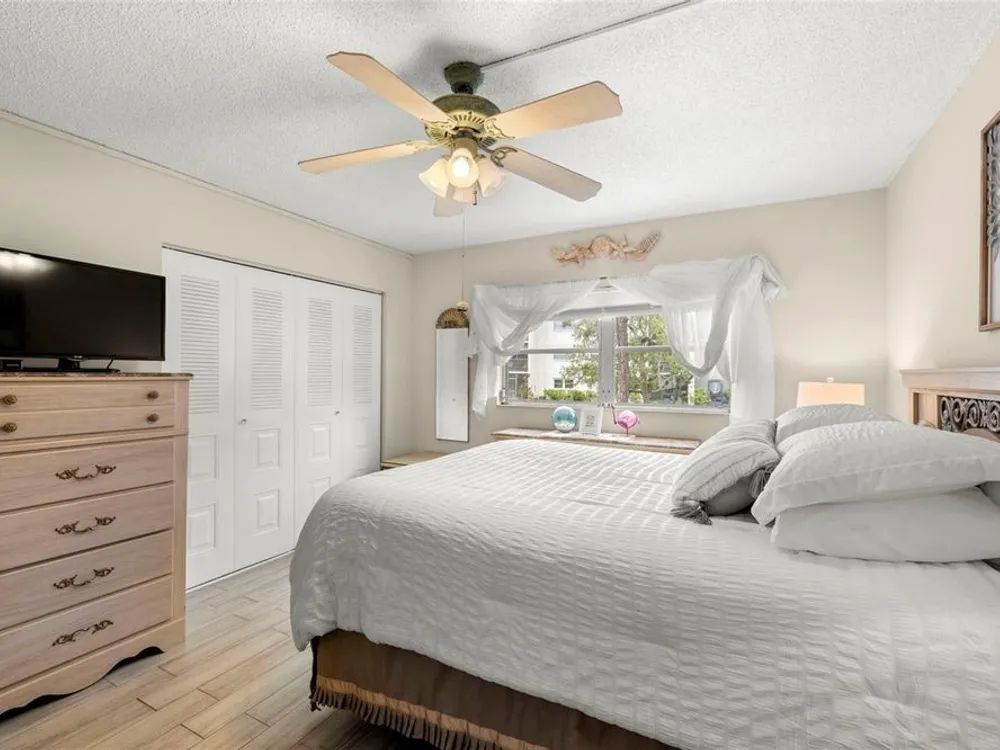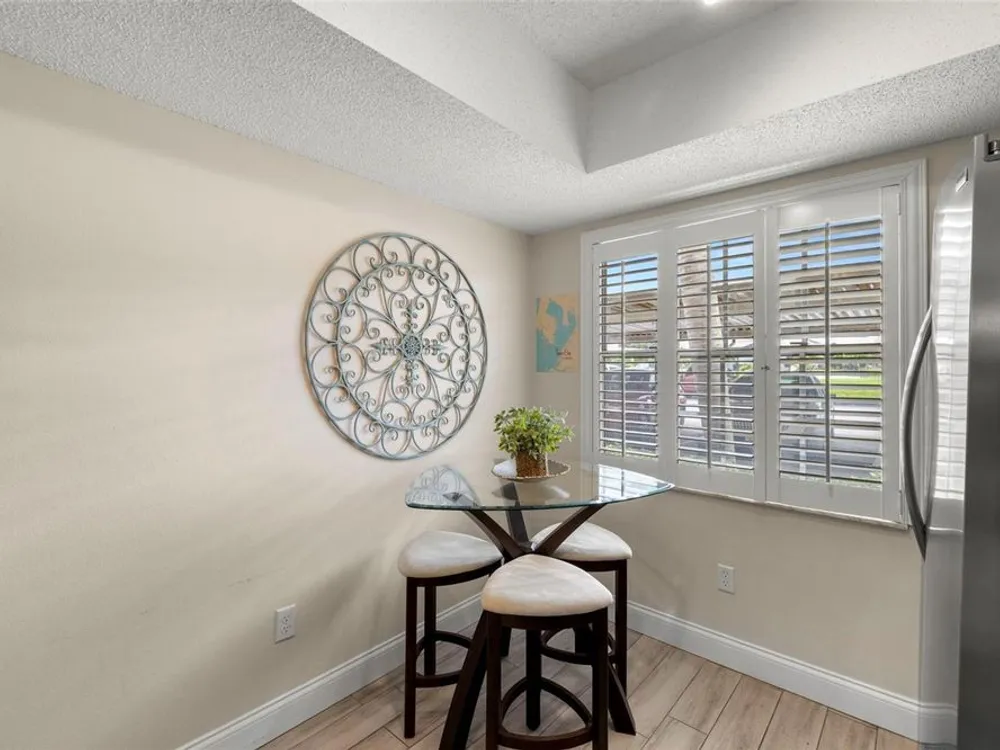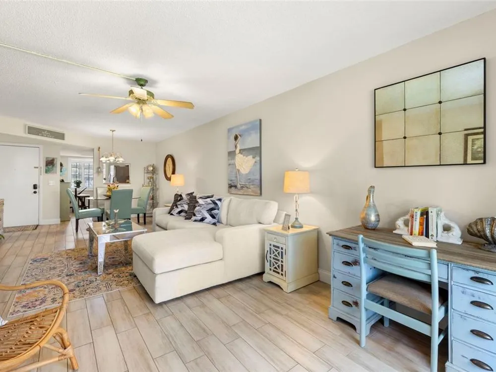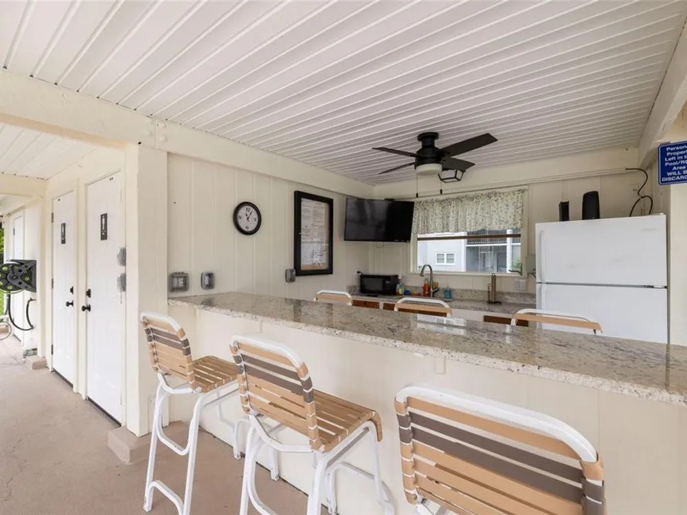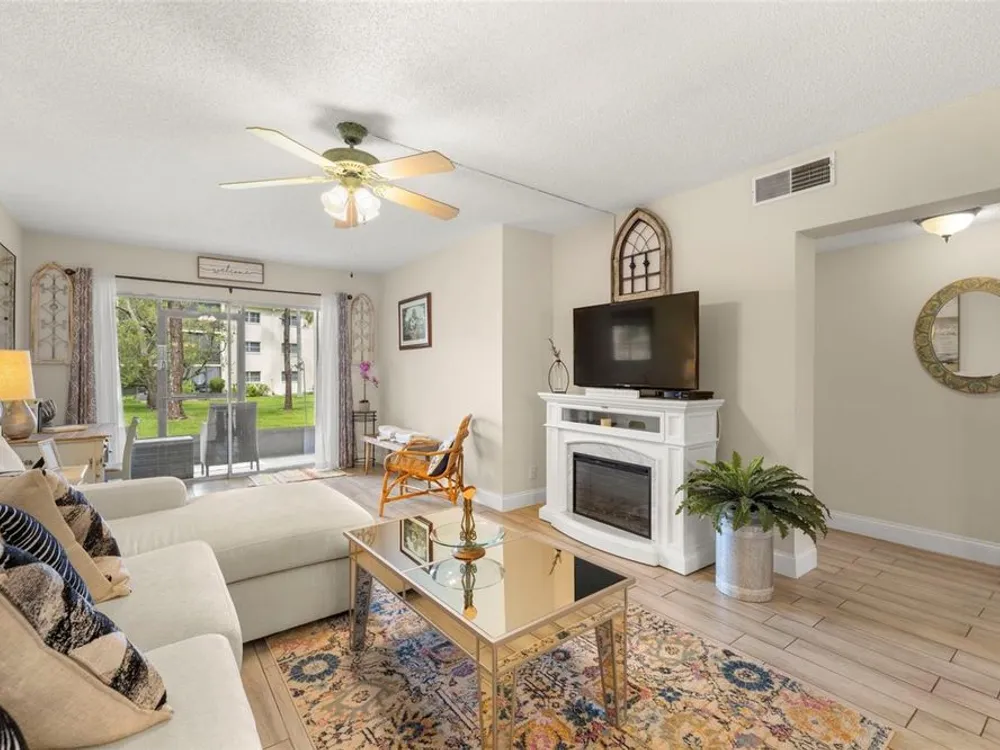 Welcome to easy living in the highly desirable 55+ community of Heather Ridge, located in the heart of Dunedin. This ground-floor condo offers a bright and welcoming retreat with stylish updates all tucked within a non-flood zone (X), meaning no flood insurance is required. As you arrive, enjoy the convenience of a covered parking space just steps from your front door. Inside, an open-concept design welcomes you with ceramic wood-look tile flooring that flows throughout the space. The light and airy kitchen features granite countertops, a double stainless steel undermount sink, and stainless steel appliances replaced in 2019. Plantation shutters add a charming touch, while the pass-through window connects the kitchen seamlessly to the dining and living areas. The spacious bedroom offers two large closets and easy access to an updated bathroom with a walk-in tiled shower and granite-topped vanity. Sliding doors from the living room lead out to a screened-in patio, perfect for enjoying your morning coffee or relaxing with a good book in the evening. Heather Ridge residents enjoy a vibrant, amenity-rich lifestyle with a heated pool, outdoor kitchen, shuffleboard courts, and a covered picnic area—all just a short stroll from your unit. Monthly HOA fees include cable, water, sewer, trash, building insurance, exterior maintenance, and lawn care. Roof replacements are built into the HOA budget for added peace of mind—both the flat roof (2014) and mansard roof (2021) are under 20-year warranties. And the location? Truly unbeatable. Just minutes from historic downtown Dunedin, you'll have access to charming boutiques, nostalgic ice cream shops, award-winning breweries, local restaurants, and a year-round calendar of art festivals, concerts, and parades. Hop on the Pinellas Trail or catch sunset views at Honeymoon and Caladesi Islands. You’re also conveniently close to Clearwater Beach, shopping malls, movie theaters, and both Tampa and St. Pete–Clearwater airports. This move-in-ready condo is more than just a place to live, it’s a lifestyle filled with charm and a connection to everything that makes Dunedin one of Florida’s most treasured coastal towns