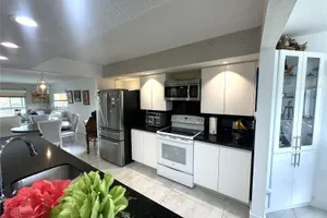Completely remodeled 2/2 Open concept 1,533 square foot Corner condo boasts lake views from the back and side of the unit. Located in a guard-gated golf community. Upgrades include a Washer and Dryer in the unit, kitchen, both bathrooms, 32"x32" tile throughout, Impact Windows on all windows and the balcony,high efficiency tankless water heater, and custom Closets in all the closets, a Walkable attic with an attached ladder, and more to see. This desirable 55+ community provides transportation to shopping and medical facilities. Amenities include a world-class Clubhouse, a movie Theater, a grand ballroom, indoor and outdoor heated pools, as well as a variety of meeting rooms, billiards and card rooms, bingo, arts & crafts, music, ceramics, computer classes, and A par-71 golf course.