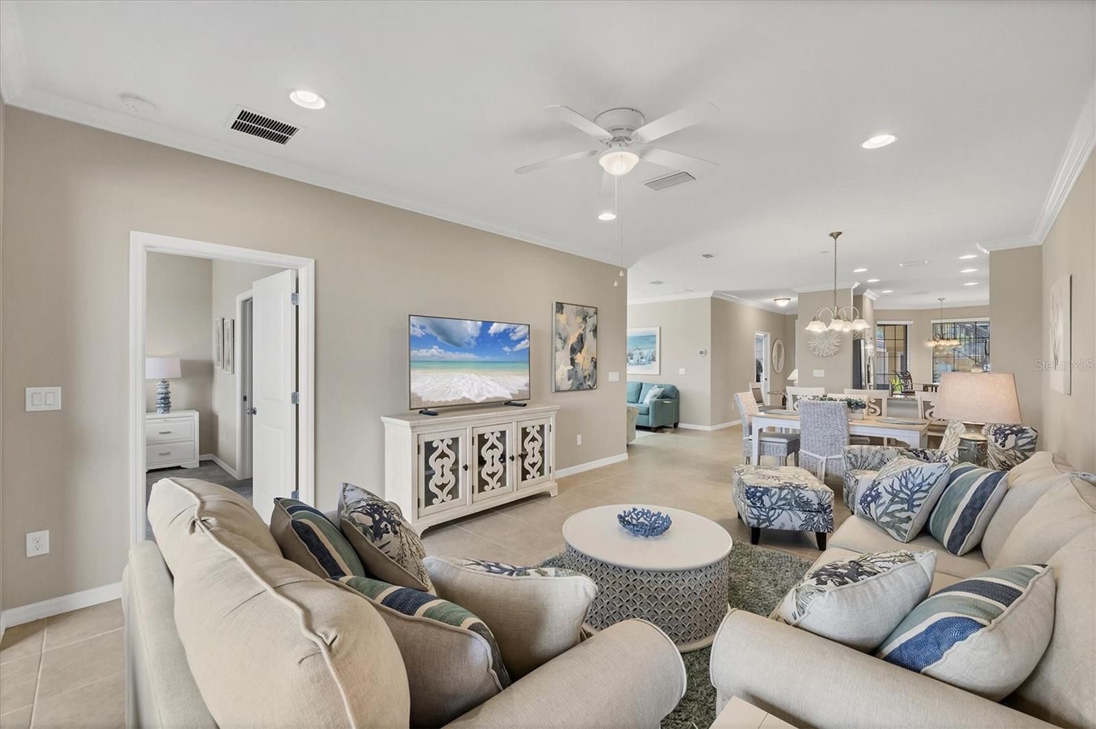 - Ceiling Fan(s), Crown Molding, Split Bedrooms, Stone Counters, Walk-In Closet(s), Window Treatments