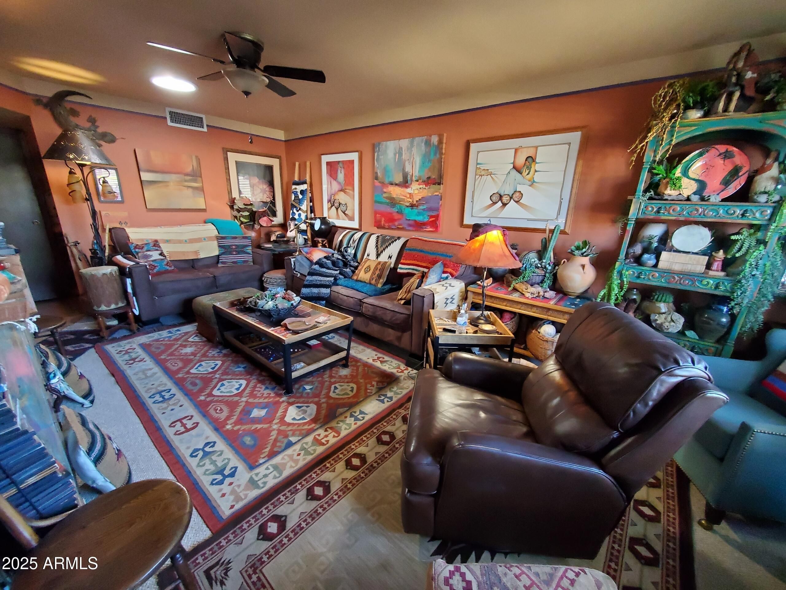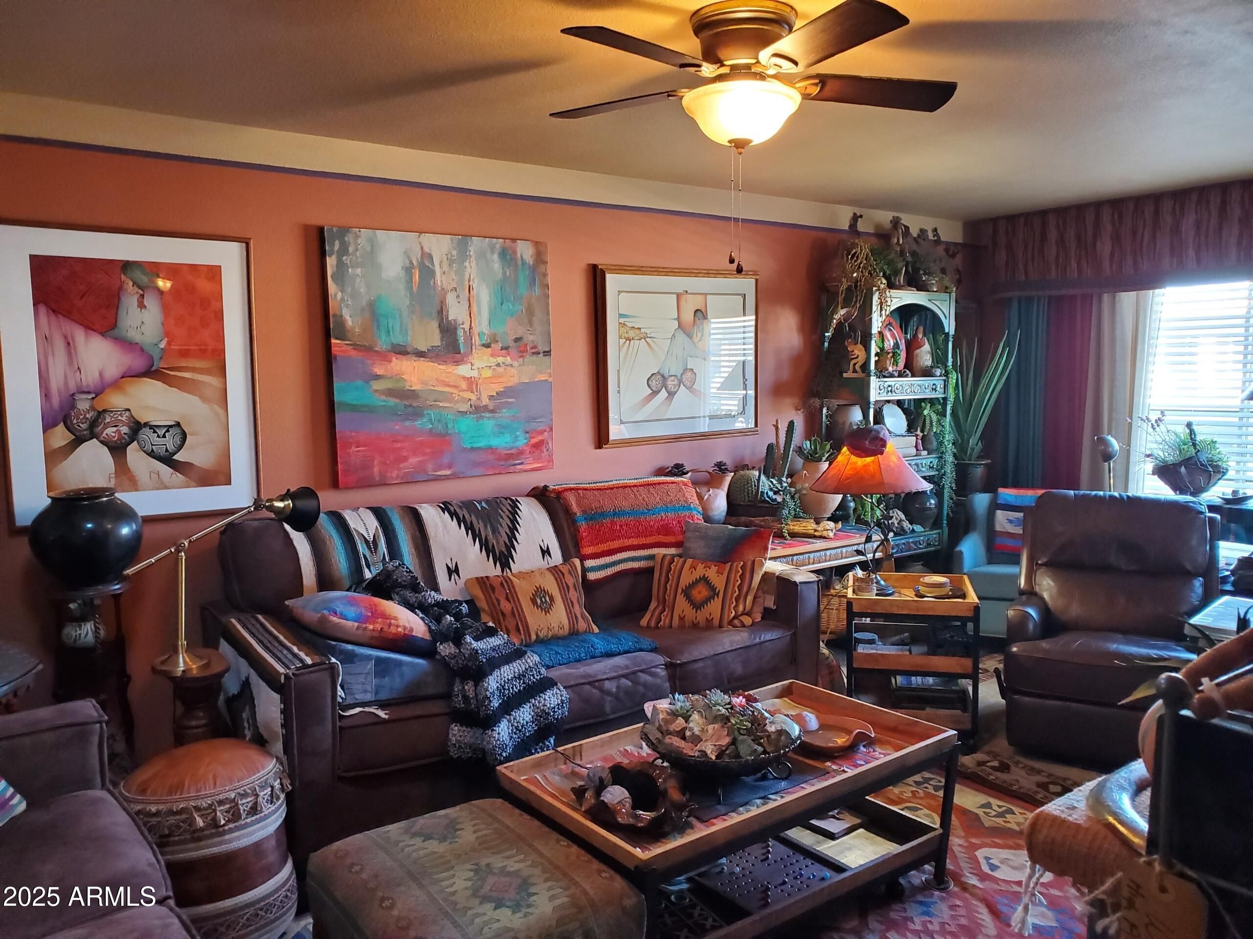This fully furnished Southwestern Style condo has everything you need to make this your home with $32,000 worth of contents and upgrades,. You won't need a thing except your toothbrush. Over 800 DVDs for movie lovers. The main bedroom has a queen bed and a comfortable sofa with chase, custom wall built-ins and a walk-in closet. The front bedroom has 2 queen beds, a built-in desk, a sitting area and walk-in closet with built-in storage. This condo also comes with 2 bikes and helmets that are in the storage room near the laundry. Brand new hot water heater was just installed December 2025. You won't find any popcorn ceilings in this home. Utilities and taxes are low. If you like southwest style you are going to love this home. Tons of one-of-a-kind items to enjoy everywhere you look.