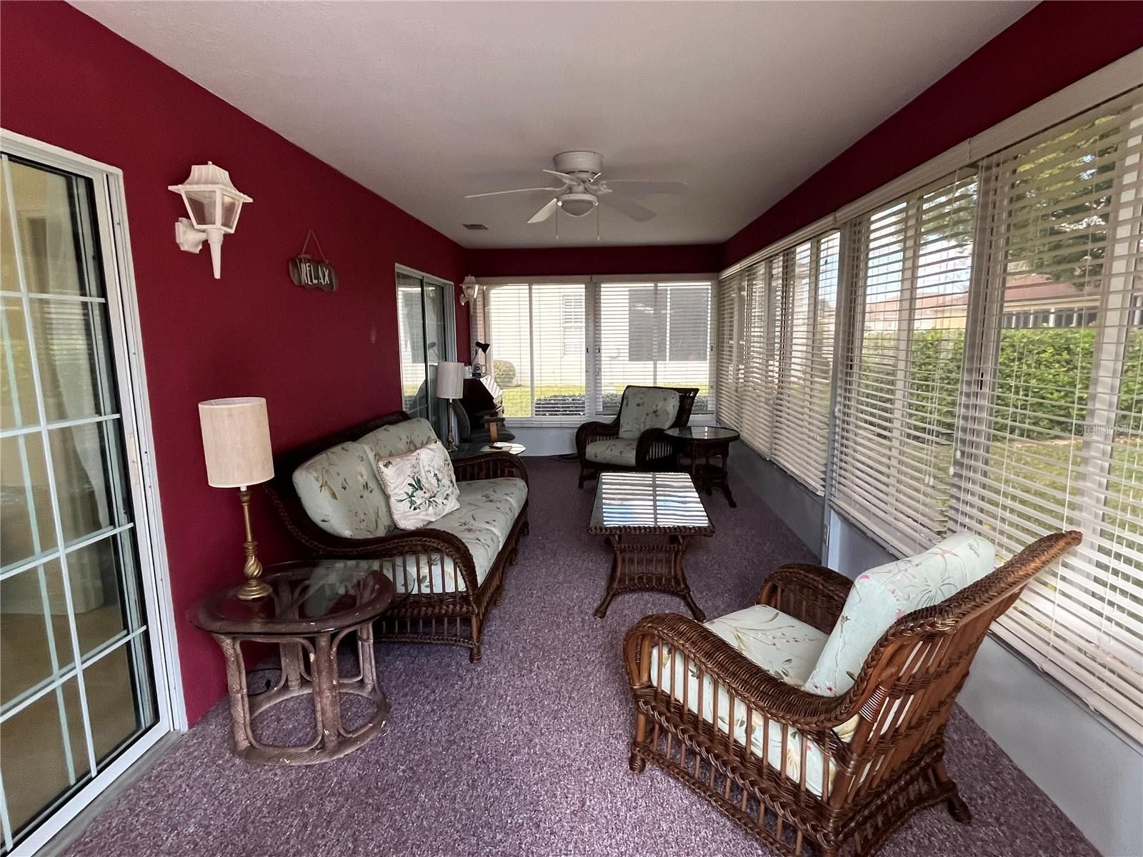 Move-in ready Florida living at its best! This beautifully updated, TURN-KEY 2-bedroom, 2-bath home is located in the highly sought-after Del Webb Spruce Creek Golf & Country Club. Roof 2019, A/C 2020 and Brand new Hot Water Heater. Inside, you’ll find diagonal ceramic tile throughout the main living areas, a bright kitchen with granite countertops and a cozy sitting area, and a glass-enclosed 24’ x 10’ lanai that adds flexible space for relaxing or entertaining. The living room is designed for ultimate comfort and style, featuring a brand-new leather sofa and matching love seat, each equipped with dual recliners offering heat, massage, and zero-gravity positioning. The space is completed with a new area rug and matching end tables and coffee table, creating a warm and inviting atmosphere. Step outside to your private oasis with a brand-new 20’ x 40’ brick-paver patio, perfect for outdoor gatherings or quiet evenings. A 2025 six-person Catalina Spa with LED lighting, Bluetooth audio, and a soothing water feature is available for purchase separately. The home’s exterior has been refreshed with all-new landscaping, including lush sod, decorative rock, and refinished surfaces—delivering excellent curb appeal. Ideally located near the Front Gate and just minutes from the Horizon Center Clubhouse, restaurant, main pool and hot tub, driving range, and pro shop. Del Webb Spruce Creek is a 24-hour gated, 55+ golf-cart-friendly community offering 36 holes of championship golf, a fitness center, softball, pickleball, tennis, three pools (including one indoor), three hot tubs, scenic walking trails, and nearly 100 clubs and social activities. Simply move in, relax, and enjoy the lifestyle you’ve been waiting for.