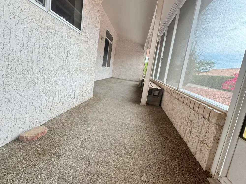 Welcome to your new sanctuary in the serene community of Sun City West! This 2-bedroom 2-bath home features a well-thought-out split floor plan, offering both privacy and comfort with shutters in the bedrooms and kitchen that provide excellent light control. A versatile bonus room serves perfectly as an office or additional guest space. Experience the beauty of outdoor living in the screened-in Arizona room with automatic shades for added comfort and convenience. This property is attractively priced, allowing the new owners to update and personalize it according to their taste. The 2-car garage is loaded with cabinetry, keeping your home organized & clutter-free. Don't miss the chance to own this charming home in a peaceful neighborhood, where community & tranquility combine beautifully.