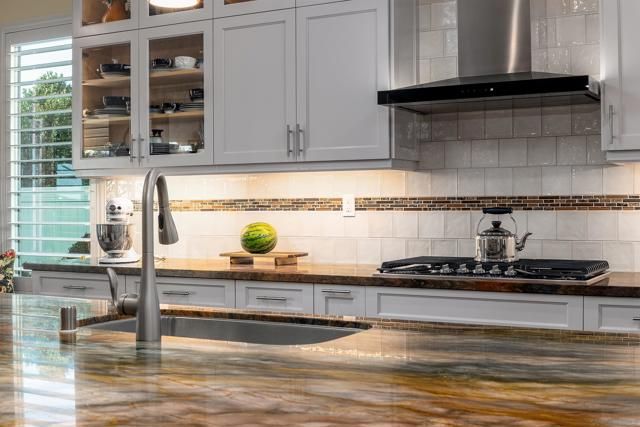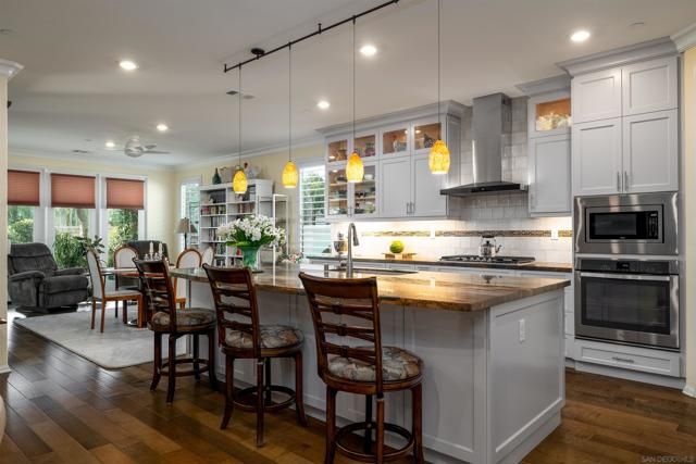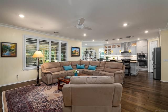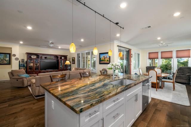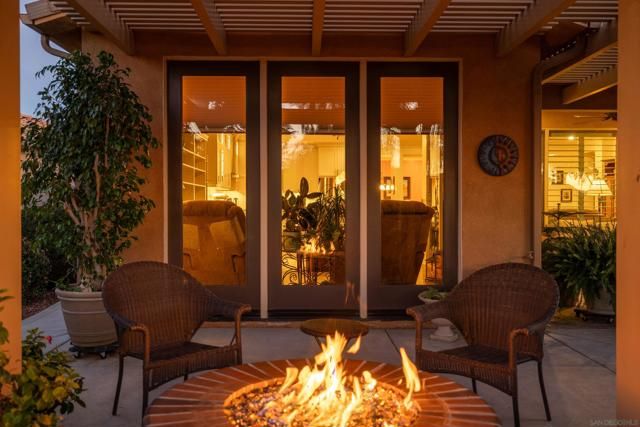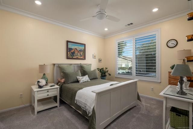 The Best of the Best! Highly sought after Gathering Model in the premier 55+ community of Solera Diamond Valley by Del Webb! Exceptionally upscale and elegant 3-bedroom, 3-bathroom, 2,457 sq ft single-story residence. This home is truly stunning! Upon entry, you're welcomed by tall 9ft ceilings, crown moldings, custom built-ins, designer doors, wood, tile and new bedroom carpet flooring. Plantation shutters throughout. The open-concept layout includes a formal dining room, secondary dining space by the kitchen, sunroom living area with built-in entertainment center and desk, and a gourmet kitchen overlooking the custom living room. The impressive kitchen boasts a oversized center island ideal for entertaining, premium stainless-steel appliances, walk-in pantry, full backsplash, beautiful slab granite quartzite counters, and abundant gorgeous cabinetry with LED lighting. The primary suite offers abundant natural light, crown molding, a luxurious bath with crown detailing, tub, walk-in shower, vanity area, and expansive walk-in closet. The generous guest bedroom functions as its own suite, complete with walk-in closet and private bath featuring a step-in shower. A spacious two-car garage includes quality cabinetry and durable quality epoxy flooring. Tranquil backyard and lovely patio including a natural gas, glass stone filled fire ring are perfectly designed for effortless outdoor enjoyment. Front and rear drought-tolerant landscaping has been expertly installed. Prime location with easy access to a nearby walkable paseo and close to Lodge. A real Country Club community. LIKE NEW - BUILT IN 2015! The kitchen dimension is a part of the great room dimensions is 17.5X18.1, Outdoor covered side patio is 6.9X12.1 sought after Gathering Model in the premier 55+ community of Solera Diamond Valley by Del Webb! Exceptionally upscale and elegant 3-bedroom, 3-bathroom, 2,447 sq ft single-story residence. Large walk in Primary Closet. This home is truly stunning! Upon entry, you're welcomed by tall 9ft ceilings, crown moldings, custom built-ins, designer doors, wood, tile and new bedroom carpet flooring. Custom White Plantation shutters throughout. The open-concept layout includes a formal dining room, secondary dining space by the kitchen, sunroom living area with built-in entertainment center and desk, and a gourmet kitchen overlooking the custom living room. The impressive kitchen boasts a oversized center island ideal for entertaining, premium stainless-steel appliances, walk-in pantry, full backsplash, beautiful slab granite quartzite counters, and abundant gorgeous cabinetry with LED lighting. The primary suite offers abundant natural light, crown molding, a luxurious bath with crown detailing, tub, walk-in shower, vanity area, and expansive walk-in closet. The generous guest bedroom functions as its own suite, complete with walk-in closet and private bath featuring a step-in shower. The home is protected by a drop down fire suppression sprinkler system. A spacious two-car garage includes quality cabinetry and durable quality epoxy flooring. Large private & tranquil backyard and lovely patio including a natural gas, glass stone filled fire ring are perfectly designed for effortless outdoor enjoyment. Front and rear drought-tolerant landscaping has been expertly installed. Prime location with easy access to a nearby walkable paseo and close to Lodge. A real Country Club community with three indoor & outdoor swimming pools. Loma Linda Hospital located in Murrieta, CA & Kaiser Hospital in Murrieta, CA and Temecula Valley Hospital with famous medical support close by. Several Costco's & shopping only about 20 to 30 minutes away. Dinning & entertainment shared by Hemet, Murrieta, Temecula. Small surrounding airports in French Valley & Hemet with restaurants to serve the public. Temecula Wine Country with restaurants close by. This country surrounding atmosphere is truly enjoyable and a great place to live! Full of sunshine and frien...