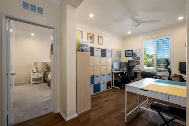 - Crown Molding, Built-in Features, Ceiling Fan(s), Walk-In Closet(s), Laundry Facility, Home Office, Kitchen, Living Room, Retreat Room, Den, Primary Bathroom