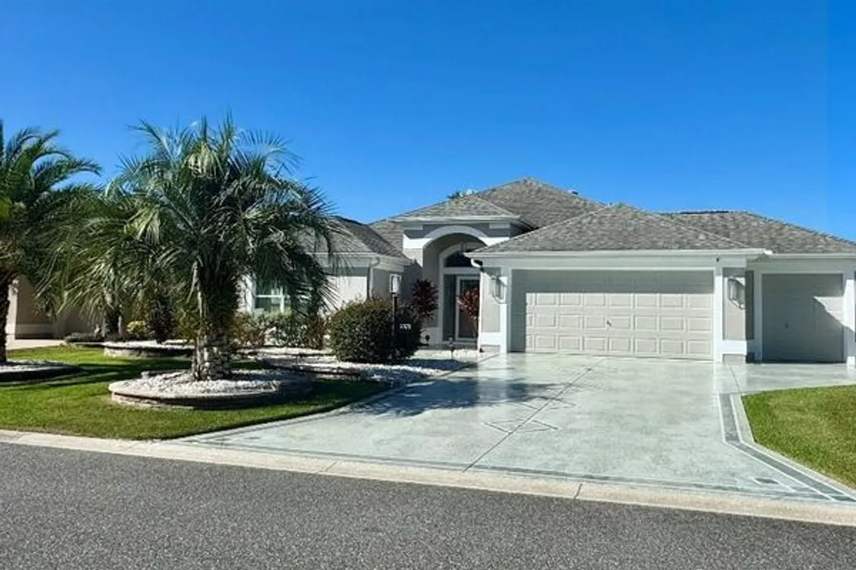 No Bond! Spectacular home with all the extras you are looking for in a forever home. 3 bedrooms, with 3 bathrooms create two private suites, fantastic for a mother in-law suite or just perfect for guests. Three large solar tubes are added light. Neutral designer tile throughout the living whole house, crown moldings on every inch of the ceiling. Blackout electronic blinds and a split air conditioning unit in the enclosed lanai provide that extra space to spread out and entertain. The Chef's Kitchen has a huge counter, great for serving, wood cabinetry, quartz counters, tile backsplash and Stainless appliances. The dining area has a custom beautiful wave glass window. The property has two whole house water treatment system. The owner's attention to detail is evident with all of the lighting and fan choices in the home. A large master suite with a tray ceiling and bath featuring a roman shower and a large soaking tub. Master closet has a custom build in closet system. Large 2+ golf cart garage has epoxy flooring and pulldown attic stairs. The outside space is as impressive as the inside space. Custom designed hardscaping, with a beautiful selection of trees and plants accentuated with low voltage landscape lighting. Custom designed epoxied driveway and walkways great you at the entrance. The side yard of the home is a great size and features a large patio, great for outdoor entertaining. Plus, an ADT whole house protection system with inside and out cameras, reverse osmosis water tanks underneath the kitchen sink, three large solar tubes for lighting and whole house SECO electrical surge protector at the electric box.