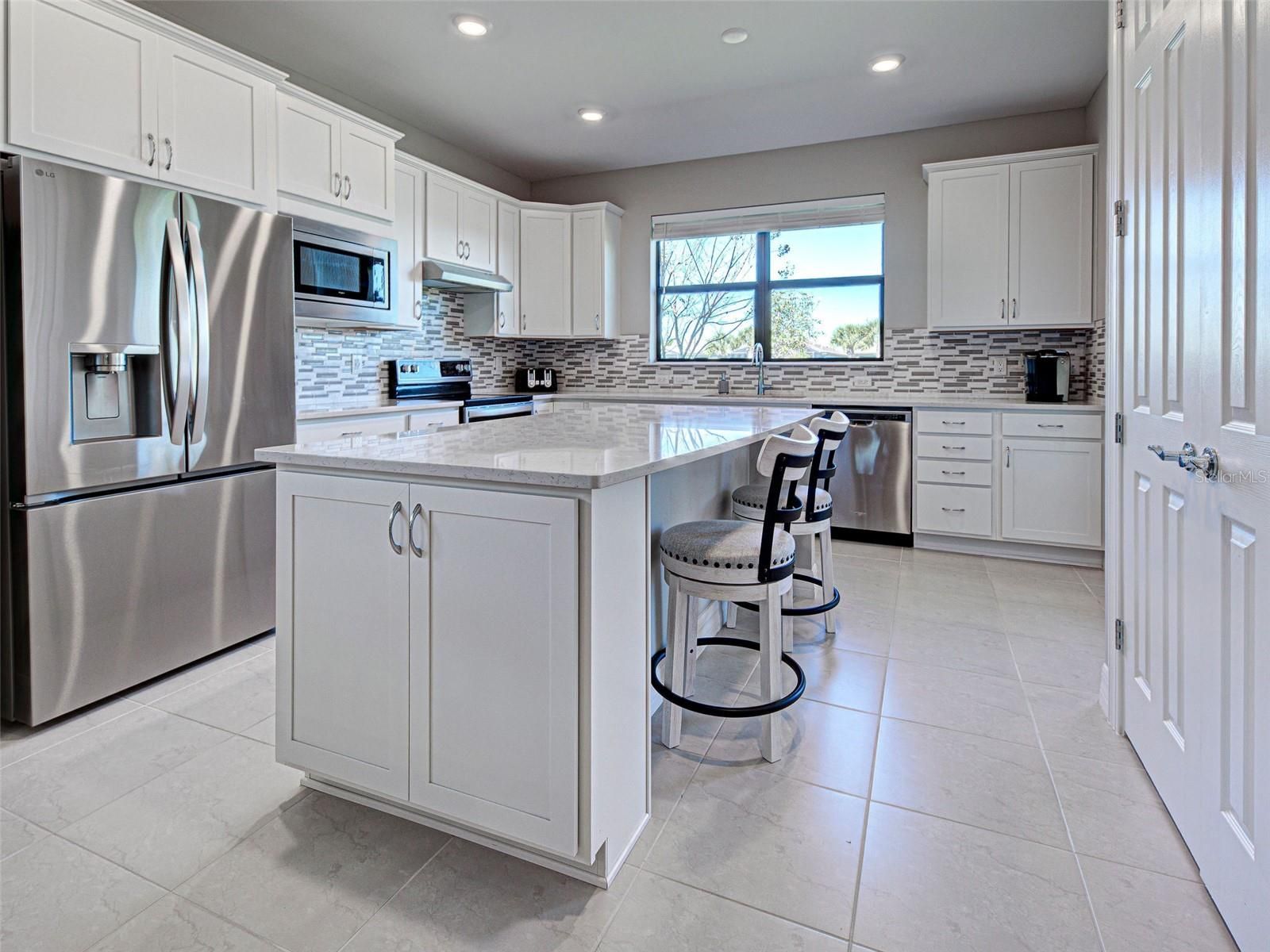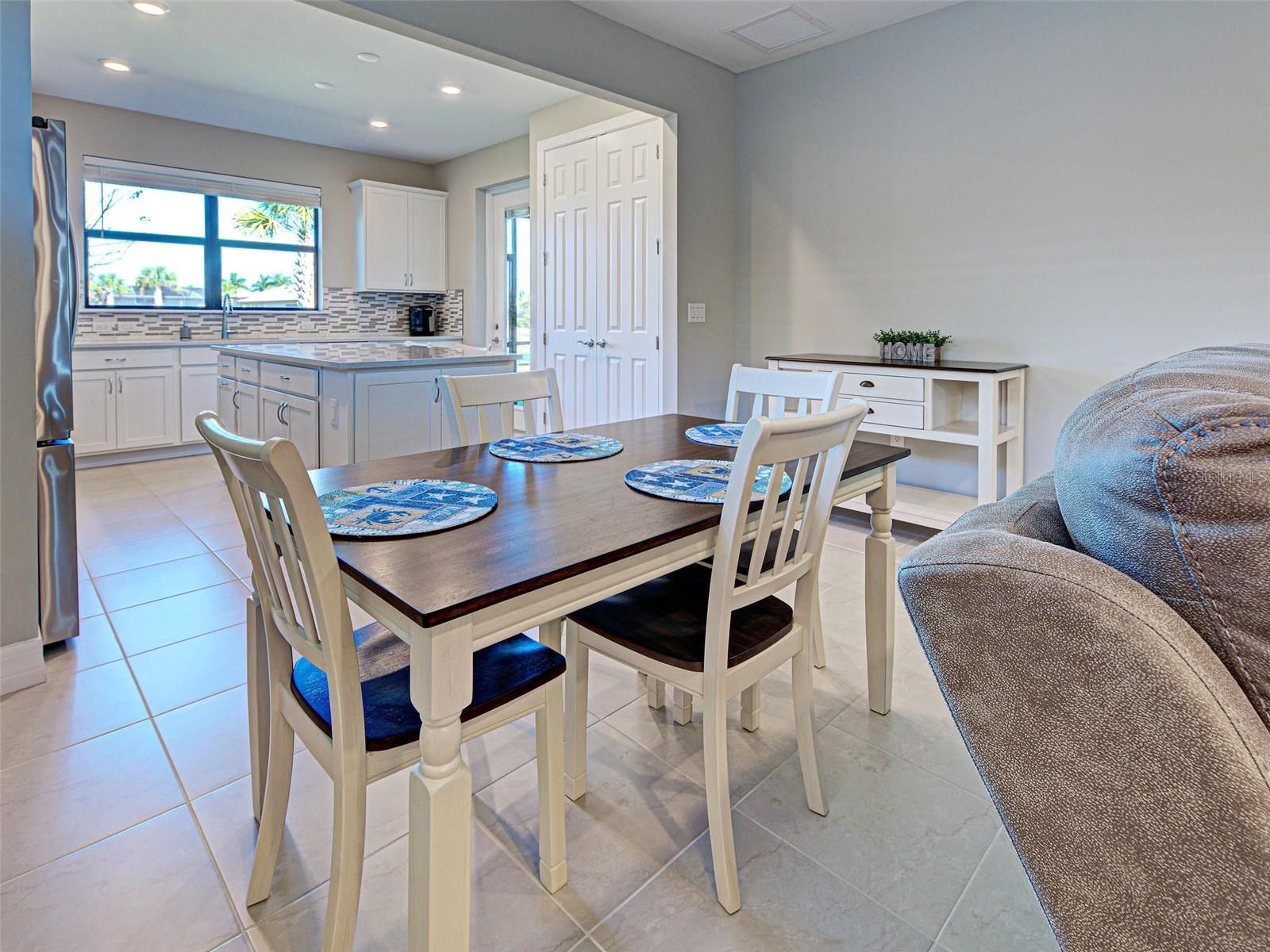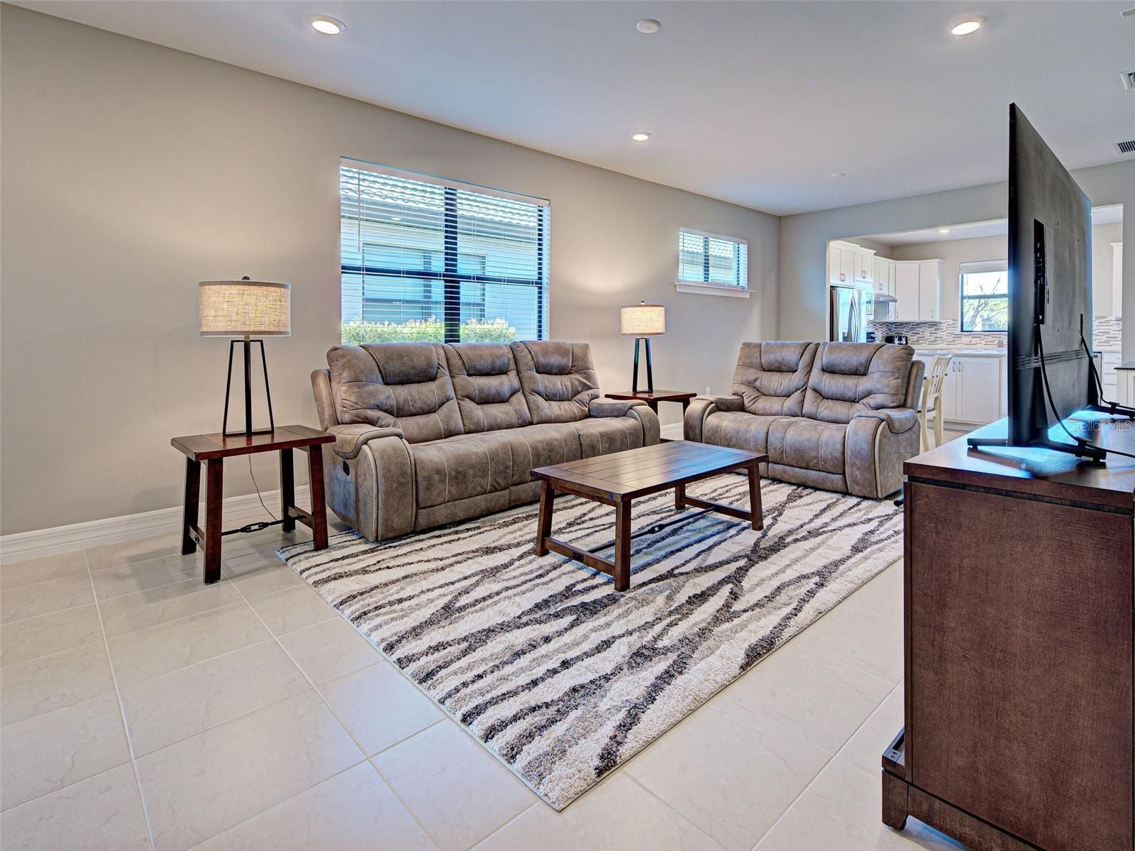 This gorgeous, like-new Taft home offers serene water views and has been visited very minimally during season. Impeccably maintained and truly move-in ready, this home features 2 bedrooms, 2 bathrooms, and a flex room that can easily be converted into a third bedroom, home office, fitness space, or hobby room. Even better, the home is being offered furnished, making your move effortless and allowing you to start enjoying the Florida lifestyle from day one. Located on quiet Vadini Street, the home sits just a few blocks from the clubhouse, providing quick access to community amenities. Step inside to find tile throughout and luxury vinyl flooring in the bedrooms- no carpet anywhere, paired with neutral tones that complement any style of decor. The open-concept Taft floor plan creates a seamless flow between the kitchen, dining area, and great room! The bright, comfortable kitchen features Whirlpool appliances, a newer LG high-quality refrigerator with a unique ice feature, perfect for cocktails, crisp white cabinetry, elegant backsplash, a large island, pantry storage, and plenty of convenient pull-out drawers. From here, you can enjoy water views and access the covered, screened lanai—perfect for indoor-outdoor living and year-round relaxation. The spacious primary bedroom includes luxury vinyl flooring, an en-suite bathroom with walk-in shower and glass doors, dual vanities, and a generous walk-in closet. It also offers lovely water views! The guest bedroom offers tile flooring and is thoughtfully positioned near the full guest bath. Additional features include a laundry room with Whirlpool washer and dryer, and a 2-car garage with clean epoxy flooring and a utility sink. With modern finishes, low-maintenance living, beautiful water views, and the convenience of being offered furnished, this home is an exceptional opportunity for seasonal or full-time living. This active community offers geothermal pools, Har-Tru tennis courts, pickleball and bocce ball, lap pools, spas, playground, basketball court, dog park, two state-of-the-art fitness centers, staffed 24-hour front gate, on-site HOA staff seven days a week, outdoor pavilions with BBQ grills, a library, and much more to keep you and your guests engaged. Golf carts are permitted throughout the community and can even be taken outside if registered. Residents also enjoy exclusive access through a resident-only back gate to Downtown Wellen Park, featuring a Marketplace anchored by Publix, the Atlanta Braves ballpark, restaurants, and entertainment. Conveniently located just 4 miles from I-75, Islandwalk offers easy access to multiple pristine Gulf beaches, airports, Historic Venice Island, and cultural events.