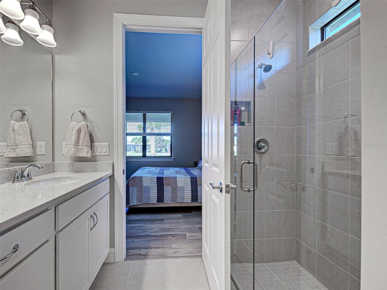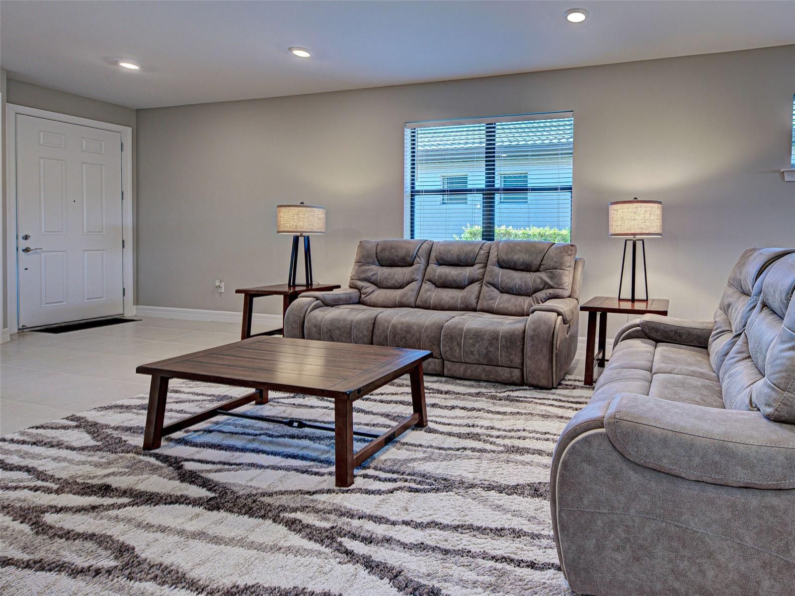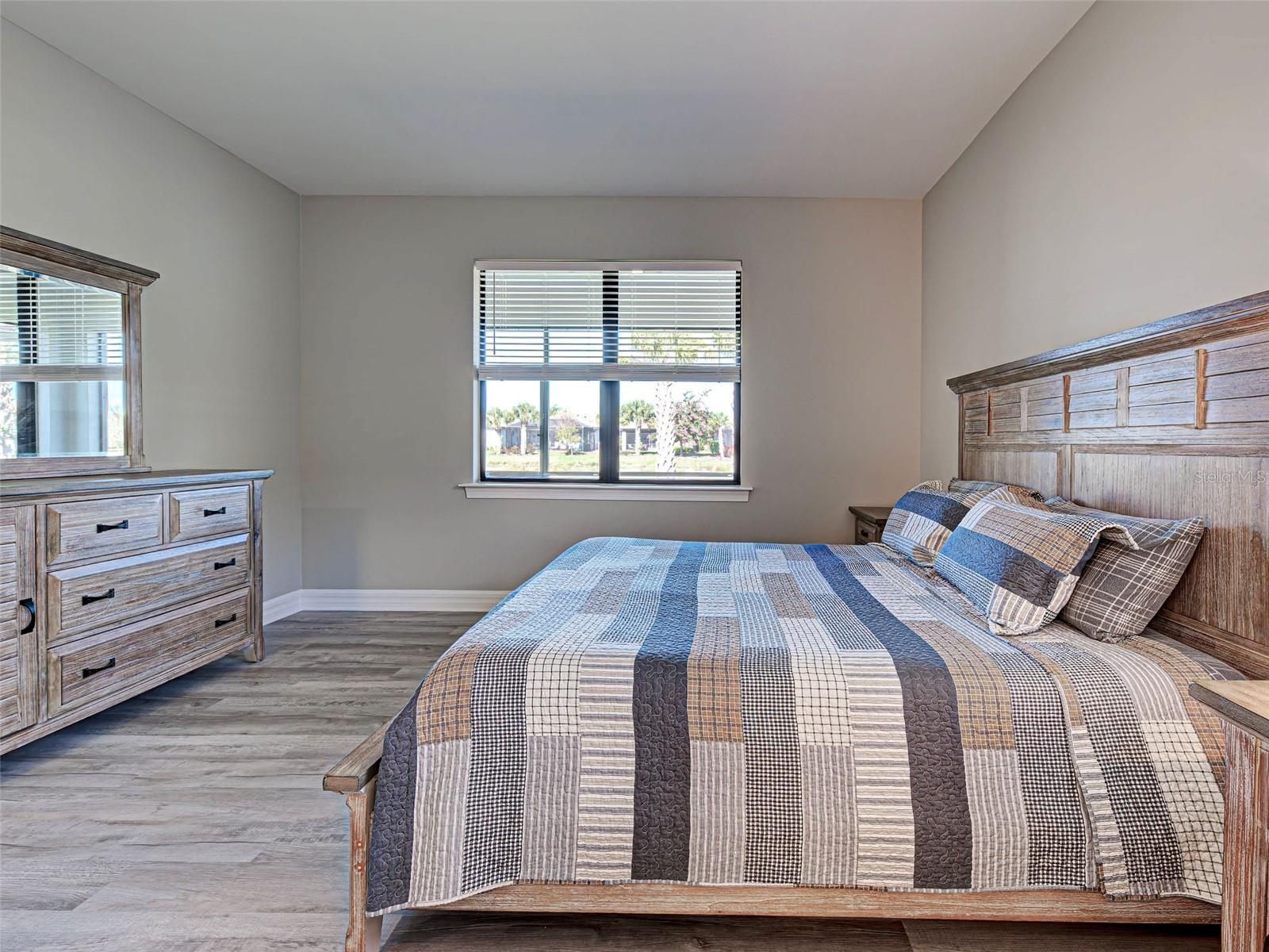 This gorgeous, like-new Taft home offers serene water views and has been visited very minimally during season. Impeccably maintained and truly move-in ready, this home features 2 bedrooms, 2 bathrooms, and a flex room that can easily be converted into a third bedroom, home office, fitness space, or hobby room. Even better, the home is being offered furnished, making your move effortless and allowing you to start enjoying the Florida lifestyle from day one. Located on quiet Vadini Street, the home sits just a few blocks from the clubhouse, providing quick access to community amenities. Step inside to find tile throughout and luxury vinyl flooring in the bedrooms- no carpet anywhere, paired with neutral tones that complement any style of decor. The open-concept Taft floor plan creates a seamless flow between the kitchen, dining area, and great room! The bright, comfortable kitchen features Whirlpool appliances, a newer LG high-quality refrigerator with a unique ice feature, perfect for cocktails, crisp white cabinetry, elegant backsplash, a large island, pantry storage, and plenty of convenient pull-out drawers. From here, you can enjoy water views and access the covered, screened lanai—perfect for indoor-outdoor living and year-round relaxation. The spacious primary bedroom includes luxury vinyl flooring, an en-suite bathroom with walk-in shower and glass doors, dual vanities, and a generous walk-in closet. It also offers lovely water views! The guest bedroom offers tile flooring and is thoughtfully positioned near the full guest bath. Additional features include a laundry room with Whirlpool washer and dryer, and a 2-car garage with clean epoxy flooring and a utility sink. With modern finishes, low-maintenance living, beautiful water views, and the convenience of being offered furnished, this home is an exceptional opportunity for seasonal or full-time living. This active community offers geothermal pools, Har-Tru tennis courts, pickleball and bocce ball, lap pools, spas, playground, basketball court, dog park, two state-of-the-art fitness centers, staffed 24-hour front gate, on-site HOA staff seven days a week, outdoor pavilions with BBQ grills, a library, and much more to keep you and your guests engaged. Golf carts are permitted throughout the community and can even be taken outside if registered. Residents also enjoy exclusive access through a resident-only back gate to Downtown Wellen Park, featuring a Marketplace anchored by Publix, the Atlanta Braves ballpark, restaurants, and entertainment. Conveniently located just 4 miles from I-75, Islandwalk offers easy access to multiple pristine Gulf beaches, airports, Historic Venice Island, and cultural events.