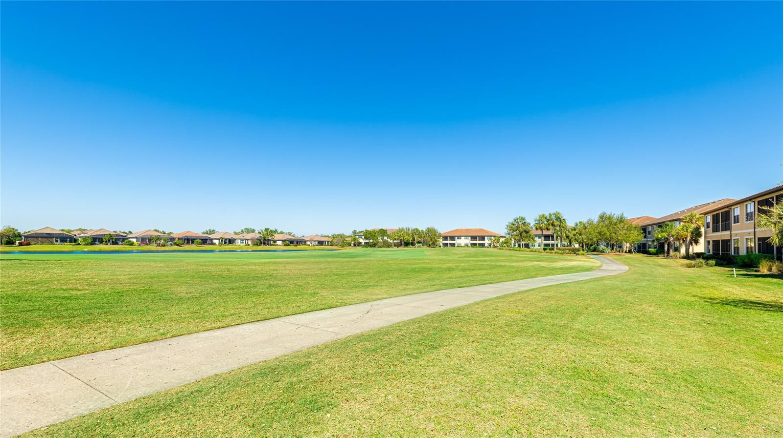 Enjoy the ultimate golf and resort lifestyle in this first-floor, end-unit condo with stunning lake and golf course views in the highly sought-after Esplanade Golf & Country Club at Lakewood Ranch. Unlike other units in the community, this condo is deeded with a FULL GOLF MEMBERSHIP—an exclusive benefit. This perk grants you unlimited access to the championship 18-hole golf course, professional instruction, and a full-service pro shop, offering an exceptional experience for golf enthusiasts. Inside, this 2-bedroom, 2-bathroom condo with a versatile flex space boasts an open-concept layout, high ceilings, crown molding, and an abundance of natural light, creating a bright and airy ambiance. The kitchen showcases 42-inch cabinetry, gleaming granite countertops, a pantry, and premium GE stainless steel appliances. The open concept floor plan flows seamlessly into the living and dining areas, where expansive sliders frame golf course and lake views, setting the perfect scene for relaxation and entertaining. Step outside to your screened-in lanai and take in the serene surroundings—an ideal spot to start your morning with coffee or unwind in the evening while enjoying breathtaking sunset views over the fairways. The primary suite offers two closets and an ensuite bathroom with dual sinks and a spacious walk-in shower. A one-car garage, located just steps from your front door, provides added convenience and security. Located just a stone’s throw from one of the community’s many pools, this condo provides easy access to Esplanade’s world-class amenities. Residents enjoy two grand clubhouses serving as the heart of social and leisure activities, as well as resort-style pools, a luxurious spa, and casual dining at the Tiki Bar. Stay active with tennis, bocce ball, a resistance pool, and a full fitness center, or explore the outdoors with the canoe and kayak launch, adventure playground, and barbecue areas. For dining and entertainment, Esplanade offers on-site options including the Barrel House Bistro, Bahama Bar, and Pizza Café. Beyond the gates, you are just minutes from Lakewood Ranch Main Street, Waterside Place, and the UTC area, where you’ll find upscale shopping, dining, and entertainment. **THIS PROPERTY QUALIFIES FOR A 1% LENDER INCENTIVE IF USING PREFERRED LENDER. INQUIRE FOR MORE DETAILS.**