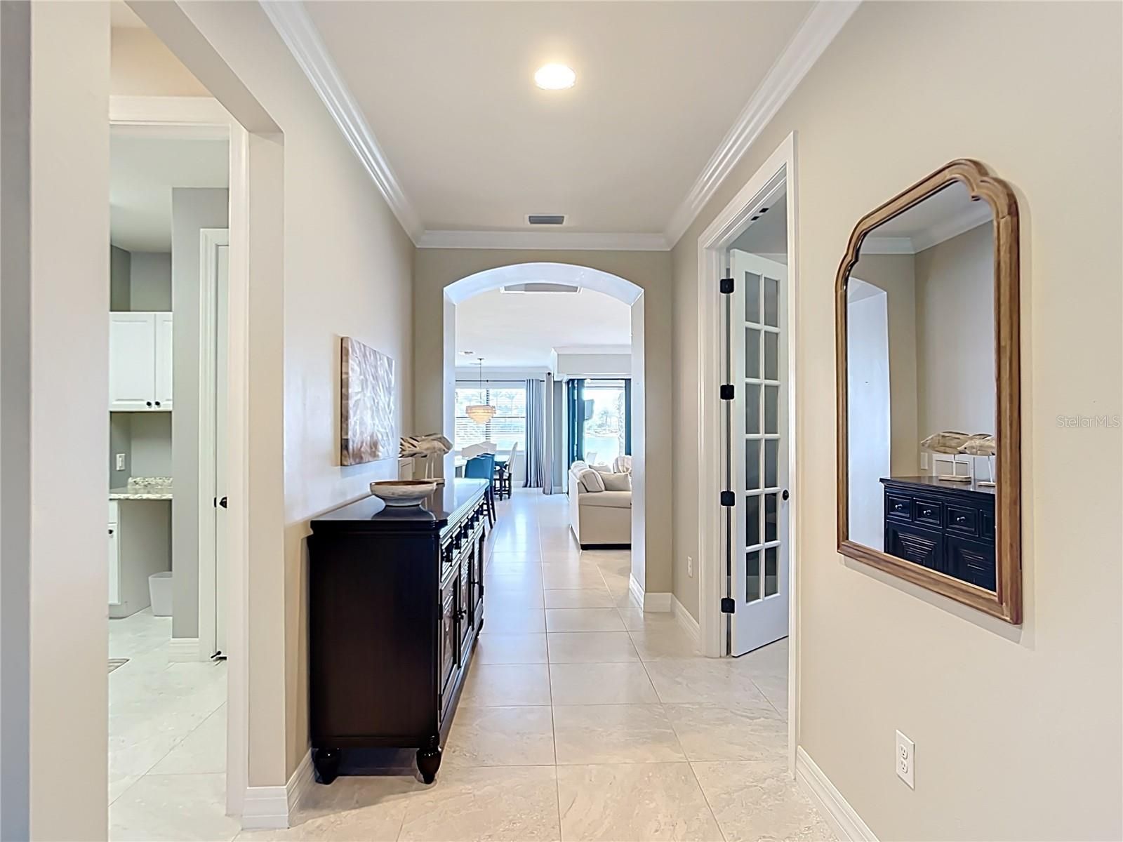 TURN-KEY FURNISHED and one of the most DESIRABLE lots and rarely available in IslandWalk. (JUST FOUR PROPERTIES HIT THE MARKET IN 7+ YEARS ON THE BIG LAKE AND THIS IS ONE OF THEM!) This stunning, upgraded sought after Summerwood Model offers sophisticated and upgraded craftsmanship, NO CARPET, modern elegance, and effortless living. DESIGNER PAINT SCHEME AND WALLPAPER! Move-in ready, this 3-bedroom + den/office, 2-bath executive home spans over 2,000 sq. ft. and is designed for both grand entertaining and private relaxation. From the moment you arrive, exceptional with curb appeal welcomes you—featuring fresh landscaping, fresh exterior paint, extended pavers, custom glass front door, and an upgraded screened entry. Step inside and be captivated by the EXPANSIVE 10’ ceilings, upgraded 8’ decorative doors, and wide moldings. The spacious great room seamlessly connects to the kitchen which is a gourmet chef's dream and an entertainment centerpiece with REMODELED cabinetry, UPGRADED appliances! The separate dining room glows under a newer chandelier, while modern bar pendant lighting adds ambiance! Open the ZERO-CORNER sliding doors with custom vertical blinds to extend your living space onto the oversized & EXTENDED lanai—featuring PICTURE SCREENS, AUTOMATED HURRICANE SHADES, ambient lighting, and breathtaking lake views. Retreat to the finished master suite, a true sanctuary boasting a tray ceiling, large California walk-in closet, and spa-like ensuite. The extended step-in shower features frameless glass, built-in bench seating, and designer finishes. ALL BEDROOMS offer tiled floors and CUSTOM CALIFORNIA CLOSETS for ultimate organization. Additional highlights include - Epoxy-finished garage floor with an insulated door and attic screen vent, CUSTOM LAUNDRY ROOM CABINETRY & solid wood shelving, CROWN MOLDING THROUGHOUT, water softener & custom window treatments plus multiple ceiling fans throughout the home! NEW HOT WATER HEATER & DISPOSAL 2024! This community is an unparalleled Resort-Style Living! Enjoy TWO clubhouses, TWO resort pools, a lap pool, 12 pickleball courts, 8 tennis courts, a dog park, full time activity director, a community garden, a playground, basketball courts, and endless social activities! Located near Wellen Park Town Center, fine dining, minutes to the Atlanta Braves Stadium, downtown Venice, and world-class Gulf Coast beaches.