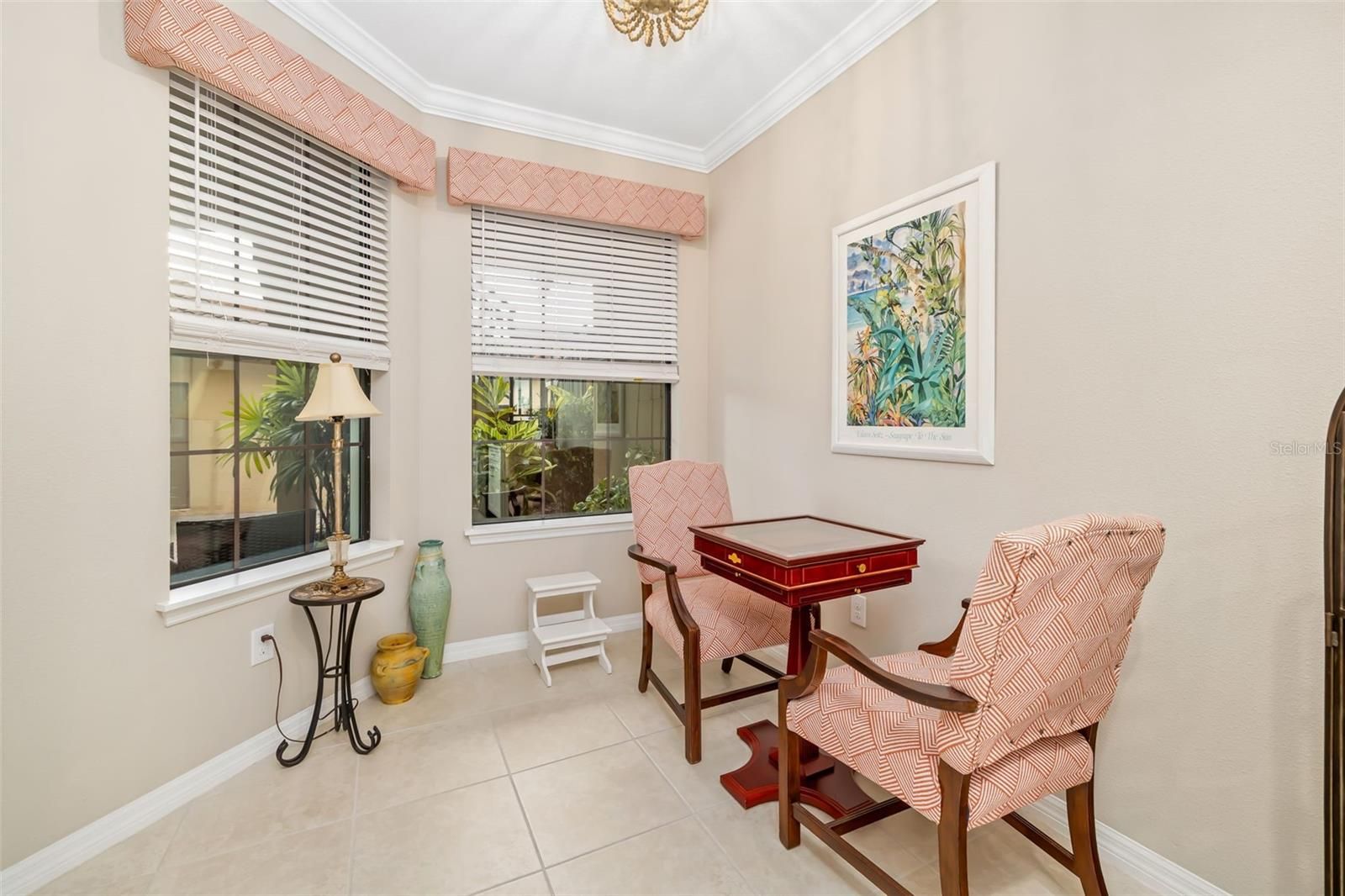 Welcome to a first-floor residence that includes a deeded golf membership with the sale, offering immediate access to championship golf and a true resort-style lifestyle at the highly sought-after Esplanade Golf & Country Club at Lakewood Ranch. With no stairs to navigate and furnishings already in place, this home allows you to move in and begin enjoying Florida living from day one, whether as a full-time residence or a seasonal retreat. Sold Partially furnished. Inside, the home feels fresh, bright, and inviting, featuring all new tile backsplash, new quartz countertop, deep cabinet above refrigerator and select updated lighting fixtures that enhance the open and comfortable floor plan. The living and dining areas flow effortlessly into the kitchen, creating a welcoming space for everyday living or entertaining. Large windows bring in natural light and views of the golf course and the thoughtful layout offers flexibility for both relaxing and hosting guests. Step to one side and enjoy a separate den or reading room just off the main living area. The primary suite provides a peaceful retreat with ample space, generous dual walk-in closets and a private ensuite bath. A well-sized guest bedroom offers versatility for visitors or a home office. The first-floor location adds everyday convenience and places you just moments from the community’s resort-style amenities. Life at Bracciano and Esplanade is centered around an active, social, and resort-inspired lifestyle. Residents enjoy championship golf with a full pro shop, multiple dining options ranging from casual poolside fare to refined dining experiences, and a robust calendar of activities and events. The community features beautiful lagoon-style pools, tennis and pickleball courts, bocce, scenic walking paths, and a state-of-the-art fitness center and full-service spa. Located within the award-winning, master-planned community of Lakewood Ranch, Esplanade offers an ideal inland setting with convenient access to shopping, dining, and everyday necessities. World-famous beaches including Siesta Key, Lido Key, Longboat Key, and Anna Maria Island are all within easy driving distance, while UTC Mall and Downtown Sarasota provide endless options for dining, culture, and entertainment. With its furnishings, deeded golf membership included, first-floor convenience, and access to premier amenities, this home presents an outstanding opportunity to embrace the Esplanade lifestyle at its finest. Schedule your private showing today!
